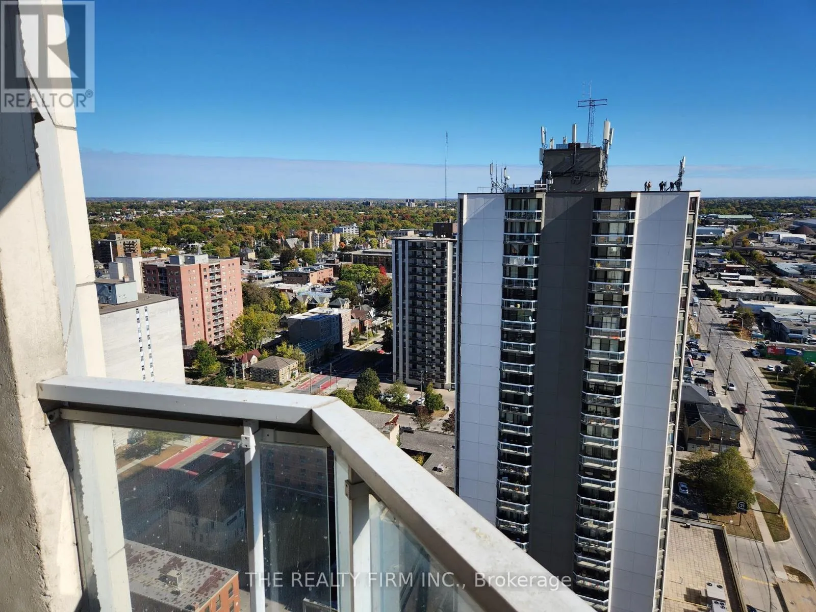 Cross Streets: Colborne and York. ** Directions: on West side of Colborne Street, just North of York Street. 1 bedroom apartment available for lease; located on the 26th floor with spectacular views from the large balcony! This condo is in great shape, and boasts many renovations, including a beautifully updated kitchen, ceiling speakers, and cabinetry added to the bonus storage room. Apartment also has in-suite laundry, walk in closet for the spacious bedroom, and 1 underground parking spot. The building offers many amenities, including an indoor pool, tennis courts, sauna, exercise room, guest suite, common BBQ area, party room, and plenty of visitor parking. All in a convenient downtown location, with public transit, Victoria Park, Canada Life Place, Grand Theatre, shopping, and Richmond Row all closeby. No smokers please. (id:27476)