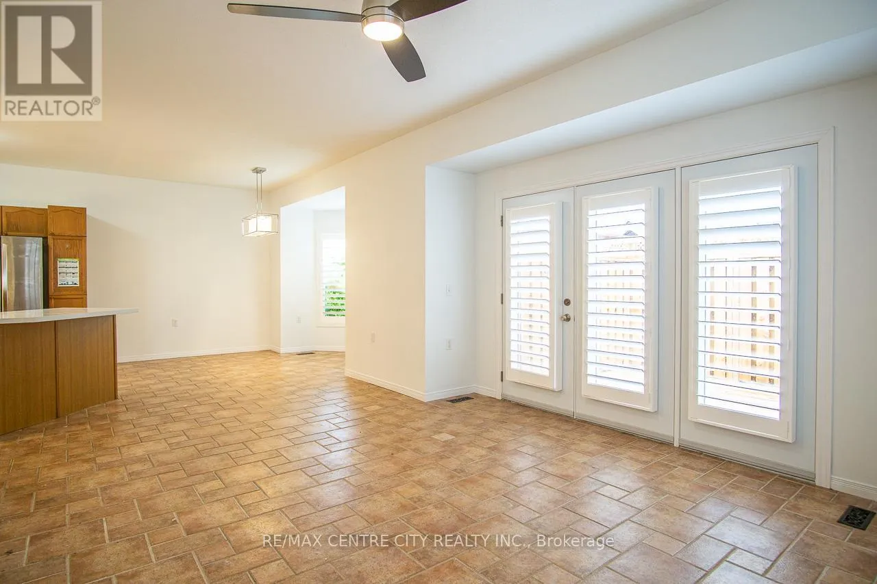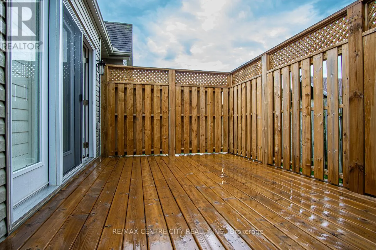 Cross Streets: Huron St & Highbury Ave. ** Directions: From Huron St to Highbury Ave N. Welcome to this unique one-floor end-unit condo in the River Valley. It features two bedrooms and two and a half bathrooms. Walk through the foyer, through the hall-way into a spacious and inviting kitchen with new countertops and A new gas stove. The open-concept traditional family room includes a single-door walk-out to the newly built private sundeck. Huge basement game room and newer 4-piece bathroom. Main floor laundry, California shutters, and freshly painted. It's move-in condition. Don't miss this rare opportunity and book a showing today. (id:27476)