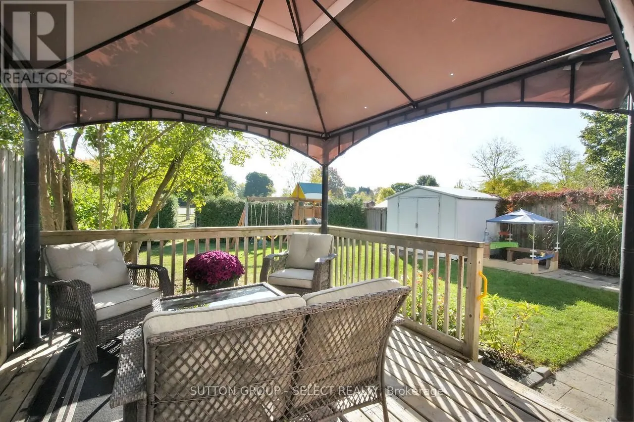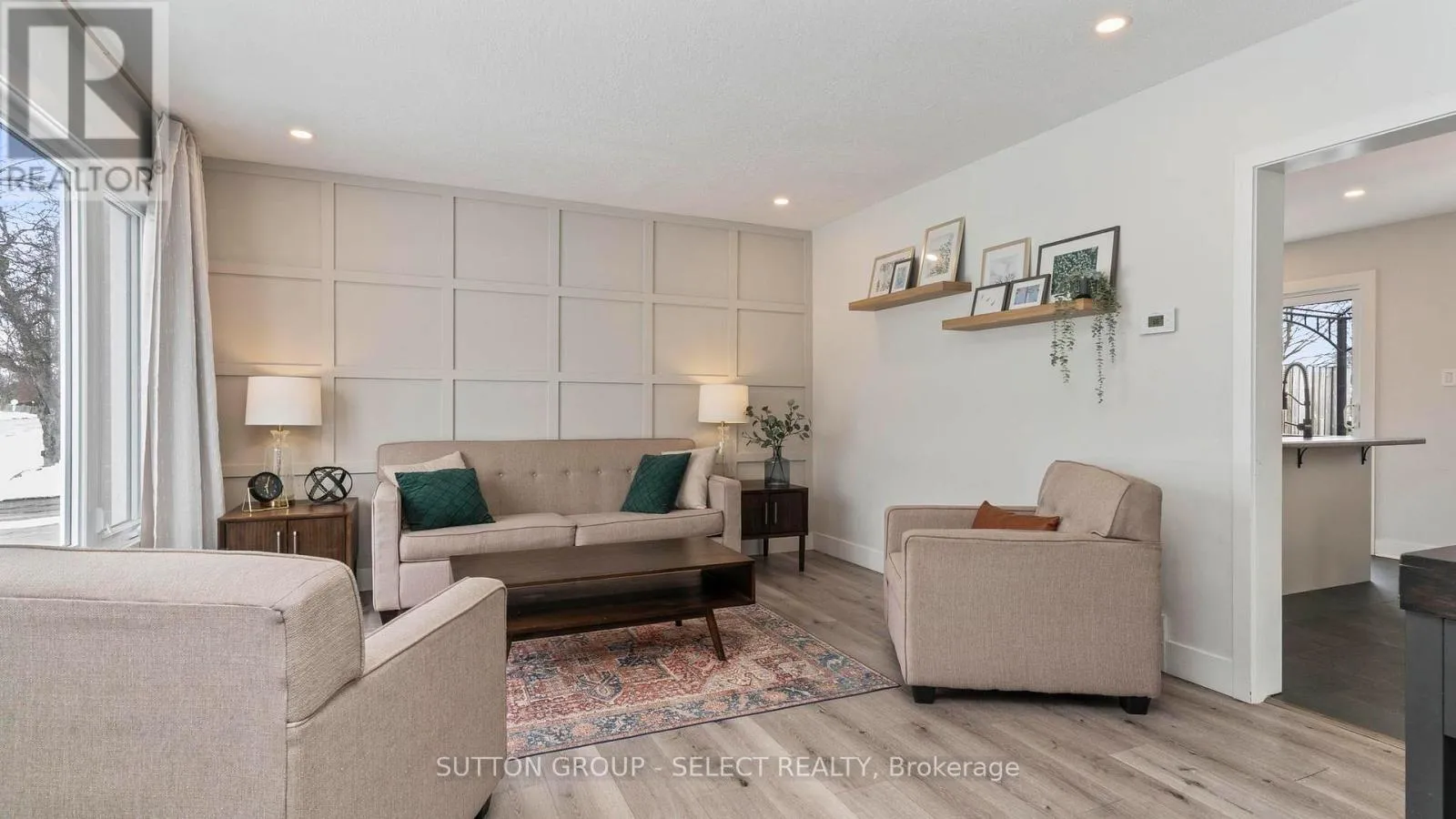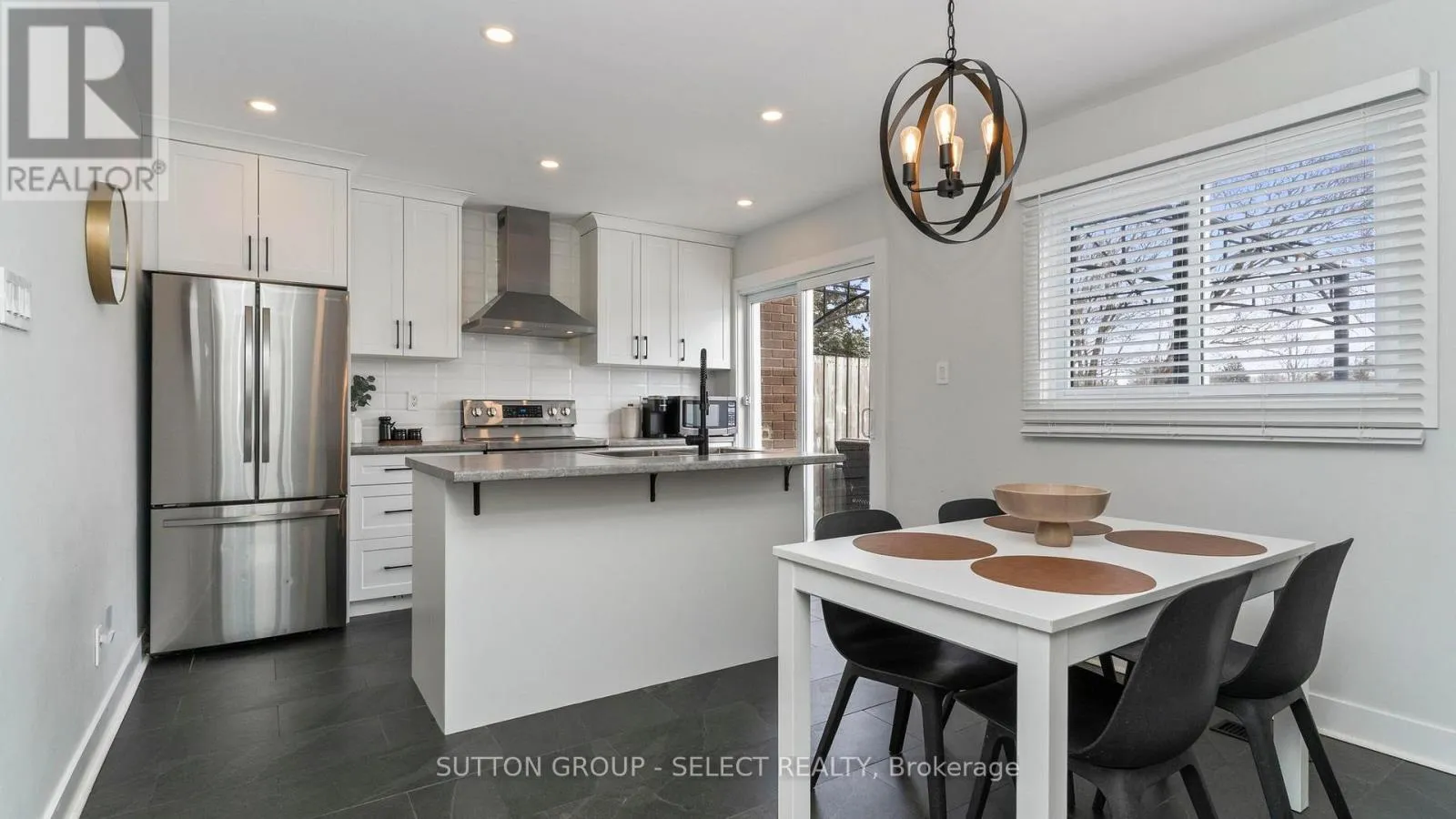 Cross Streets: Admiral/Kipling. ** Directions: North on Admiral fro Trafalgar. Tucked along the edge of Nelson Park, this recently renovated semi-detached home offers something special for those ready to take the next step into home ownership in east London. Imagine having green space in your backyard-not just something you see, but something you live beside. Morning walks, evening sunsets, and room to breathe, all just steps from your door. Inside, the main floor is thoughtfully designed for everyday living and effortless entertaining. The bright eat-in kitchen features a centre island, stainless steel appliances, and a natural gathering place for friends and family. Just beyond, step outside to your private, tree-lined backyard with ideal southern exposure-perfect for summer evenings, gardening, or simply enjoying the quiet. Upstairs, you'll find three comfortable bedrooms and a well-appointed 4-piece bath, offering flexibility for families, guests, or a dedicated home office. The lower level adds even more living space with a cozy rec-room anchored by an electric fireplace-ideal for movie nights, a play area, or a relaxing retreat. The laundry area also provides valuable storage space to keep everything organized. Whether you're buying your first home or looking for a move-in ready property in a connected, community-focused neighbourhood, this is an opportunity to put down roots beside one of east London's most loved parks. (id:27476)