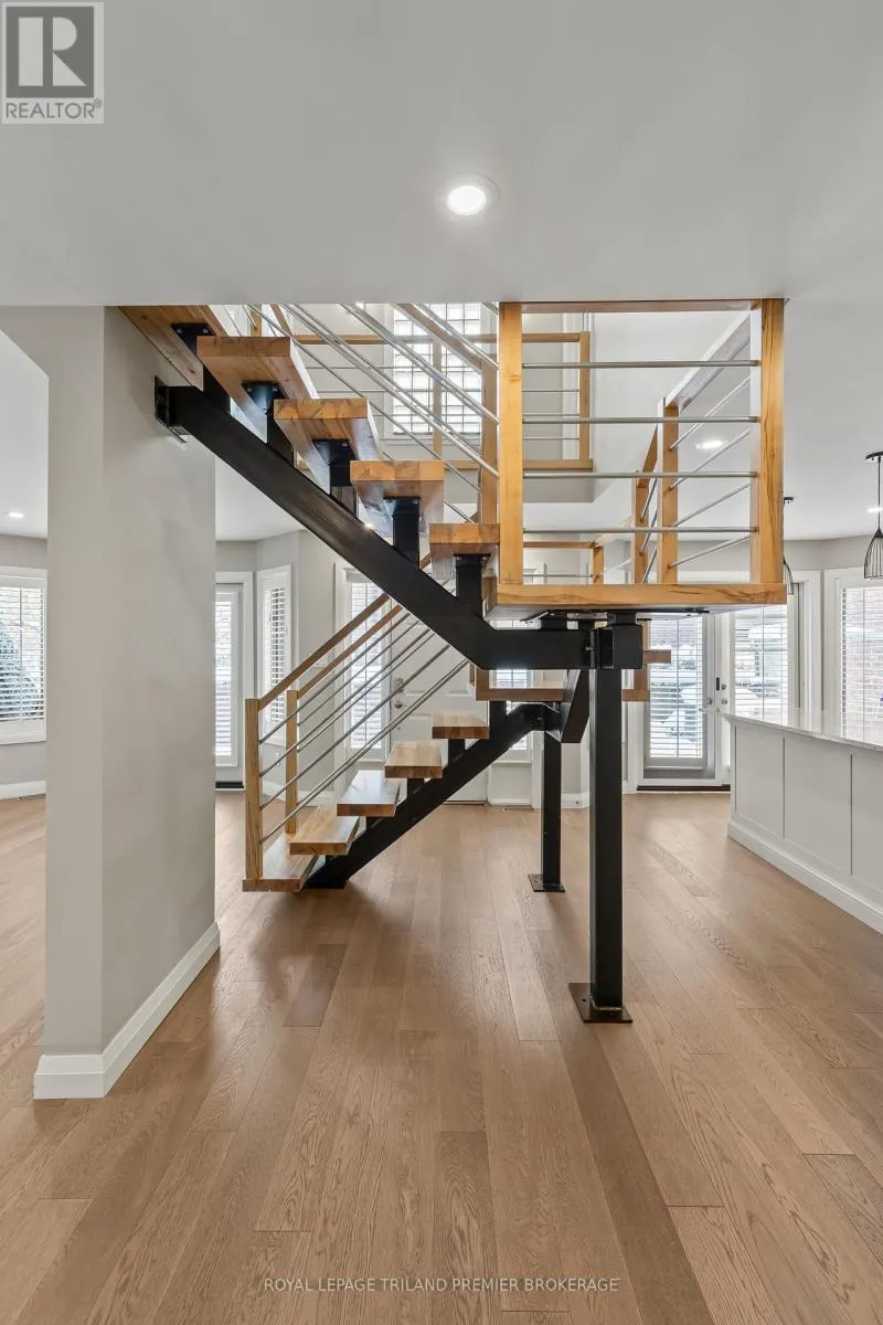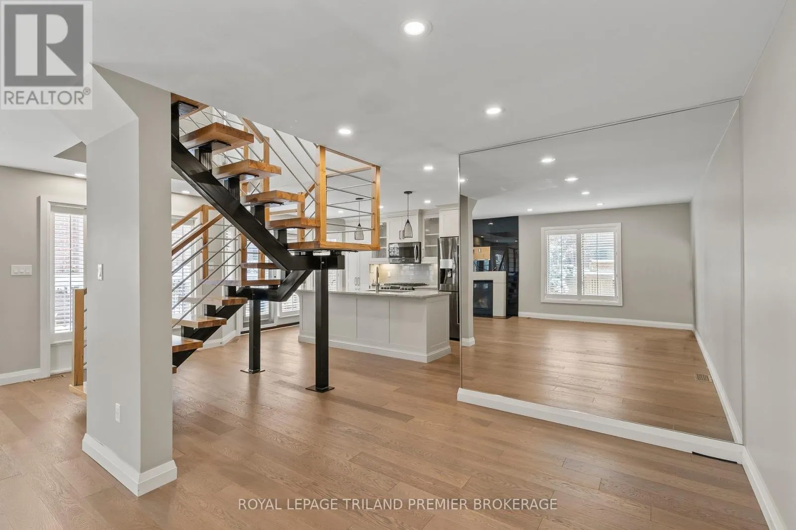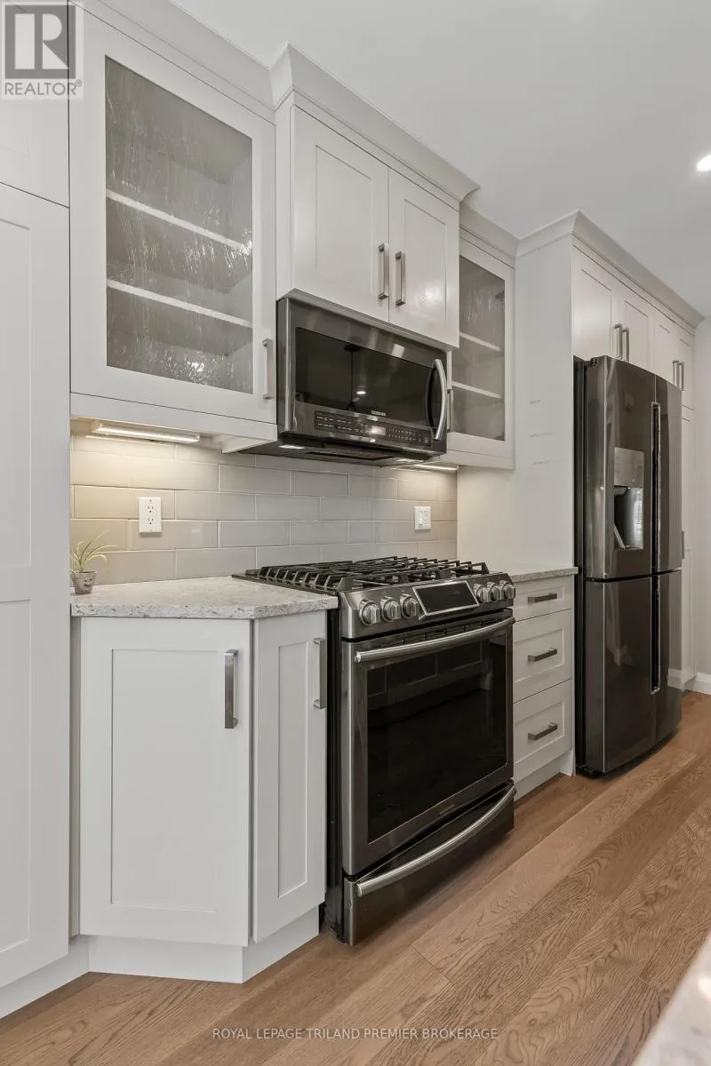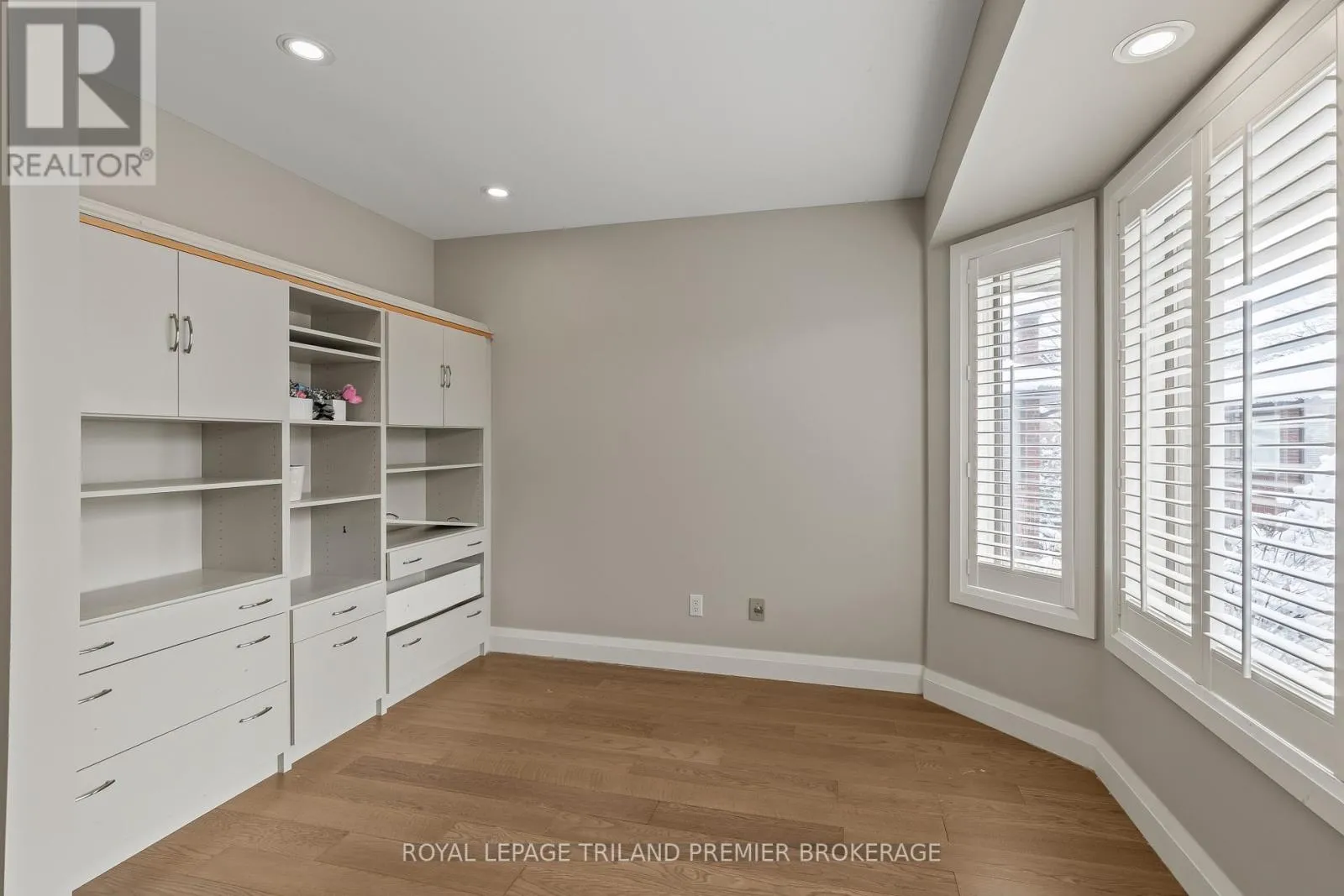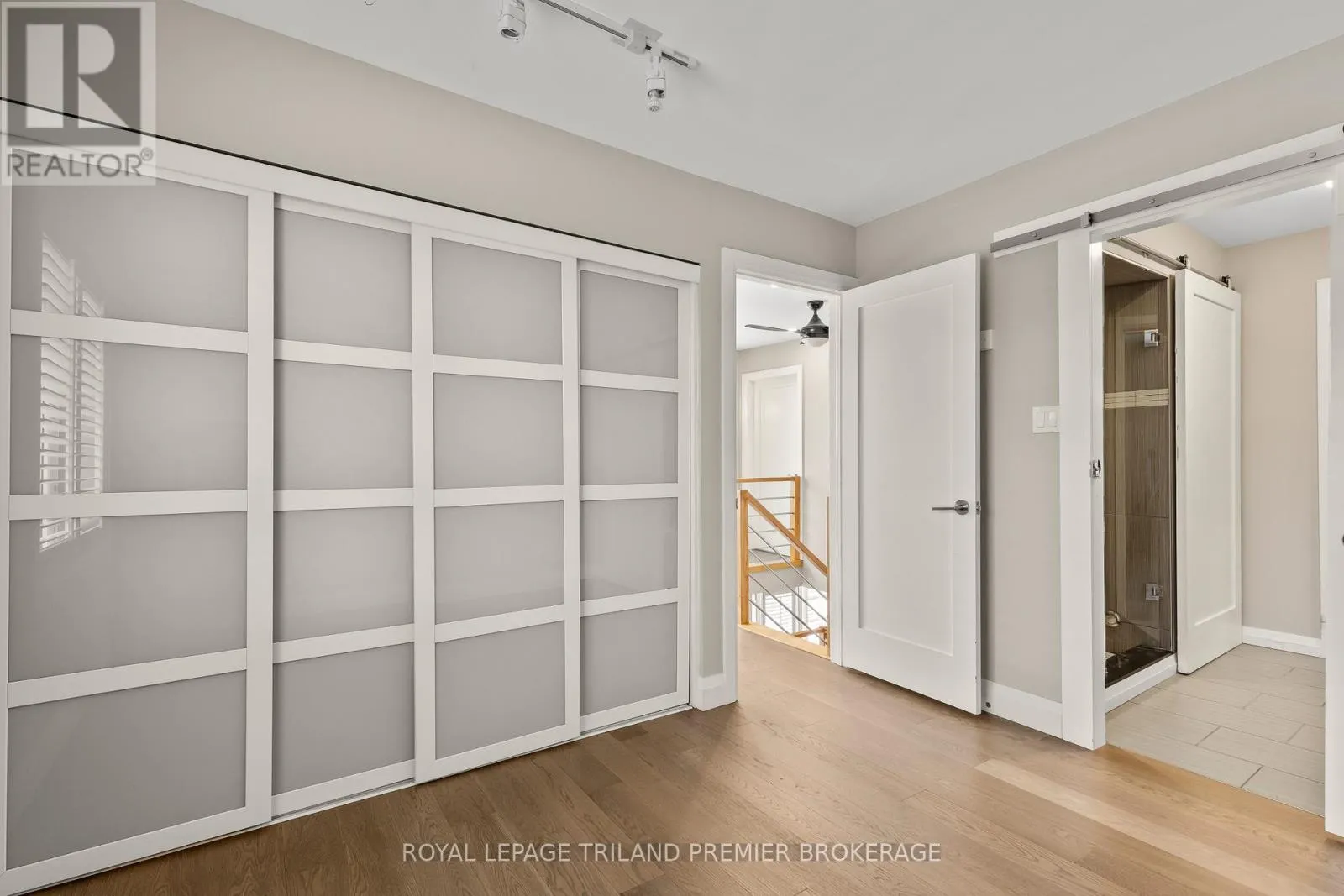 ON ALBERT BETWEEN TALBOT AND RICHMOND STREET Welcome to this exceptional and contemporary multi-level condominium, located in a private enclave just steps from Richmond Row in the heart of Downtown London. Inside, you'll find a fully updated and thoughtfully designed unit featuring an open-concept main level with a spacious kitchen complete with abundant cabinetry, granite countertops, stainless steel appliances, and a large island with breakfast bar. The main floor also includes a convenient 2-piece bathroom and an expansive great room highlighted by a gas fireplace and direct access to your private courtyard-an ideal space for relaxing or entertaining. The modern open-riser hardwood staircase leads to the upper level, which offers two generous bedrooms, each with its own updated 3-piece ensuite. A bright loft area with custom built-ins provides an excellent flex space, perfect for a home office or bright reading space. The fully finished lower level includes an additional family room with an updated 3-piece bathroom, as well as a mudroom with direct access to the underground parking garage (2 parking spaces)-an outstanding feature rarely found in condo living. Enjoy immediate access to London's finest dining, shopping, markets, theatres, arenas, parks, and all the vibrancy downtown living has to offer. This impressive home is the perfect opportunity for buyers seeking style, convenience, and an unparalleled downtown lifestyle. (id:27476)