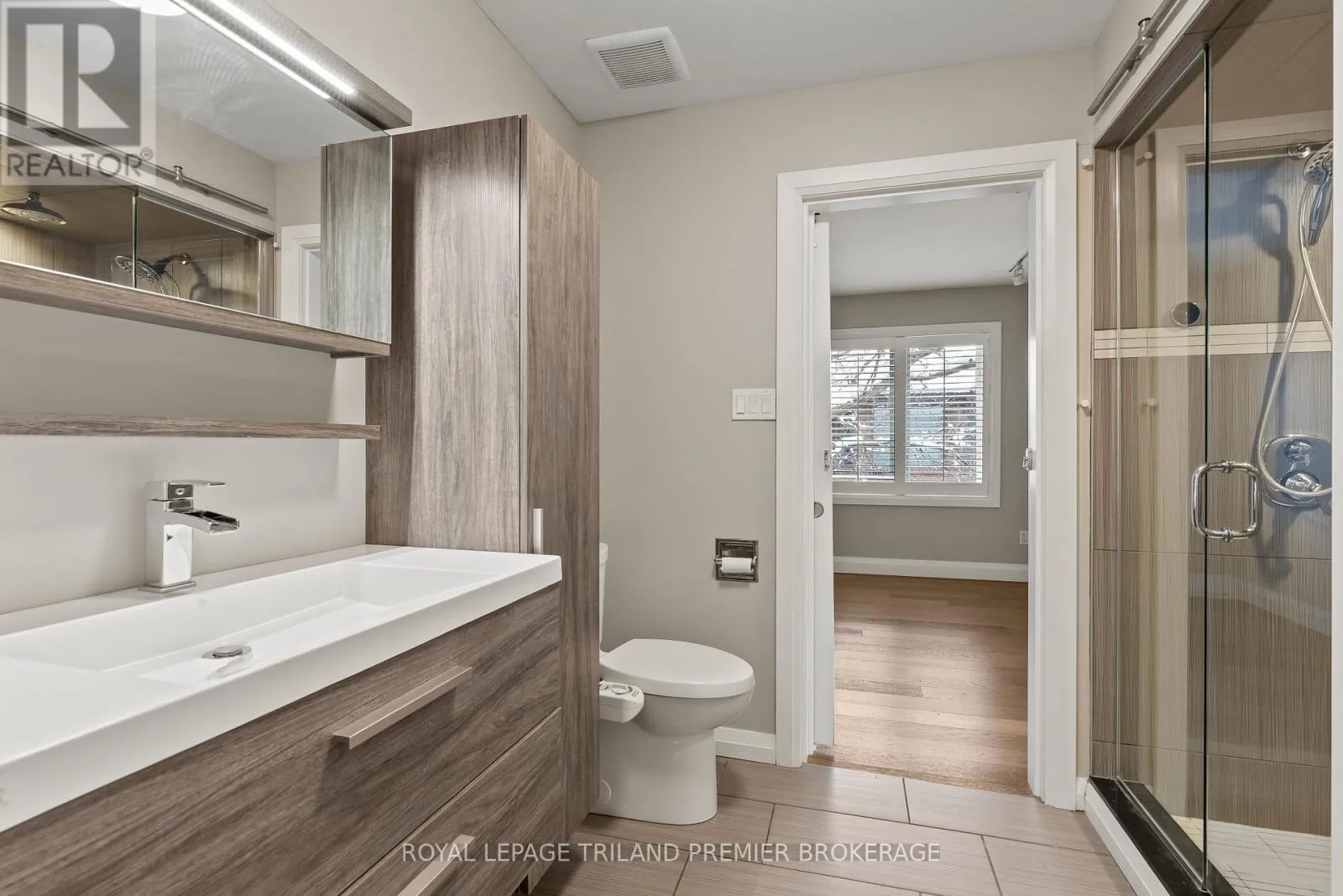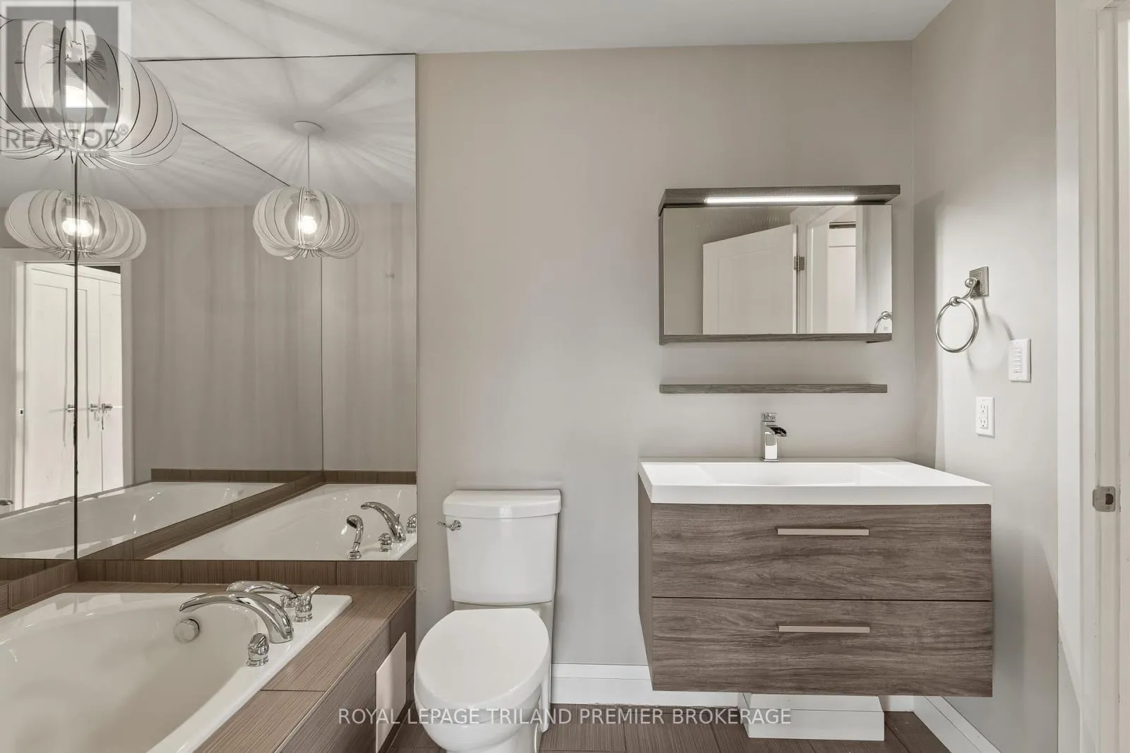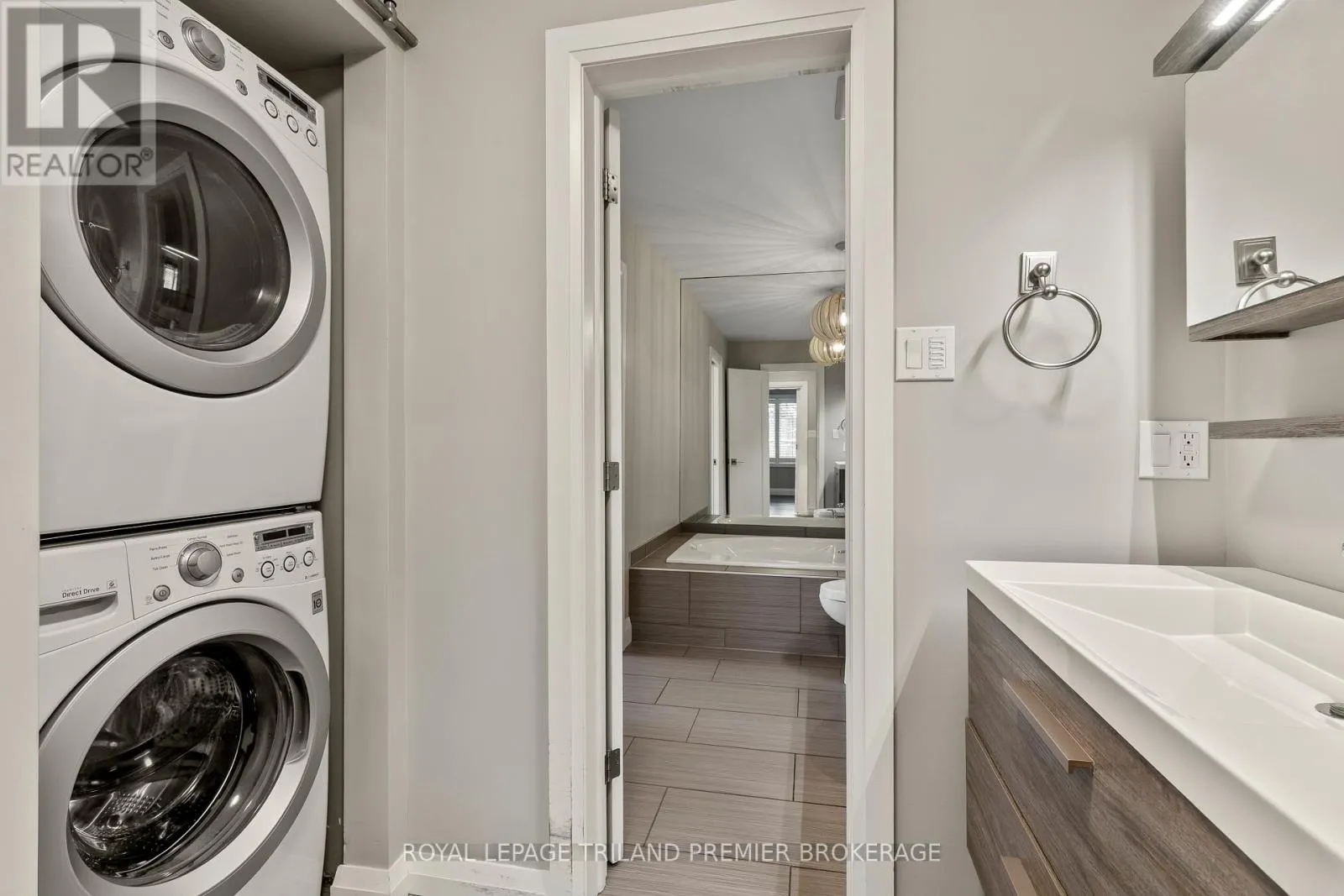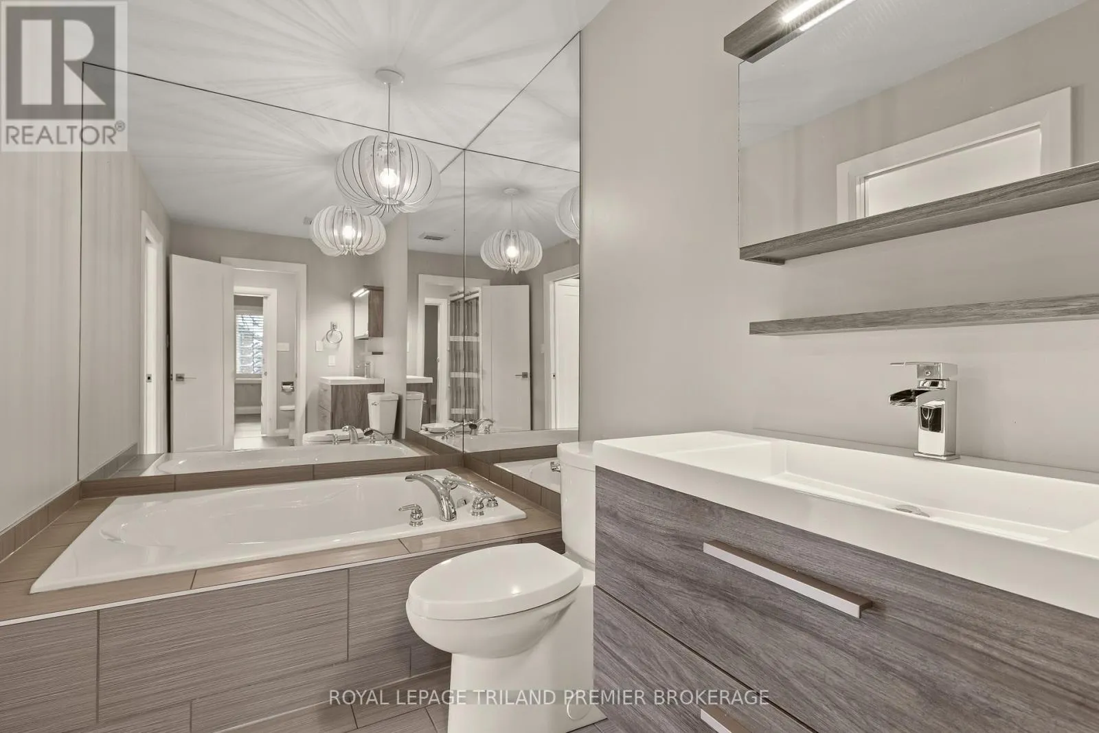 ON ALBERT BETWEEN TALBOT AND RICHMOND STREET Welcome to this exceptional and contemporary multi-level condominium, located in a private enclave just steps from Richmond Row in the heart of Downtown London. Inside, you'll find a fully updated and thoughtfully designed unit featuring an open-concept main level with a spacious kitchen complete with abundant cabinetry, granite countertops, stainless steel appliances, and a large island with breakfast bar. The main floor also includes a convenient 2-piece bathroom and an expansive great room highlighted by a gas fireplace and direct access to your private courtyard-an ideal space for relaxing or entertaining. The modern open-riser hardwood staircase leads to the upper level, which offers two generous bedrooms, each with its own updated 3-piece ensuite. A bright loft area with custom built-ins provides an excellent flex space, perfect for a home office or bright reading space. The fully finished lower level includes an additional family room with an updated 3-piece bathroom, as well as a mudroom with direct access to the underground parking garage (2 parking spaces)-an outstanding feature rarely found in condo living. Enjoy immediate access to London's finest dining, shopping, markets, theatres, arenas, parks, and all the vibrancy downtown living has to offer. This impressive home is the perfect opportunity for buyers seeking style, convenience, and an unparalleled downtown lifestyle. (id:27476)