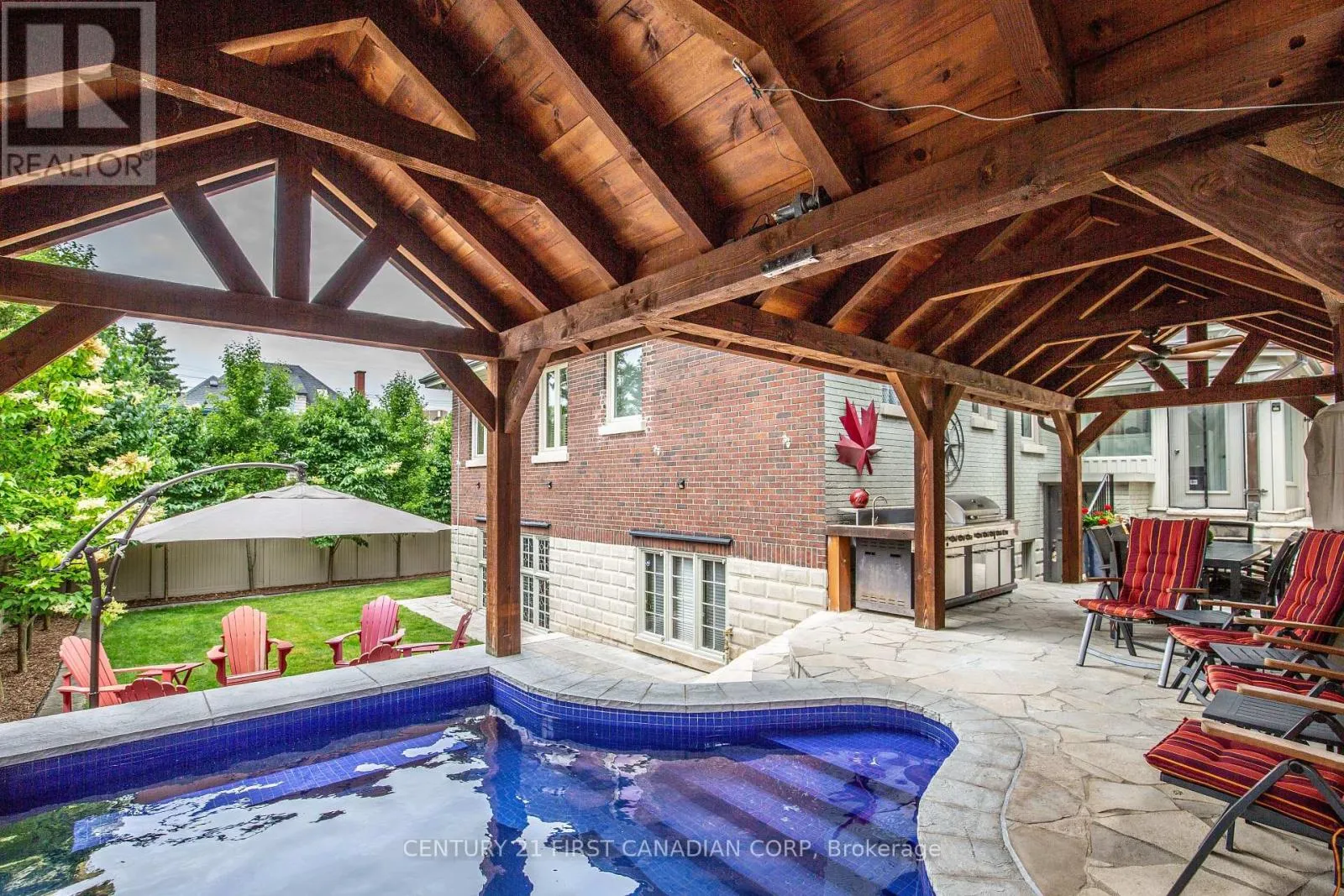 Cross Streets: St George St. ** Directions: North on Richmond 3 blocks from Oxford, left on CollegeAve. Welcome to a rare offering in the heart of the city. If you're seeking a residence that masterfully blends space, sophistication, and urban luxury, look no further than this exceptional urban mansion. Tucked away in one of the city's most desirable neighbourhoods, this grand family home offers 7+1 bedrooms, 3 full bathrooms, and 2 stylish two-piece powder rooms, making it a standout property for both comfort and entertaining. From the moment you arrive, this home impresses with its three-car garage equipped with 2 EV chargers, private fenced yard, and thoughtful layout. Inside, the open-concept kitchen and living room create the ideal hub for everyday life and special occasions alike, flowing seamlessly for conversation, laughter, and connection. On cooler evenings, unwind by the charming stone fireplace in the grand family room with terrazzo, marble and magnificent stain glass windows, or in warmer months, step outside to your personal backyard retreat featuring a year-round heated pool under a post and beam pavilion, perfect for summer gatherings or serene solo swims. Designed with privacy in mind and finished with an eye for quality, this home invites you to live expansively. Whether you're entertaining guests, growing a family, or seeking a luxurious lifestyle with room to breathe, this rare gem delivers. A spacious sanctuary. A lifestyle statement. This is more than a home, it's a legacy waiting to be passed on. (id:27476)