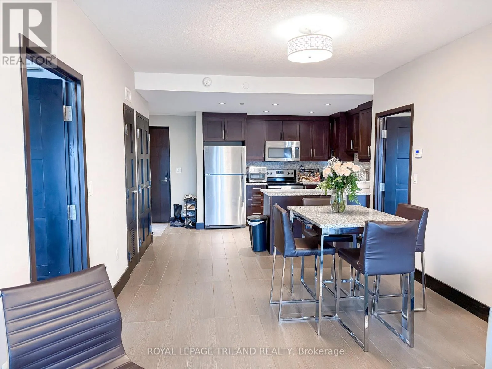Cross Streets: Raymond Avenue. ** Directions: North of University gates on West side. Welcome to Luxe London, one of North London's premier condominium buildings, ideally located within walking distance of Western University. Residents enjoy exceptional amenities including a state-of-the-art fitness and yoga studio, 40-seat theatre, rooftop terrace, business lounge, games lounge, tanning spa, sauna, whirlpool hot tub, café lounge with fireplace and television, as well as the peace of mind of a 24-hour concierge, overnight security, and full surveillance. This impressive 19-storey, 311-unit building, established as a condominium in 2018, is perfectly situated in prime North London. This two-bedroom, two-ensuite suite offers approximately 965 square feet of thoughtfully designed living space with beautiful views overlooking Ross Park and the Thames River. The open-concept kitchen features granite countertops and backsplash, high-end stainless steel appliances, and flows seamlessly into the living area highlighted by floor-to-ceiling windows that bring in plenty of natural light. The unit is being sold fully furnished and includes in-suite climate-controlled heating and underground parking. Heat, water, and central air conditioning are all included in the condo fees, along with the existing furniture, making this an ideal turnkey opportunity for investors or parents seeking accommodation for a Western student. (id:27476)