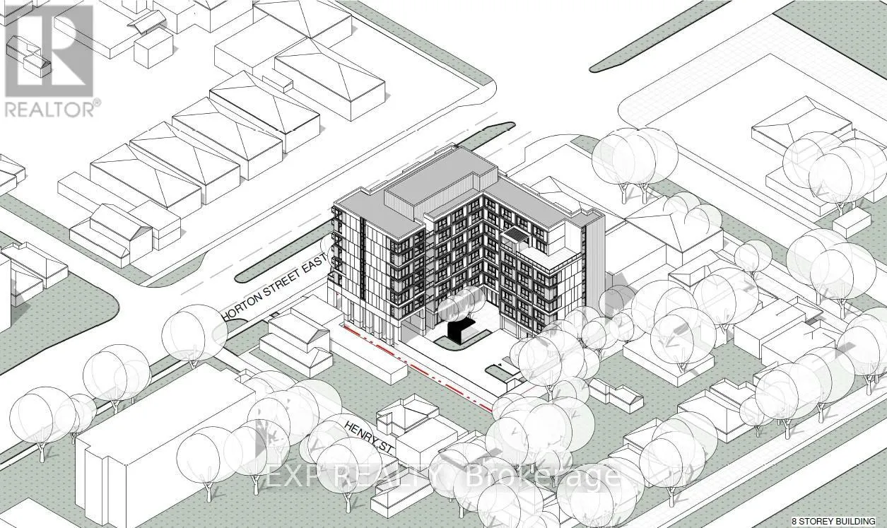 Cross Streets: Wellington St. ** Directions: Going East on Horton, building will be on your right. Welcome to Horton Flats, a zoning-approved mid-rise development at 323, 317, and 313 Horton Street, in the heart of London ON. This project will redefine urban living while supporting affordable housing initiatives and sustainable city growth. This 8-story mixed-use development is a strategic and high-potential opportunity for investors, developers, and affordable housing providers looking to capitalize on London's ongoing revitalization efforts. Designed to align with The City of London's Plan of Urban Corridor, Horton Flats is a forward-thinking development that combines innovative growth principles, transit-oriented living, and financial sustainability. A Smart Development in a Strategic Location. Horton Flats features 106 functionally designed residential units, providing efficient and modern living spaces tailored for today's renters. The ground floor includes two commercial spaces, offering the perfect setting for businesses serving the residents and the surrounding community. This prime urban location is ideally positioned on London's Rapid Transit corridor, ensuring seamless connectivity to key city destinations. Additionally, its proximity to CN Rail and major roadways enhances accessibility, making it a desirable site for long-term investment and development success. With the Growing Demand for Affordable Housing, Horton Flats offers a strategic solution that meets community needs and investor goals. This development is potentially eligible for various financial incentives. Don't miss out on this exceptional investment opportunity! Approx. $417,000 development charge credit available due to existing commercial floor area, providing significant upfront cost savings for redevelopment. Please contact for details. (id:27476)