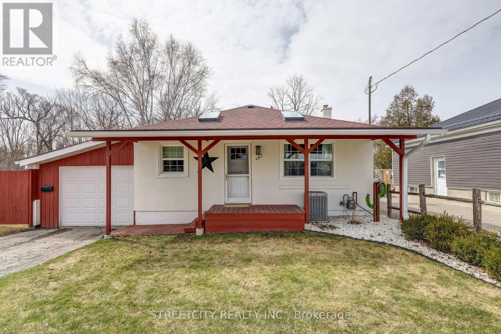 Cross Streets: Parkhurst. ** Directions: FROM DUNDAS, NORTH ON CLARKE RD, ON LEFT SIDE BEFORE PARKHURST. Welcome to 483 Clarke Road-an exceptional and rare offering where lifestyle, functionality, and opportunity come together. Where else can you find a fully updated bungalow paired with a premium workshop and private green space, all within the City of London? This beautifully maintained home features a bright, open-concept main floor with soaring vaulted ceilings, skylights, and rich hardwood flooring throughout. The modern kitchen and updated 3-piece bath offer a clean, contemporary feel, while the fully finished lower level provides incredible flexibility with a spacious den, additional bedroom area, office or storage space, and a second full 4-piece bath. All bedrooms offer floor to ceiling armoires. Step outside and discover what truly sets this property apart-designed for hobbyists, entrepreneurs, and car enthusiasts alike. A secure enclosed carport or double wide gates leads to an impressive 20x36 steel workshop featuring 19-foot ceilings, a 10-foot door, automotive lift, and full electrical service-a truly rare find in the city. Beyond this is a private backyard retreat offering ample parking, additional storage including a shed and 20ft sea-can container, and a beautifully landscaped green space complete with perennial gardens, a brick fire pit, and a covered patio perfect for relaxing or entertaining.A one-of-a-kind property delivering space, versatility, and lifestyle without leaving the city. Recent updates include new central air (2025) and roof shingles (2022) and Exterior Professionally Painted (2024). (id:27476)