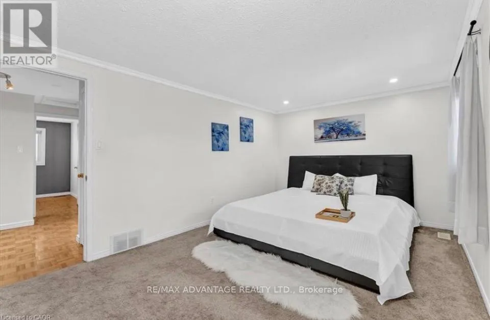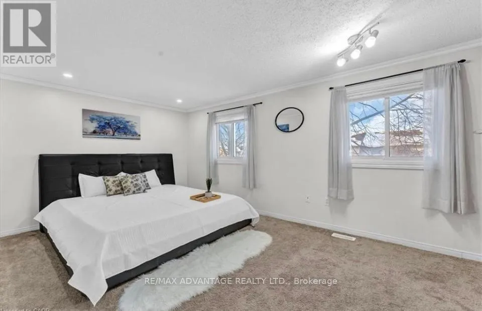 Cross Streets: Martinet Ave & Veterans Memorial Pkwy. ** Directions: North on Veterans to Trafalgar. West on Trafalgar, turn north onto Martinet. Amazing opportunity for first-time homebuyers! Offered at a great price with low maintenance fees, this beautiful townhouse features 3 spacious bedrooms, a bright and functional layout, and a partly finished basement-perfect for a second living space, home gym, or entertainment area. Enjoy a large, sun-filled kitchen with plenty of room for cooking and gathering, flowing into an open-concept living and dining area filled with natural light. The generous room sizes throughout provide comfort and flexibility for families or work-from-home needs. Located in a desirable, family-friendly neighborhood, this home offers quick access to Veterans Memorial Parkway and Highway 401, making commuting across the city easy and convenient. (id:27476)
