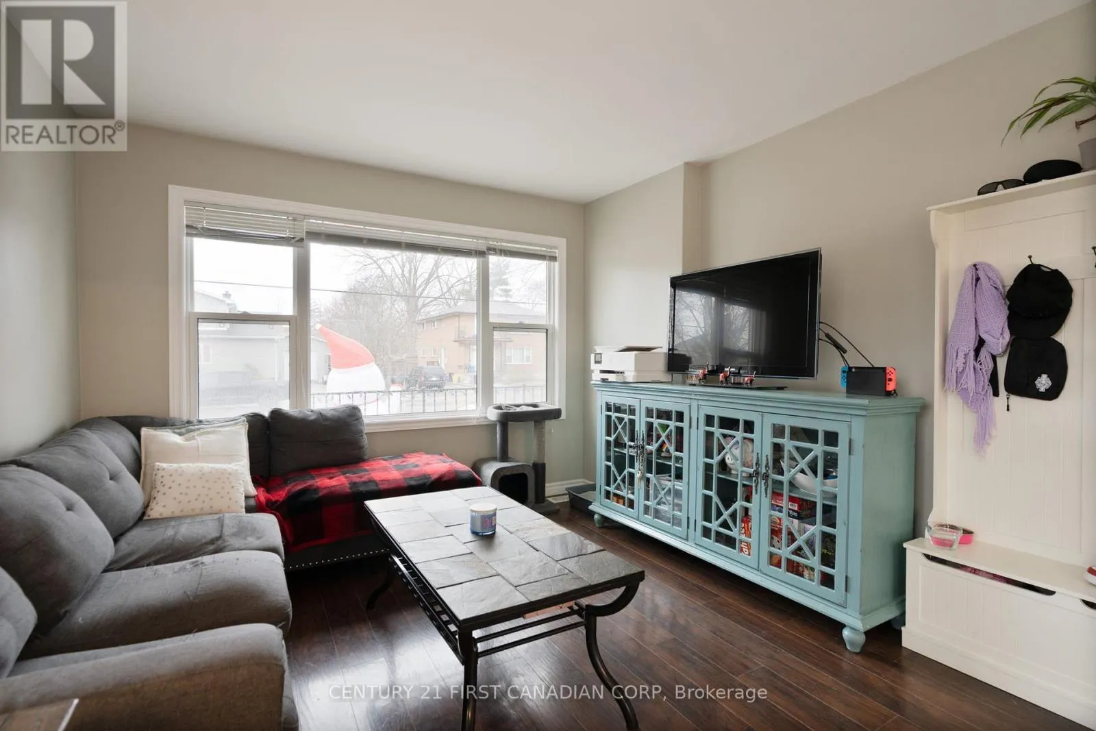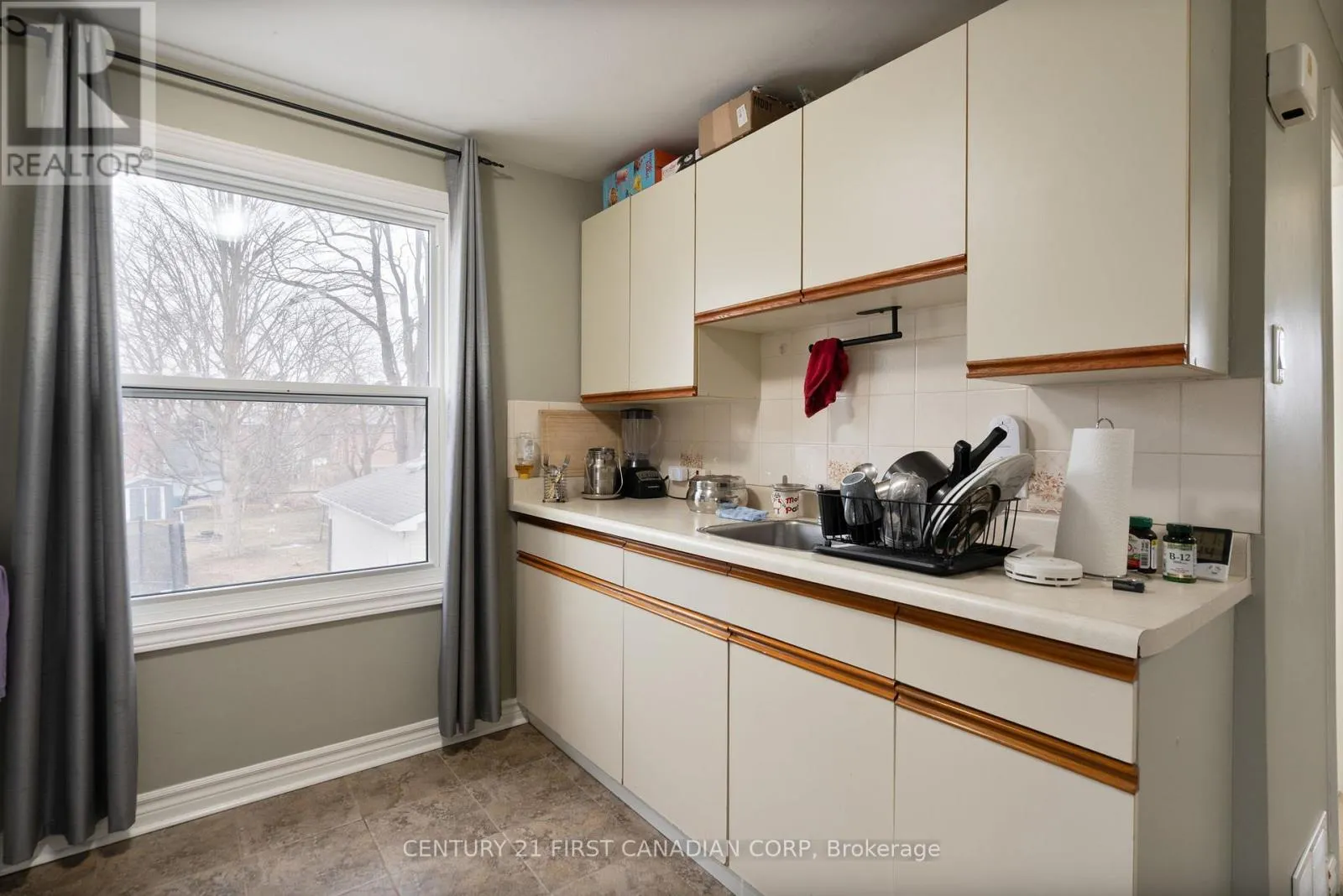 Cross Streets: Highbury/Brydges. ** Directions: North on Highbury, right on Bridges, left on Spruce Street. Tucked away on a quiet street in East London, this clean and well-maintained legal duplex offers excellent flexibility for investors, multi-generational living, or buyers looking for a home with income potential. The property could also be easily converted back into a single-family residence if desired. Set on a generous 50 x 208 ft partially fenced lot, the home features three self-contained living spaces with separate entrances. The upper-level unit is a bright one-bedroom apartment with its own front entrance and separate hydro meter. The main floor unit, accessed from the rear of the home, offers two bedrooms and comfortable living space. The lower-level granny suite features one bedroom and its own entrance through an exterior stairwell. A shared laundry and utility room is located in the basement with separately keyed access for convenience. Each unit includes a fridge and stove, and microwave. All the essentials have been updated including the furnace and air conditioning unit in 2020, and the majority of windows in 2023. Outside, you'll find an oversized single-car garage (19 x 25 ft) with 110-volt service and a finished drywall interior, along with ample parking for at least four vehicles plus the garage.Ideally located close to Fanshawe College, Argyle Mall, Clarke Road Secondary School, and major bus routes, this property offers both convenience and strong rental appeal. (id:27476)