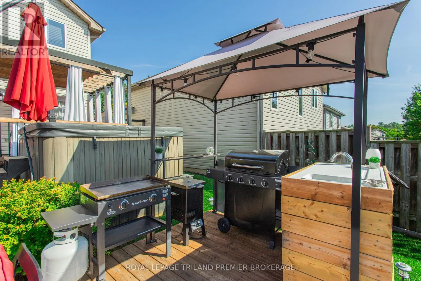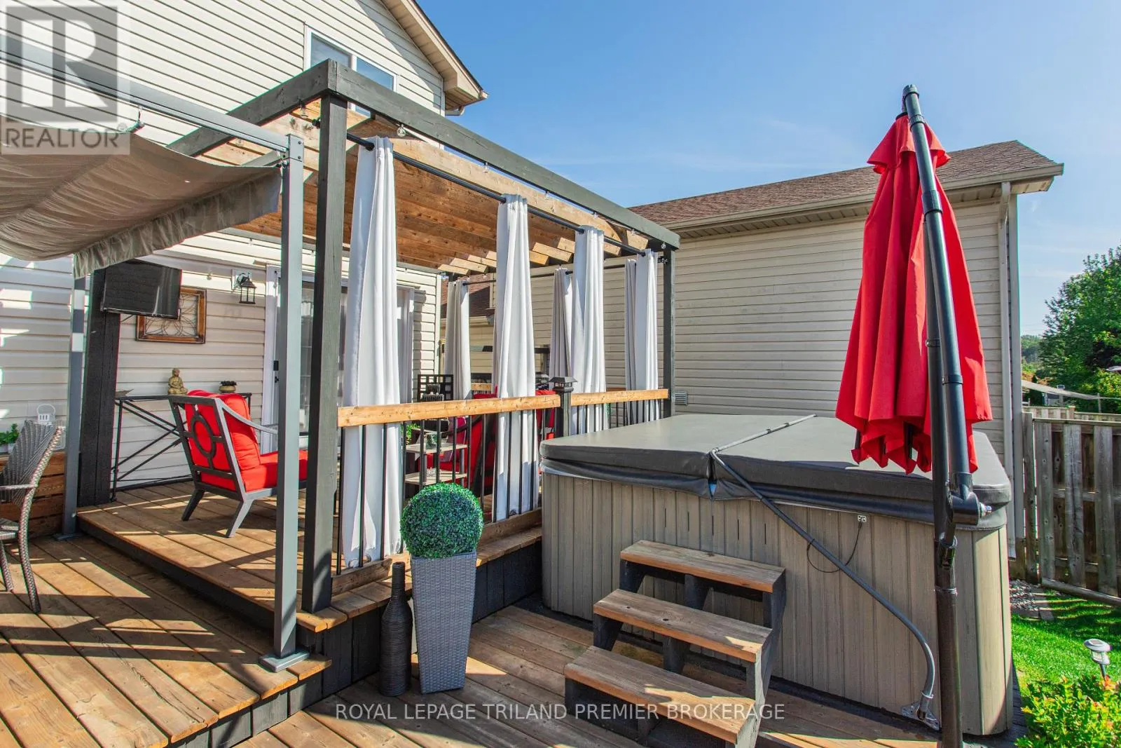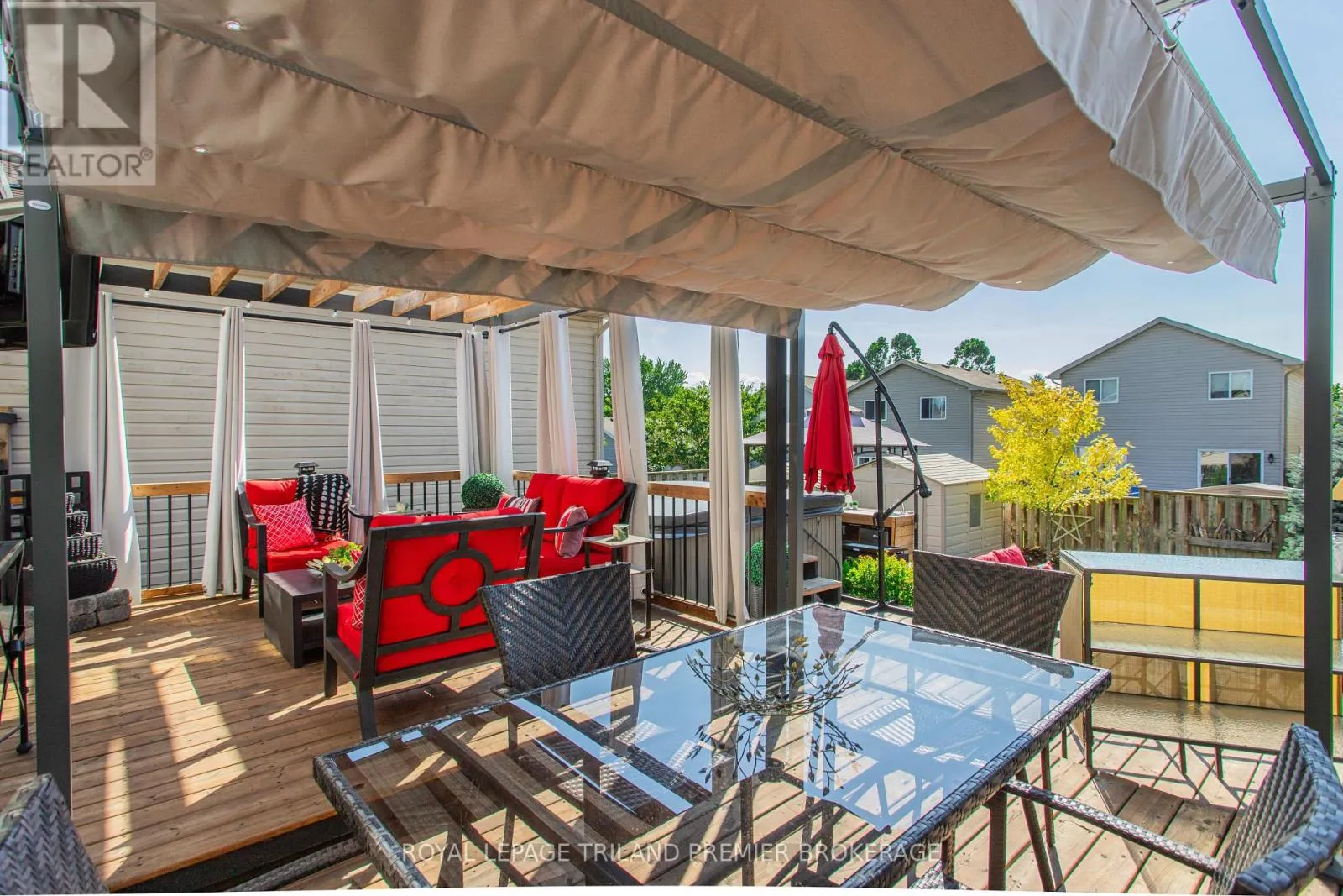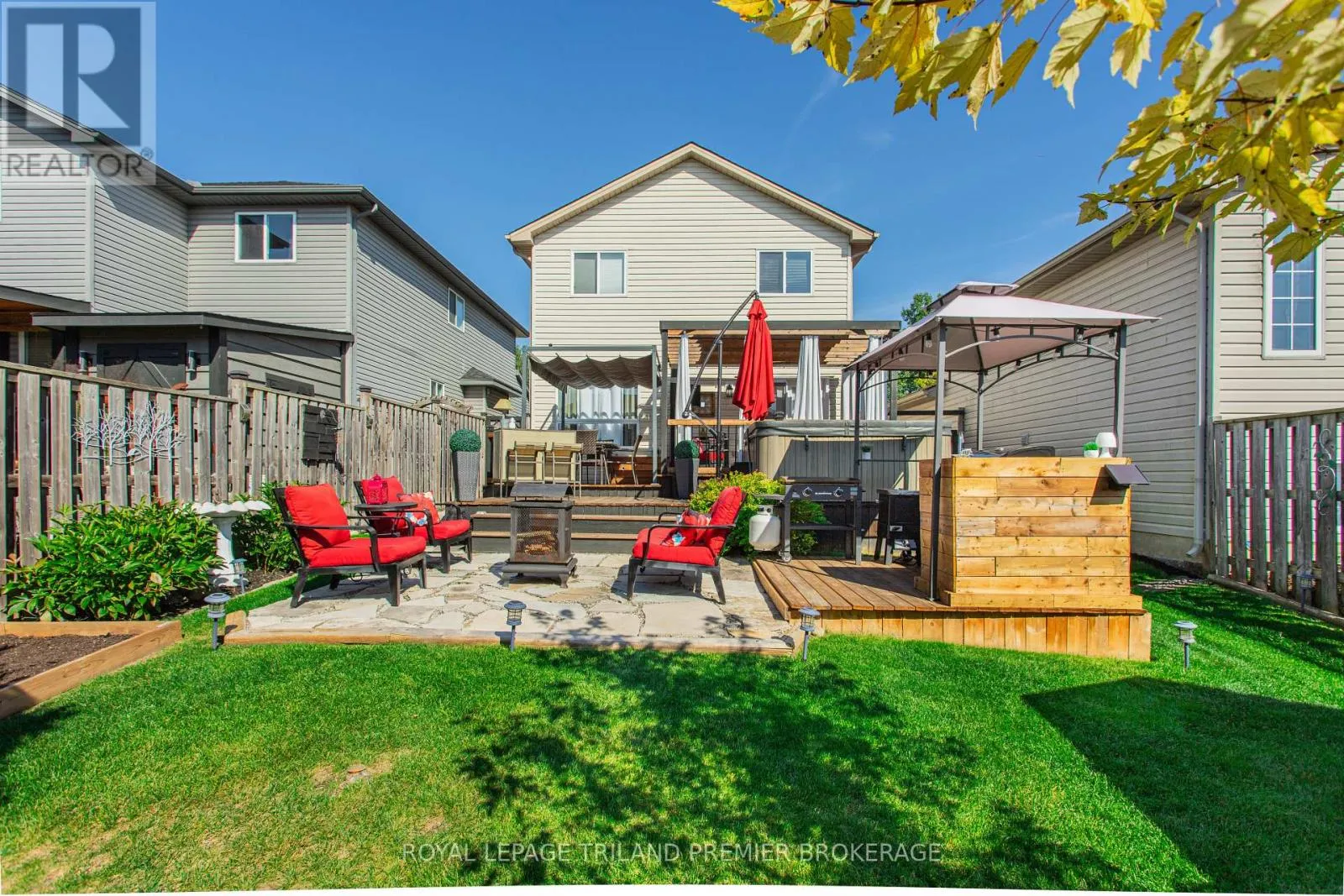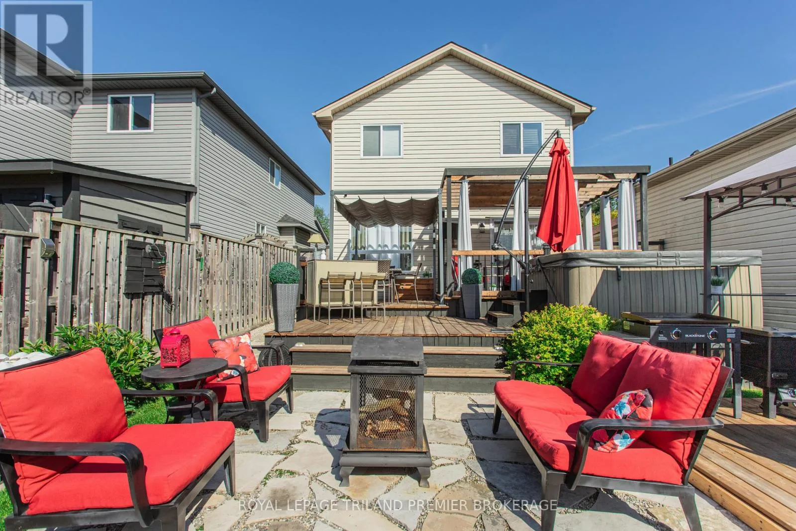 FROM HAMILTON ROAD, HEAD NORTH ON CRIMSON CRESCENT Impeccably maintained and beautifully updated, this stunning two-storey family home is nestled in desirable southeast London. Offering 3 bedrooms and 2.5 bathrooms, the home blends comfort and style throughout. The main level features an updated eat-in kitchen and an inviting living/dining area with hardwood flooring, seamlessly connecting to a private backyard retreat-perfect for indoor-outdoor living. A convenient 2-piece bathroom completes the main level. Upstairs, you'll find three generously sized bedrooms with brand new carpeting, including a spacious primary suite complete with a vaulted ceiling, cheater ensuite/main bath, and walk-in closet. The fully finished lower level adds even more living space, featuring a large family room, additional storage, laundry area, and a convenient 3-piece bathroom. Step outside to your own backyard oasis, designed for entertaining with multi-level decking, patio, BBQ prep area, a hot tub, and pergolas-ideal for summer BBQs and relaxing evenings under the stars. Conveniently located close to Highway 401, public transit, and scenic trails, this home offers the perfect balance of lifestyle and location. Updated carpet upper level (2026), Roof approx. 2016, AC approx. 2017, Furnace approx. 2021, Lighting updates last 2 years. (id:27476)