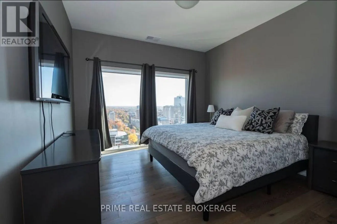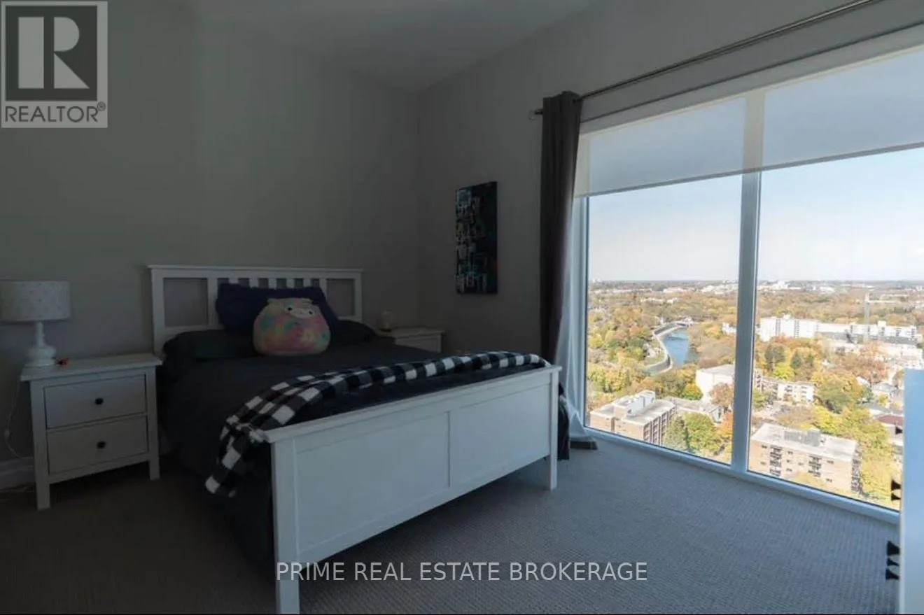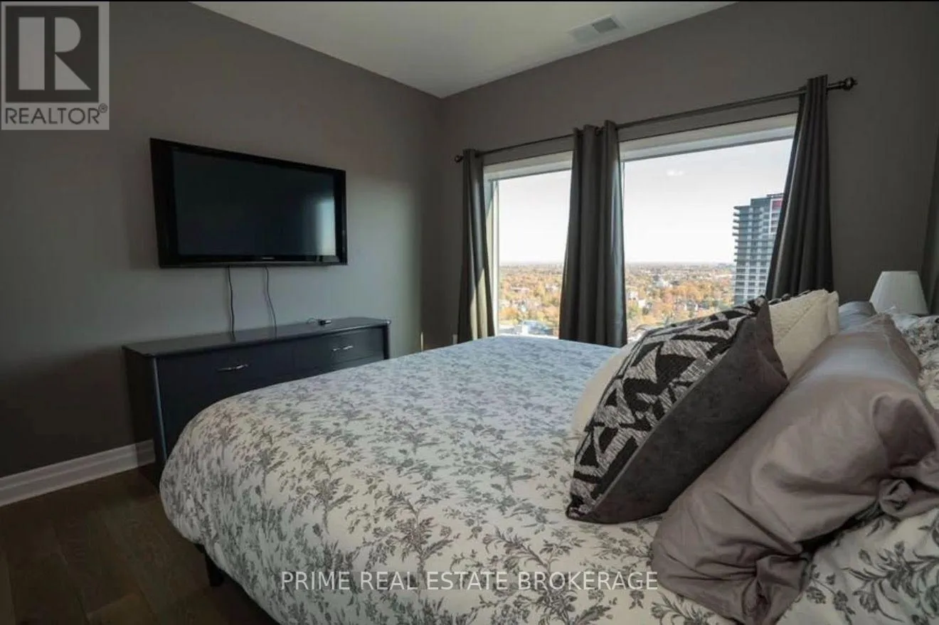 Talbot St. and Dufferin Enjoy the excitement of downtown living while being just steps from beautiful trails and parks.Wake up to breathtaking sunrises and unwind with spectacular sunsets through your floor-to-ceiling windows-watching the seasons change from the comfort of your own home.Perched on the 25th floor, this stunning corner unit offers 2 bedrooms + den across 1,410 sq ft of thoughtfully designed living space. The open-concept kitchen and living area features hard surface finishes, stainless steel appliances, and a beautiful view of downtown right from the kitchen island-perfect for both everyday living and entertaining.Upgrades throughout include engineered hardwood flooring, upgraded countertops and backsplash, additional pot lighting, enhanced ensuite tile, blackout blinds, and a custom built-in Murphy bed/wall unit in the den-ideal for a home office or guest space.Step outside to your 135 sq ft private balcony, and enjoy the added convenience of a storage locker and spacious parking space. Azure's 29th-floor amenities are truly unmatched, featuring a 24-hour gym, golf simulator, billiards room, and an incredible rooftop terrace with panoramic views of the city.This is downtown living at its finest-elevated, refined, and move-in ready. (id:27476)