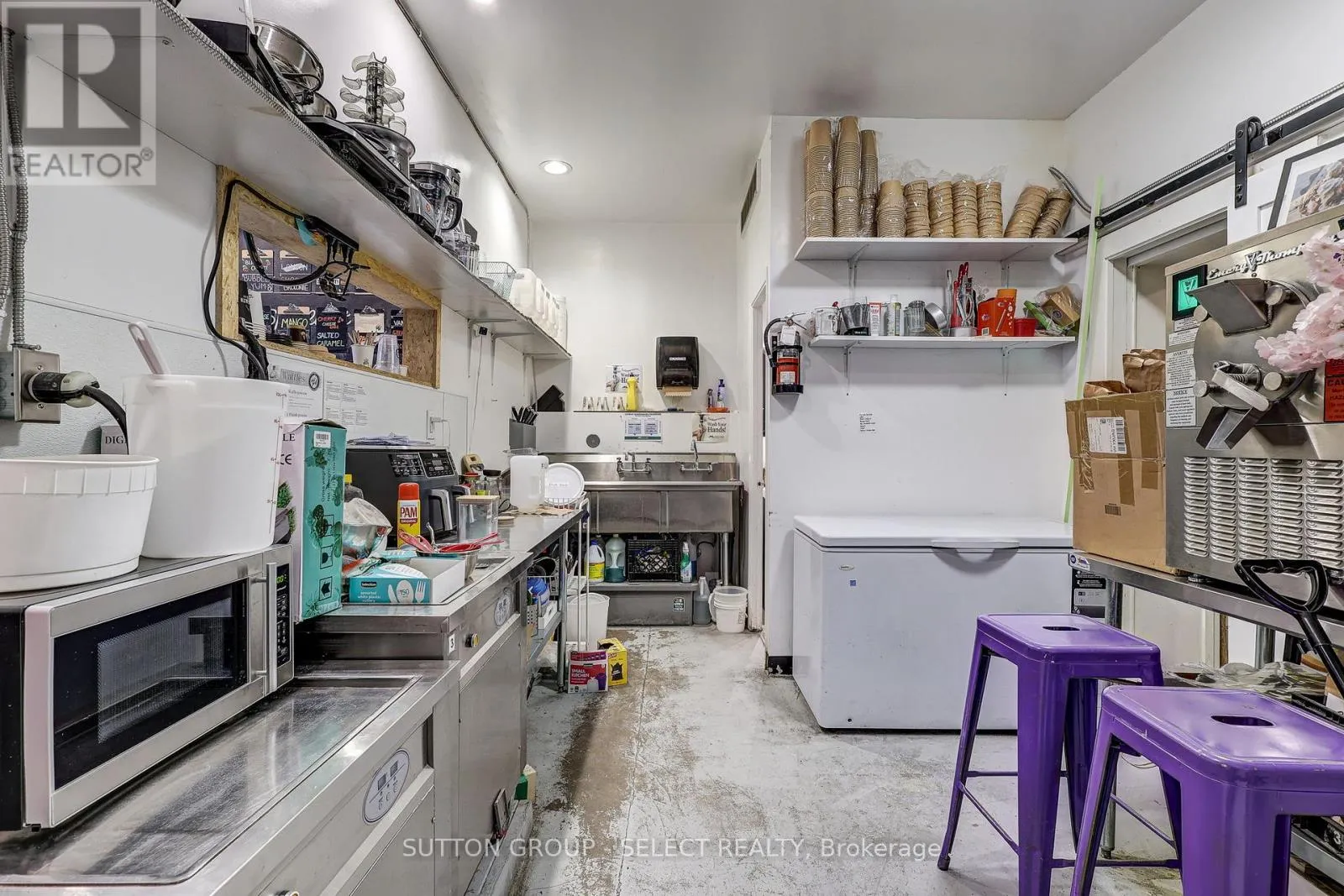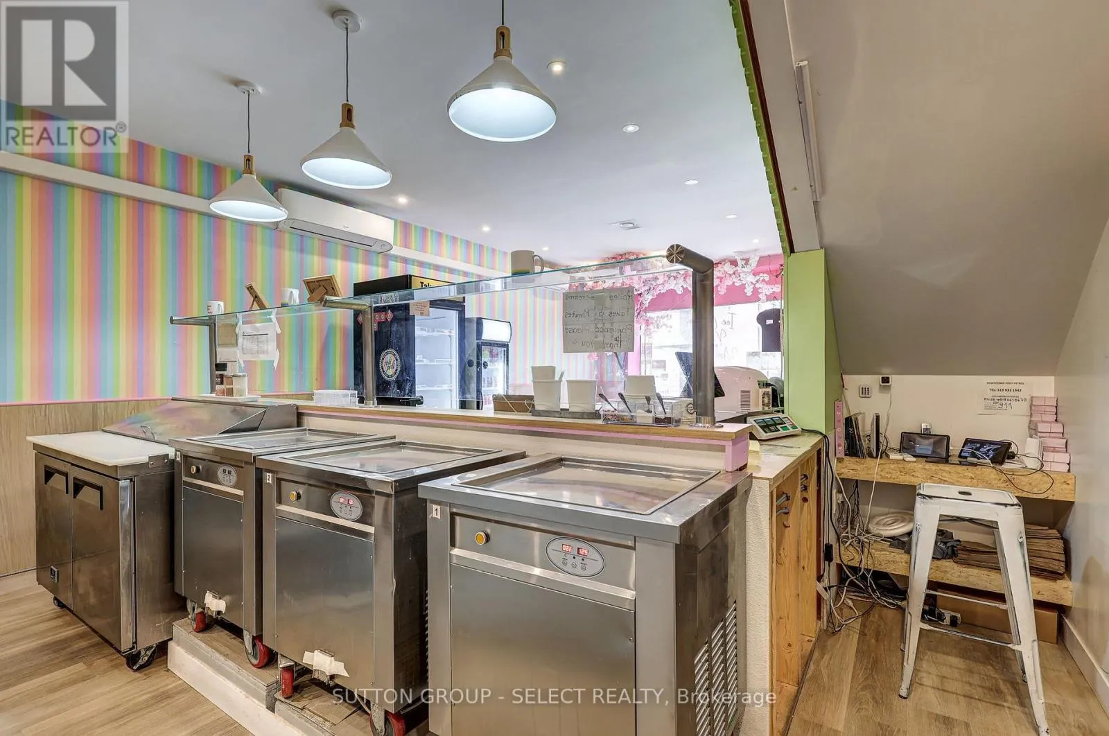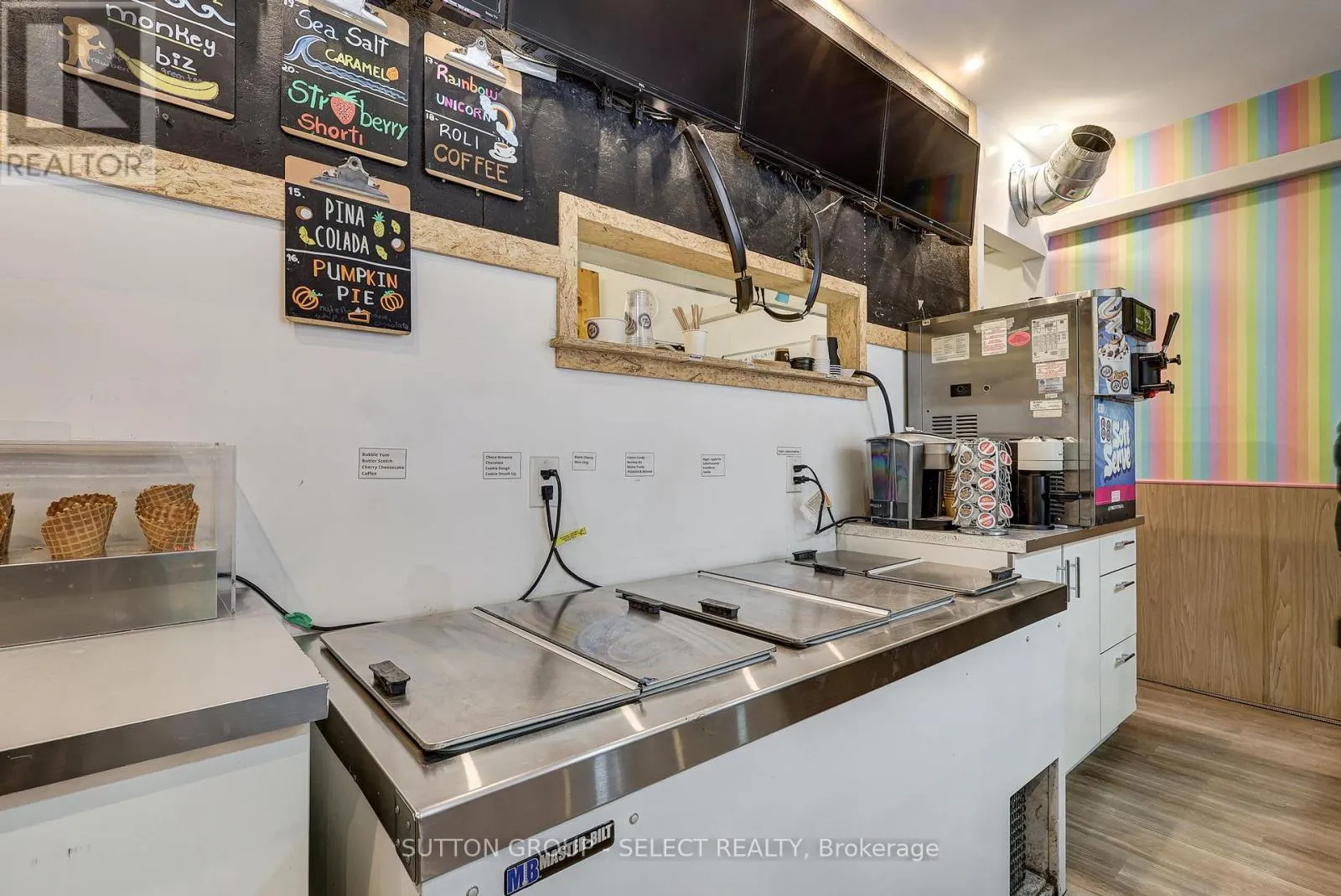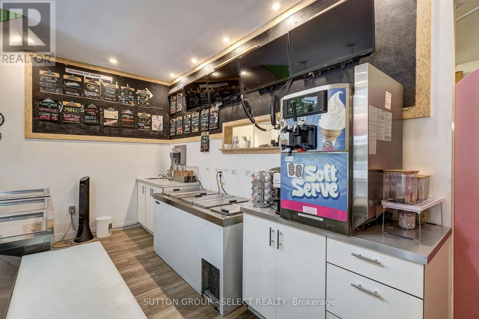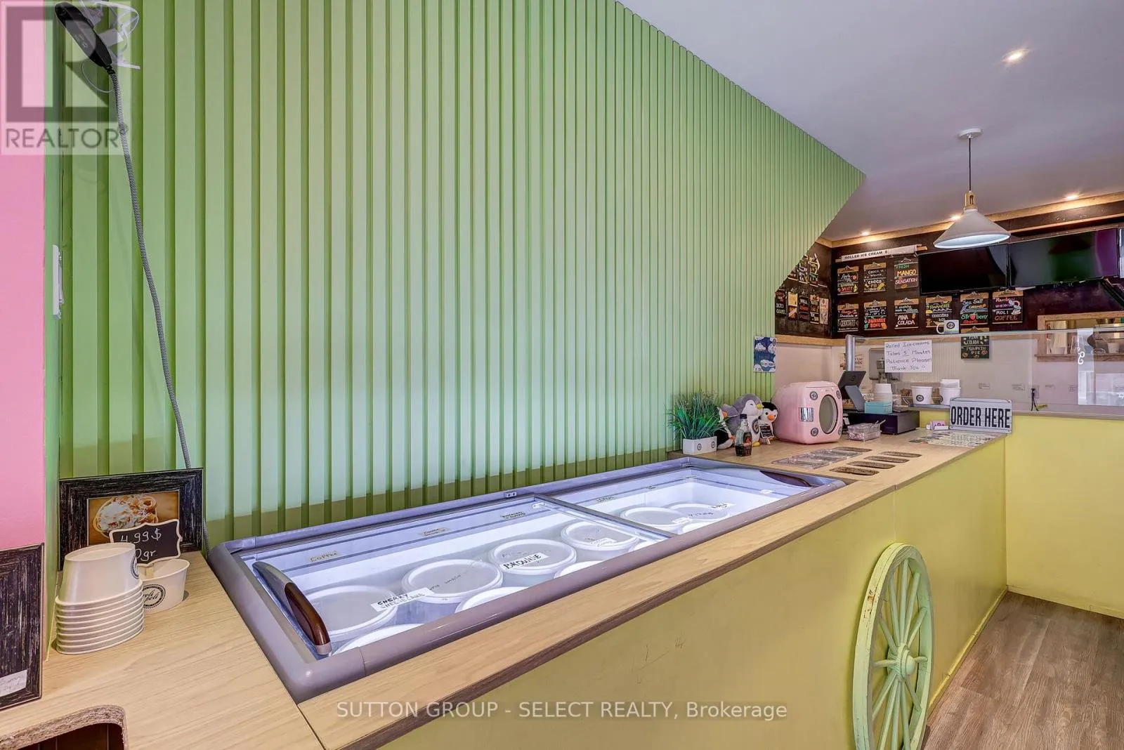 Cross Streets: Richmond St. ** Directions: Corner of Richmond St and Dufferin St. Well-established and highly rated ice cream shop located in the heart of downtown London, offering a true turnkey opportunity for entrepreneurs and investors alike. Updated with over $20,000 in improvements in 2024, this beautifully maintained space is designed for both efficiency and an elevated customer experience. Featuring a diverse and in-demand menu including rolled ice cream, scoops, buffet-style options, milkshakes, soft drinks, snacks, hot chocolate, and frozen cakes, with strong potential to expand offerings and increase revenue. The business benefits from excellent brand recognition, strong online reviews, and an active social media presence.The functional layout includes a private washroom and a dedicated back office/storage area, supporting smooth day-to-day operations. All equipment and chattels are included, allowing for a seamless transition for the next owner. Positioned in a high-exposure location with strong pedestrian traffic and approximately over 14,000 vehicles passing daily, offering outstanding visibility and consistent customer flow. Attractive lease in place with favourable terms, including one designated parking space.Turnkey opportunity with systems in place, ready for immediate takeover and continued growth. A rare chance to acquire a well-established business in a prime downtown location. (id:27476)