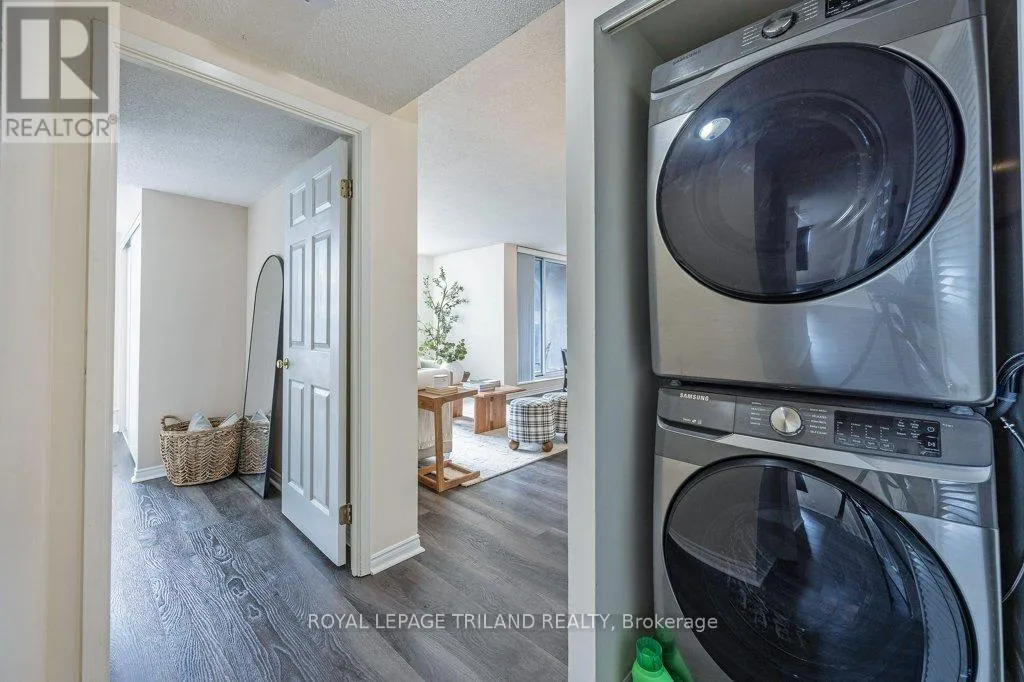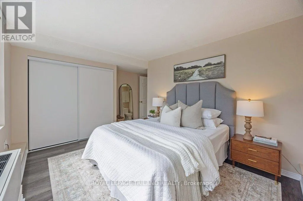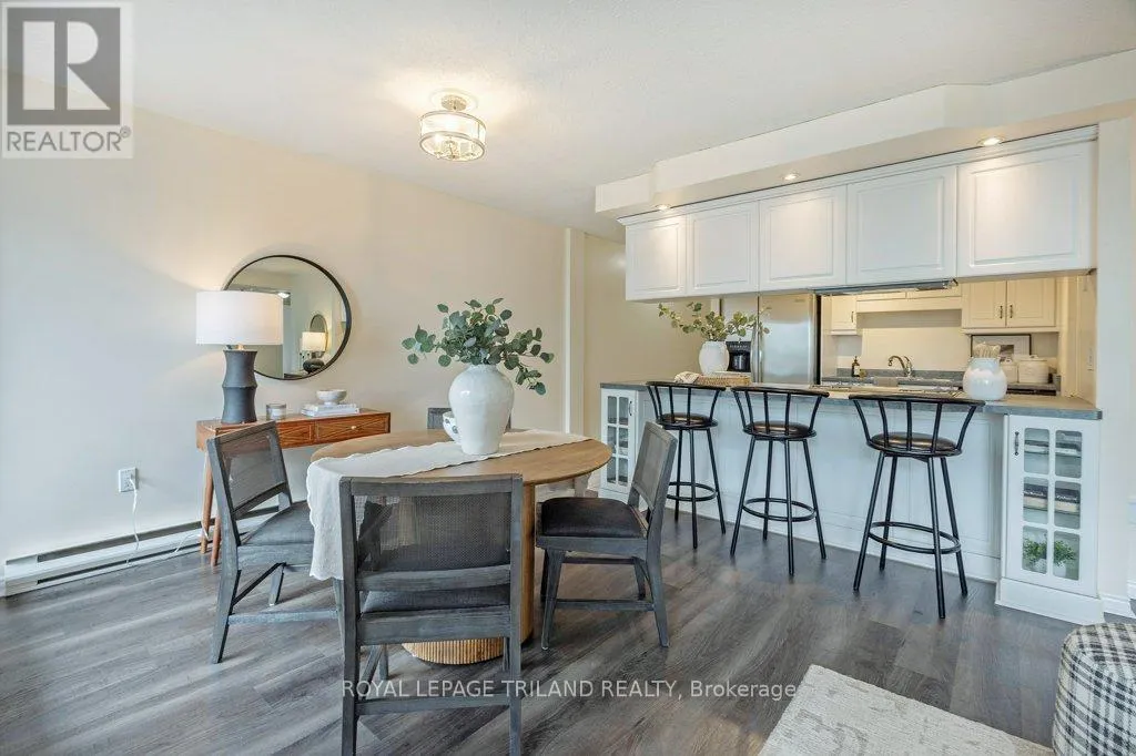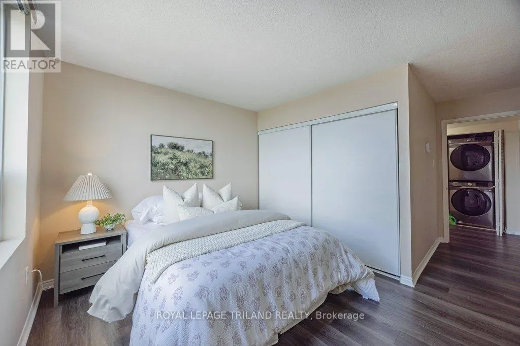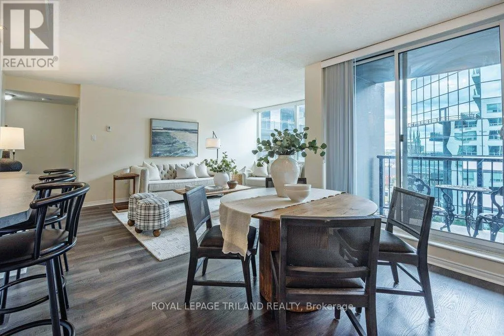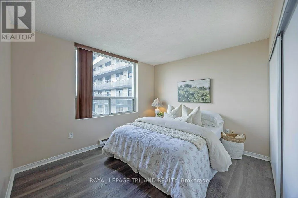 Cross Streets: RICHMOND/KENT. ** Directions: NORTH ON RICHMOND ST, LEFT ON KENT. Your front-row seat to downtown living. Inside this 11th storey condo, you have 2 well-appointed bedrooms and 2 full baths. You'll appreciate the convenience of an easy-flow layout, in-suite laundry, a breakfast bar so you can watch whats cooking and a charming south-facing balcony - a great spot for all day sun. This secure building comes with all the perks: covered parking, a gym, sauna, extra storage, and plenty of visitor and street parking. Craving the great outdoors? Step outside and you're instantly in the mix; cafes, restaurants, shops, galleries, and entertainment are all just steps from your door. A quick jog to your west will get you to Harris Park and the Thames River or go grab some take out and head to Victoria Park for any number of their festivities. Downtown living doesn't get easier or more exciting whether you're investing, downsizing, or simply ready to embrace life in the heart of downtown London. (id:27476)