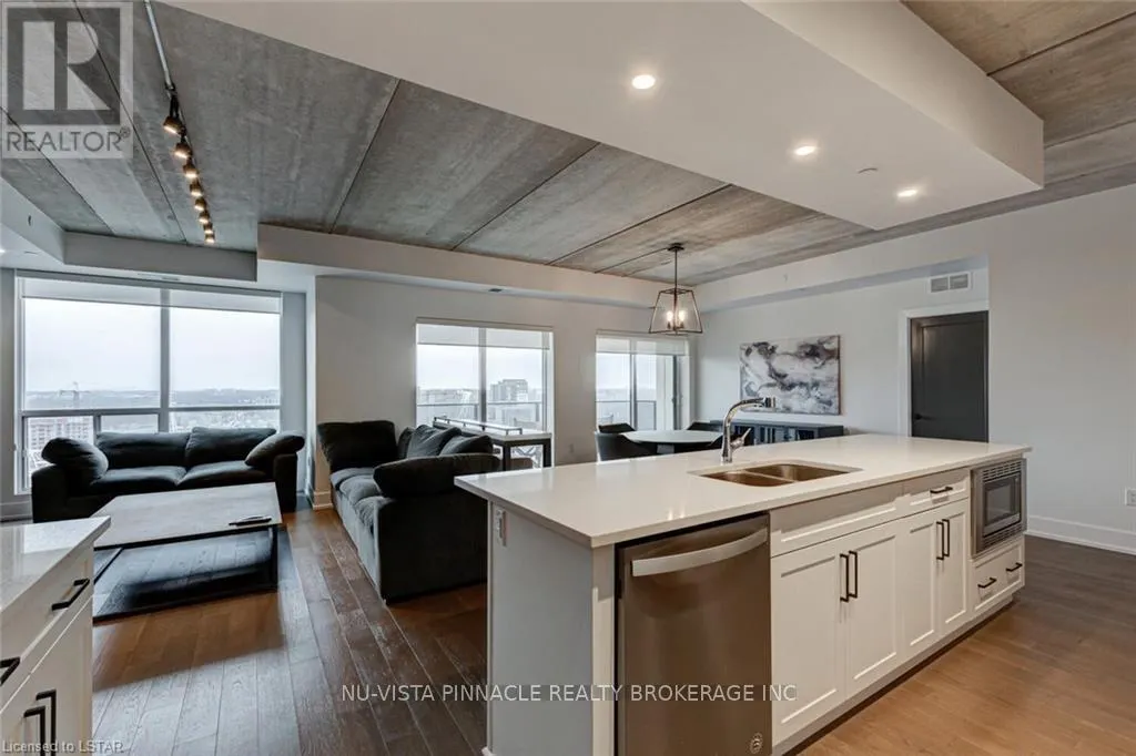 Located at the corner of Talbot ST and Dufferin Ave. Live The Dream Complete With LUXURY AND CONVENIENCE!!! An Amazing Opportunity for LEASE, in the Highly Sought- After Building, AZURE CONDOS Located In Downtown London! This Unit Comes MOVE- IN READY For JUNE 1 2026! This Stunning Pent-House Like Suite Has 2 Spacious Bedrooms Complete With 2 Full Bathrooms! The Primary Bedroom Comes With a Walk In Closet With Built Ins. You Will Love The Convenience of The In-Unit Laundry. You Even Have Your Own Private Balcony With Great Views! With Premium Upgrades throughout the condo, Exposed Statement Concrete Ceilings, Modern Fixtures, and Large Windows, This Unit Looks Like its Right Out Of A Magazine It is Breathtaking! There's More!!! YOU WILL LOVE ALL THE AMENITIES IN THE BUILDING YOU CAN TAKE ADVANTAGE OF WHEN LIVING HERE! Controlled Entry, Golf Simulator, Fitness Centre, Library, Games Room, Party Room And Large Rooftop Patio With Lots Of Seating Just To Name A Few. Condo Fee Conveniently Covers Heat and Water, So Tenant Will Only Need to Pay For Hydro! Convenient Downtown Location Close To Shopping, Cafes, Restaurants, Bars, Budweiser Gardens, Library, Public Transit, Covent Garden Market And More! Short Commute To Western and St. Josephs Hospital. Don't Miss Out! You Will LOVE Living Here! (id:27476)