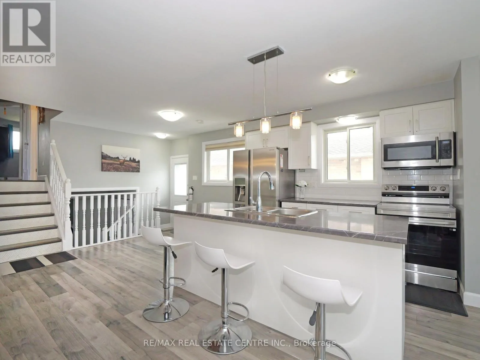 Adelaide / Huron Spacious 5-bedroom, 2-bath home located just 10 minutes from UWO and Fanshawe-ideal for first-time buyers, investors, or a growing family. Nestled in a quiet, friendly neighbourhood and close to all amenities. The main floor features an open-concept kitchen with breakfast bar and stainless steel appliances, along with bright living and dining areas. The upper level offers three generous bedrooms and a full bath. The third level includes two additional bedrooms, a pantry closet, and a second living space. The lower level features a home office, full bath, and a laundry area with ample storage. Move-in ready! (id:27476)