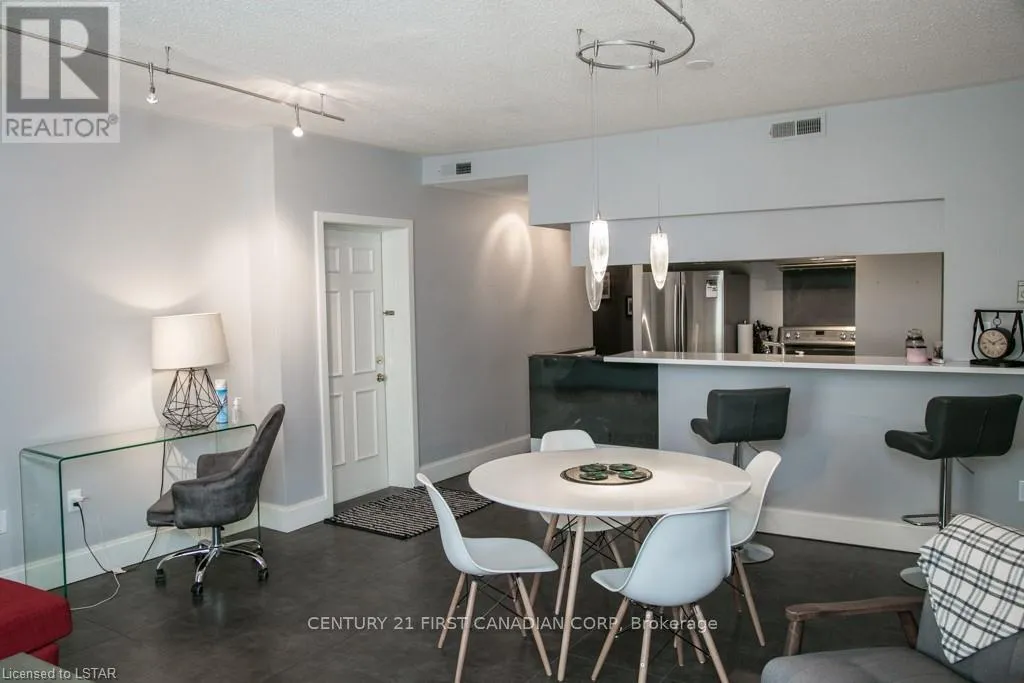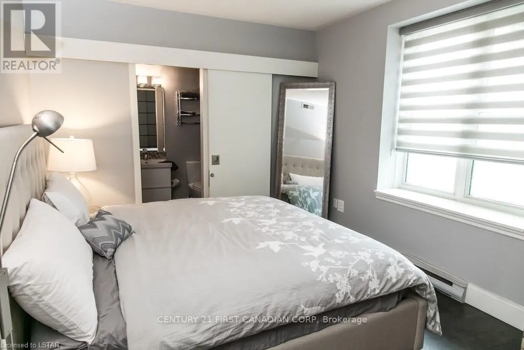 Cross Streets: Queens. ** Directions: Parking is off of Queens Ave. Executive Boutique Condo in the heart of London is now available for lease. This fully furnished, 2 bedroom suite with cheater en-suite, open concept living room/dining room and kitchen with Caesar stone countertops. Conveniently located within walking distance to everything you could need. Steps fromVictoria Park, Bud Gardens, Canada Life, restaurants, shopping and more. Easily accessible on transit and close to Victoria Hospital, University Hospital, Western University and Fanshawe College. This sought after unit is professionally renovated with modern influences. Large primary bedroom, stainless steel appliances, in unit laundry and heated bathroom floor bring this unit to the next level. Landscaped common area makes for a perfect place to relax at the end of the day. Secured entry and one surface parking spot are included with this unit. If you are an A+++ tenant looking for an all furnished lease don't pass this one by! Move in and enjoy! (id:27476)