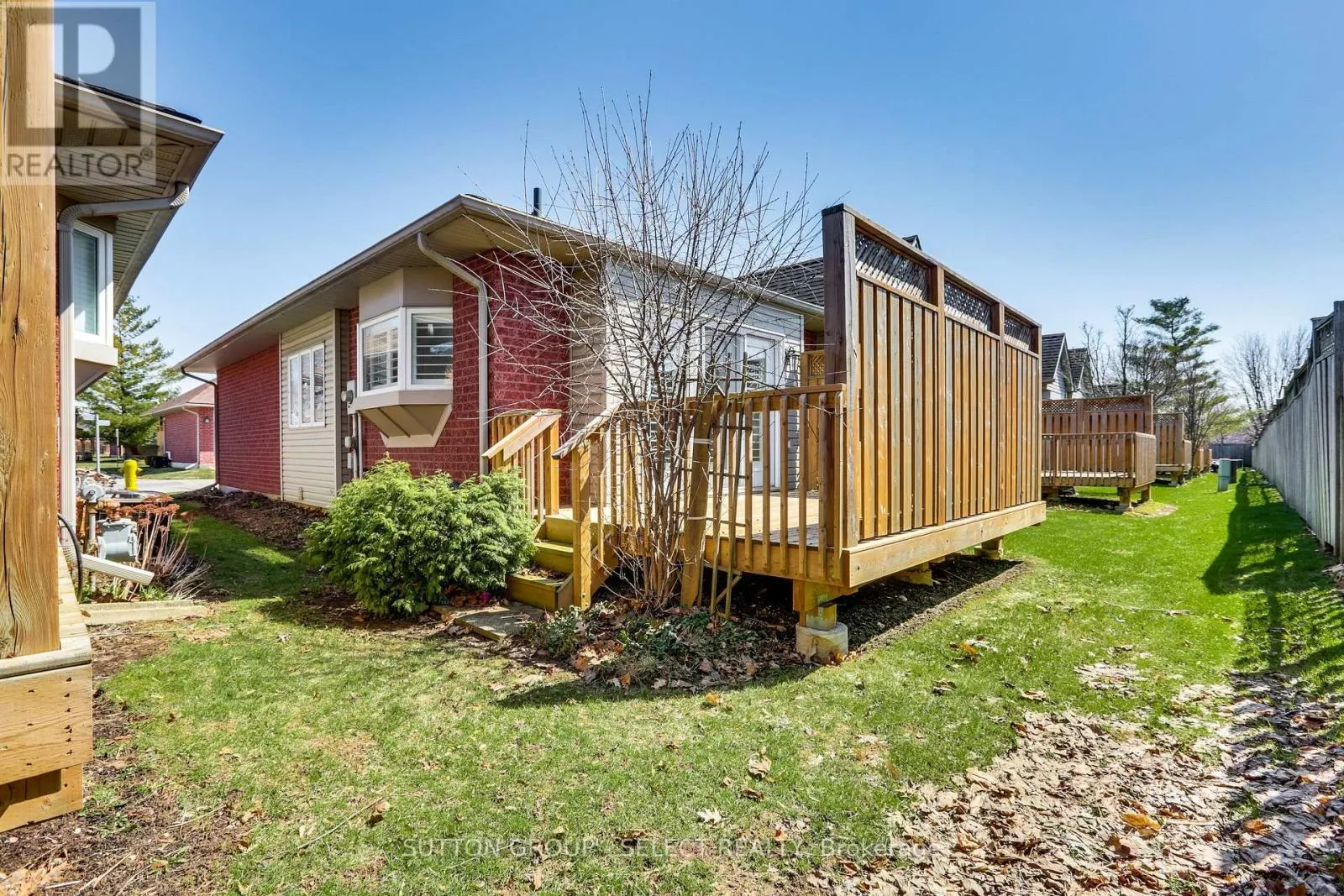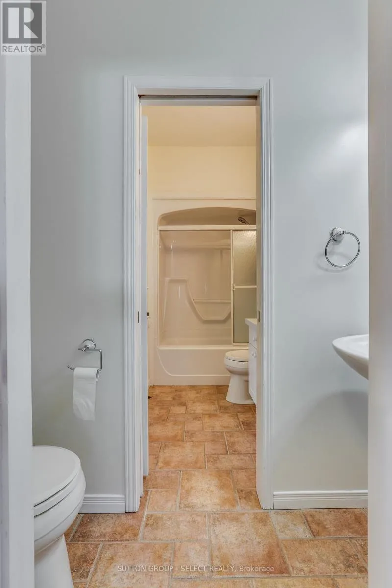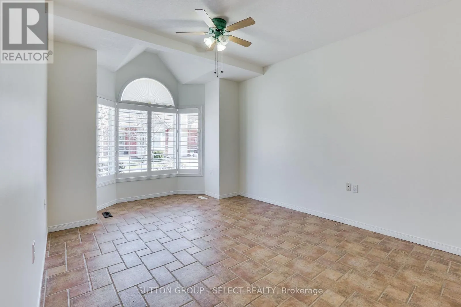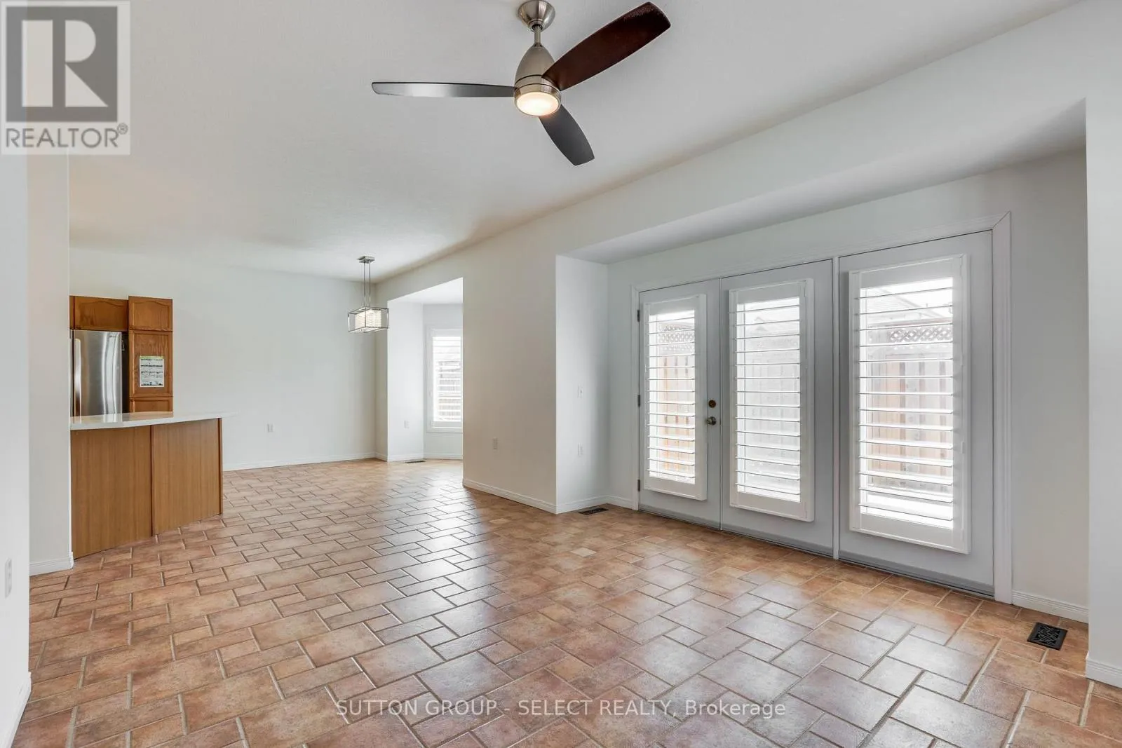 Cross Streets: Kilally Rd & Highbury Ave. ** Directions: Highbury Ave North, on the West side of Highbury North of Kilally Rd. One floor brick end-unit condo located in North/East London's River Valley North area. Featuring 2 bedrooms, 2.5 bathrooms, a bright open concept kitchen with peninsula-style breakfast bar, stainless steel 3-door fridge, gas stove and dishwasher, dining area with large windows, and a great room with triple doors to a large privacy deck backing onto single-family homes. Main floor laundry with washer and dryer included. Ceramic floors throughout the main floor. Large primary bedroom with vaulted circular top window, walk-in closet, and cheater ensuite. Large front foyer spanning front to back, with a staircase to the finished lower level. A 26'9" x 17'8" massive family room with laminate flooring, a convenient 3-piece bath with glass-door shower, storage room, and workshop. High-efficiency forced-air gas furnace with central air, 100-amp service with breakers. The end unit features extra windows on the North side and a walkway to the rear deck area. 1-car garage with automatic opener and inside entry, parking for 2 cars. Walking distance to the River Valley Trail System, transit, and many amenities. Quick possession available. (id:27476)
