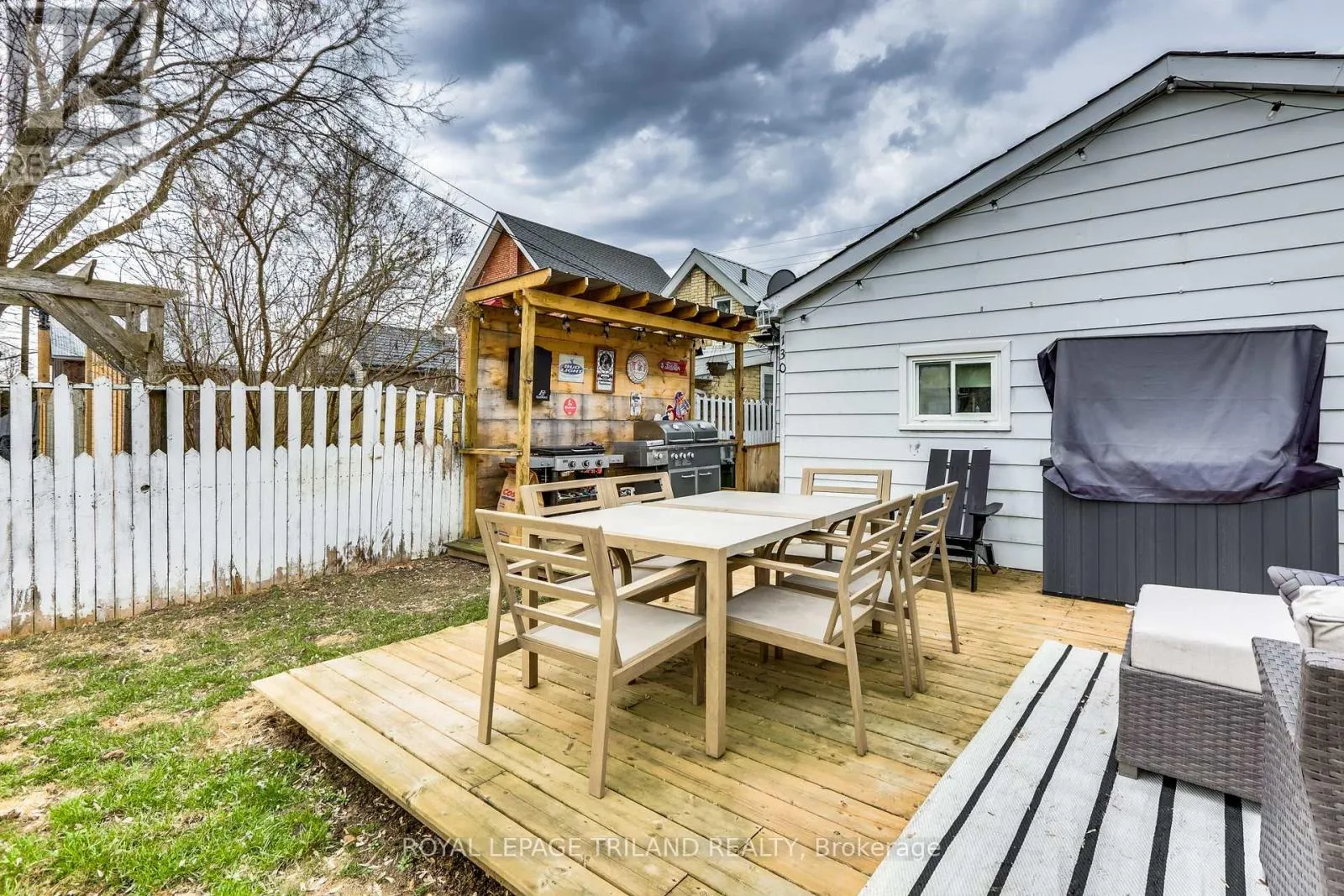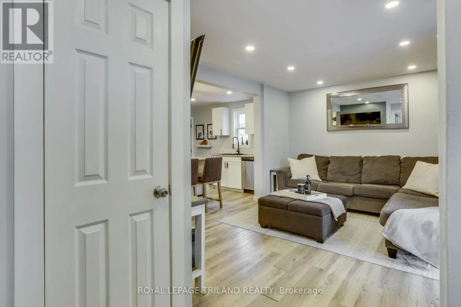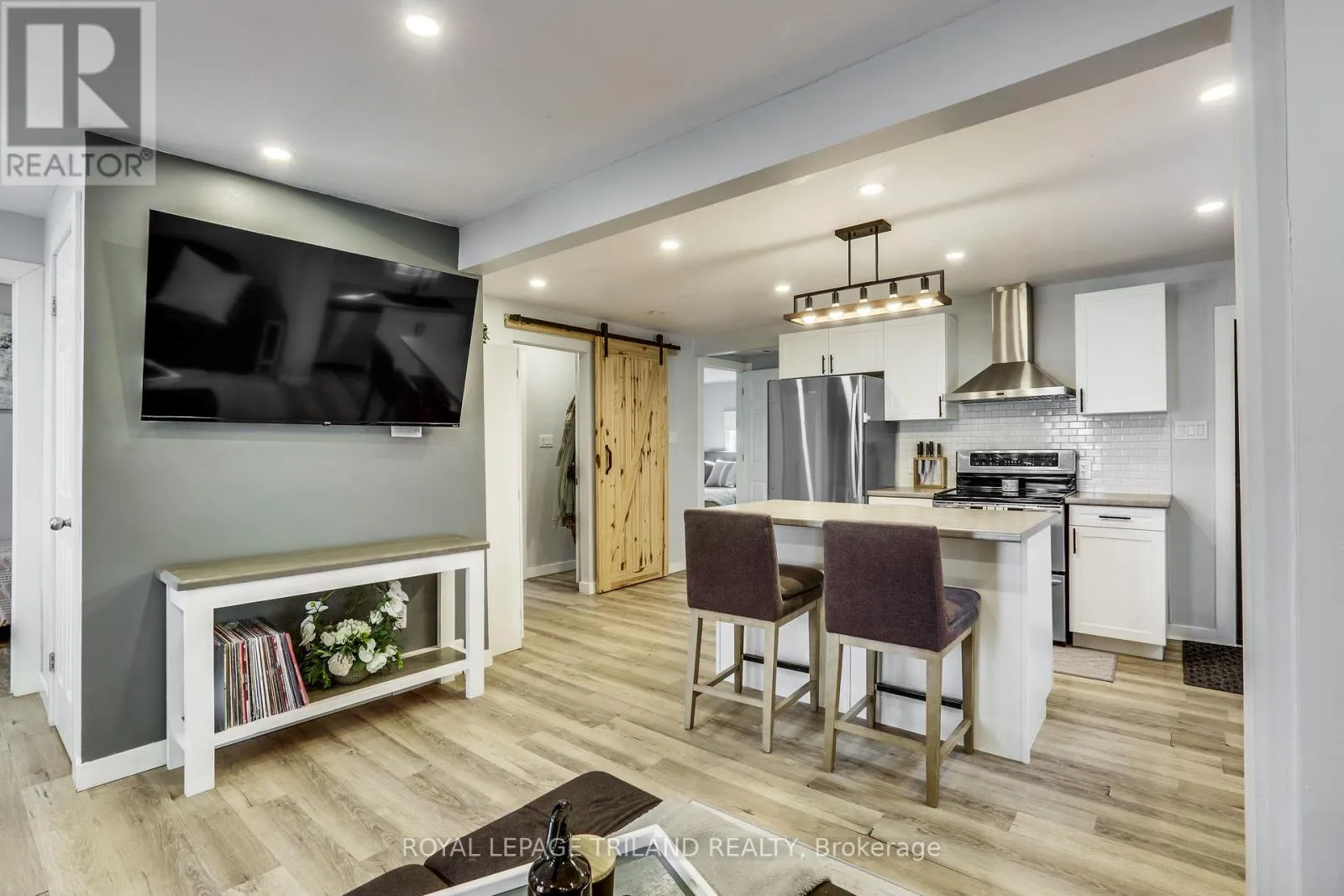 Cross Streets: HAMILTON ROAD NEAR DAKIN STREET. ** Directions: HAMILTON ROAD E TURN RIGHT (S) TO ST. JULIEN. Welcome to this beautifully renovated one-floor 3 bedroom, 2 bath home offering a bright and inviting open-concept design, perfect for modern living. the interior showcases updated pot lighting and contemporary light fixtures, creating a warm and stylish atmosphere throughout. The kitchen is thoughtfully designed with custom cabinetry and soft-close drawers, combining both function and elegance. Enjoy your morning coffee on the charming front porch featuring sliding doors, adding both curb appeal and functionality. Convenient main floor laundry adds to the ease of everyday living. Step outside to your fully fenced backyard oasis-an ideal space for relaxing or entertaining, complete with a dedicated barbecue area and a separate entrance for added accessibility. This home also offers parking for up to four vehicles-perfect for families or guests. This property has been well maintained with key updates including shingles, eaves, fascia, and downspouts replaced in 2020, central air installed in 2023, and major appliances ( fridge, dishwasher, washer & dryer) updated in 2020. Located in a desirable area close to parks, schools, shopping, and public transit, this home offers the perfect blend of comfort, convenience, and style. A fantastic opportunity for first-time buyers, downsizers, or investors alike. (id:27476)