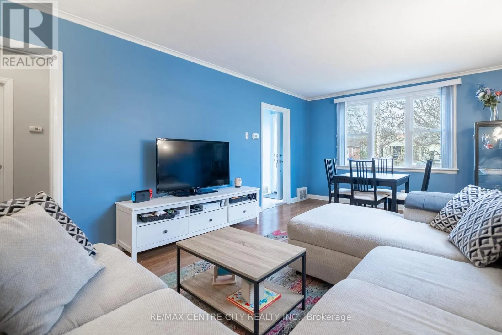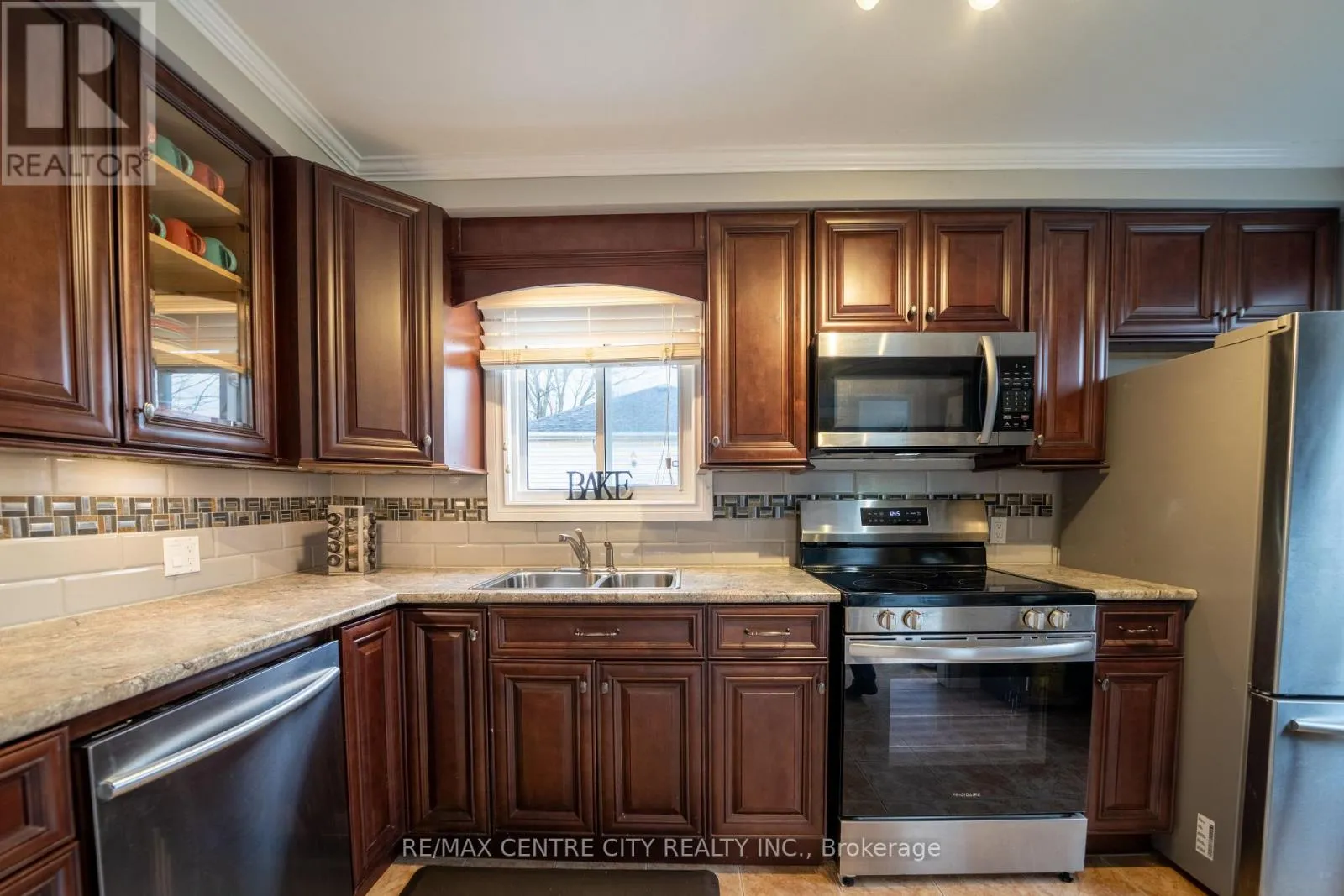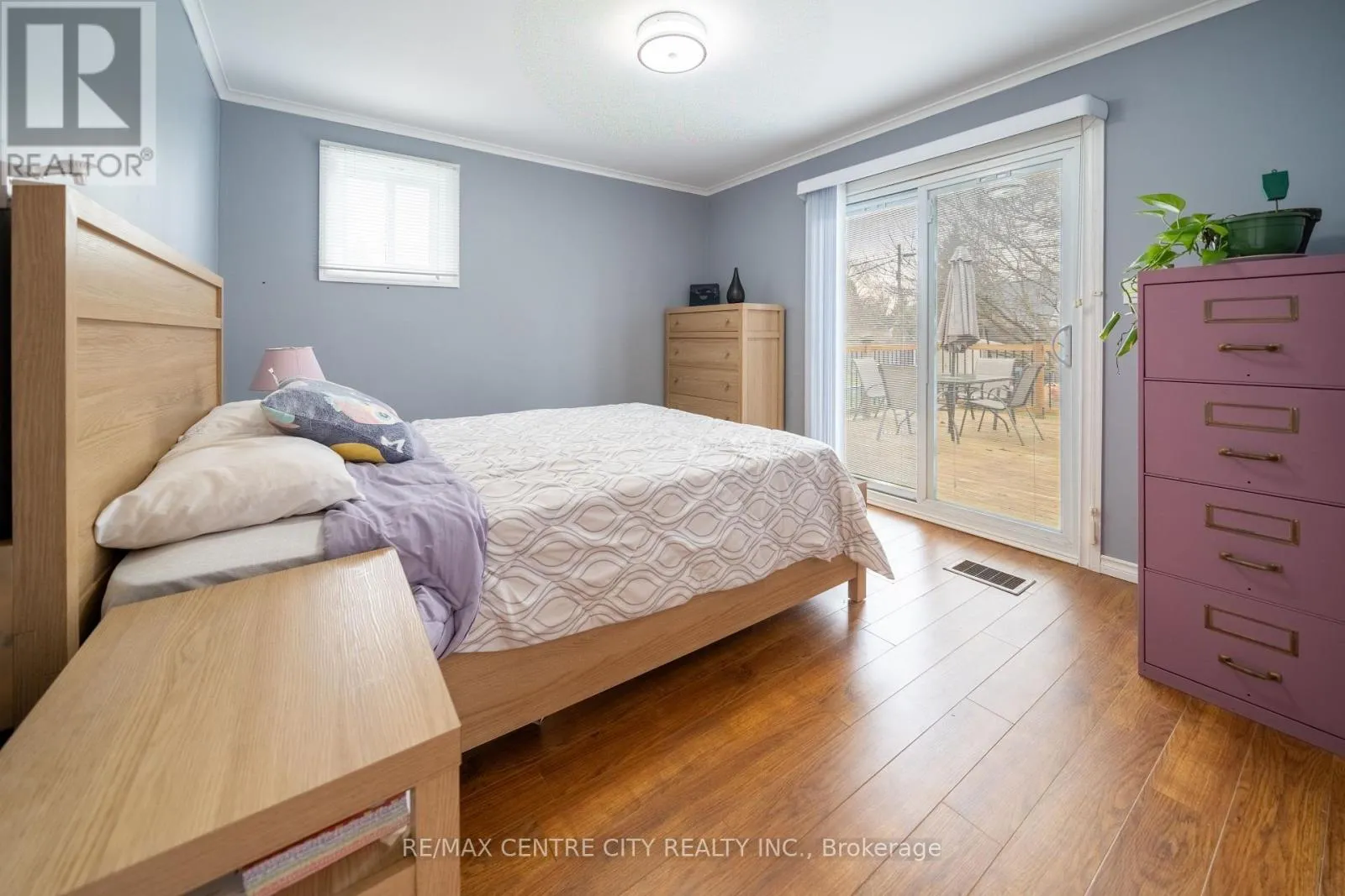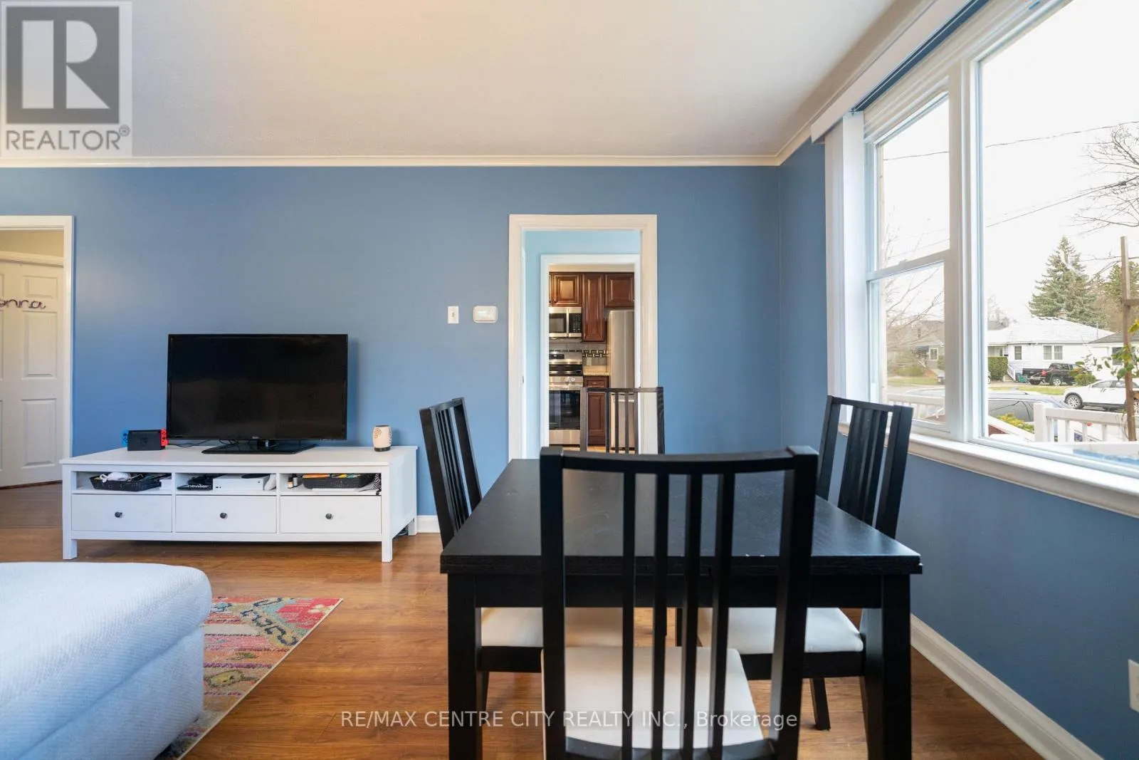 Cross Streets: OXFORD AND STRAND. ** Directions: FROM OXFORD ST. E TURN SOUTH ONTO STRAND, HOUSE IS ON RIGHT BEFORE PICCADILLY ST. Well-kept home on an oversized lot . Charming 1.5-storey brick home located in a quiet, family-friendly neighbourhood close to schools, parks, amenities, bus routes, and Fanshawe College. This move-in-ready property sits on a large 60 ft x 120 ft lot and features an updated kitchen with solid wood cabinets, a bright living room, two main-floor bedrooms, and a 4-piece bathroom with a jetted tub. The primary bedroom includes patio doors leading to a spacious 2-tier deck. The second floor offers an additional bedroom and a bonus area that can function as a primary suite or flexible living space. The recently finished lower level includes a separate entrance from the side of the house, family room, 2-piece bathroom, and laundry room. Outside, you'll find a large concrete driveway with ample parking for 6 vehicle , a fully fenced yard with wide gate access, and two garden sheds. Shingles were replaced in 2019. A solid home in a central location with plenty of potential. (id:27476)