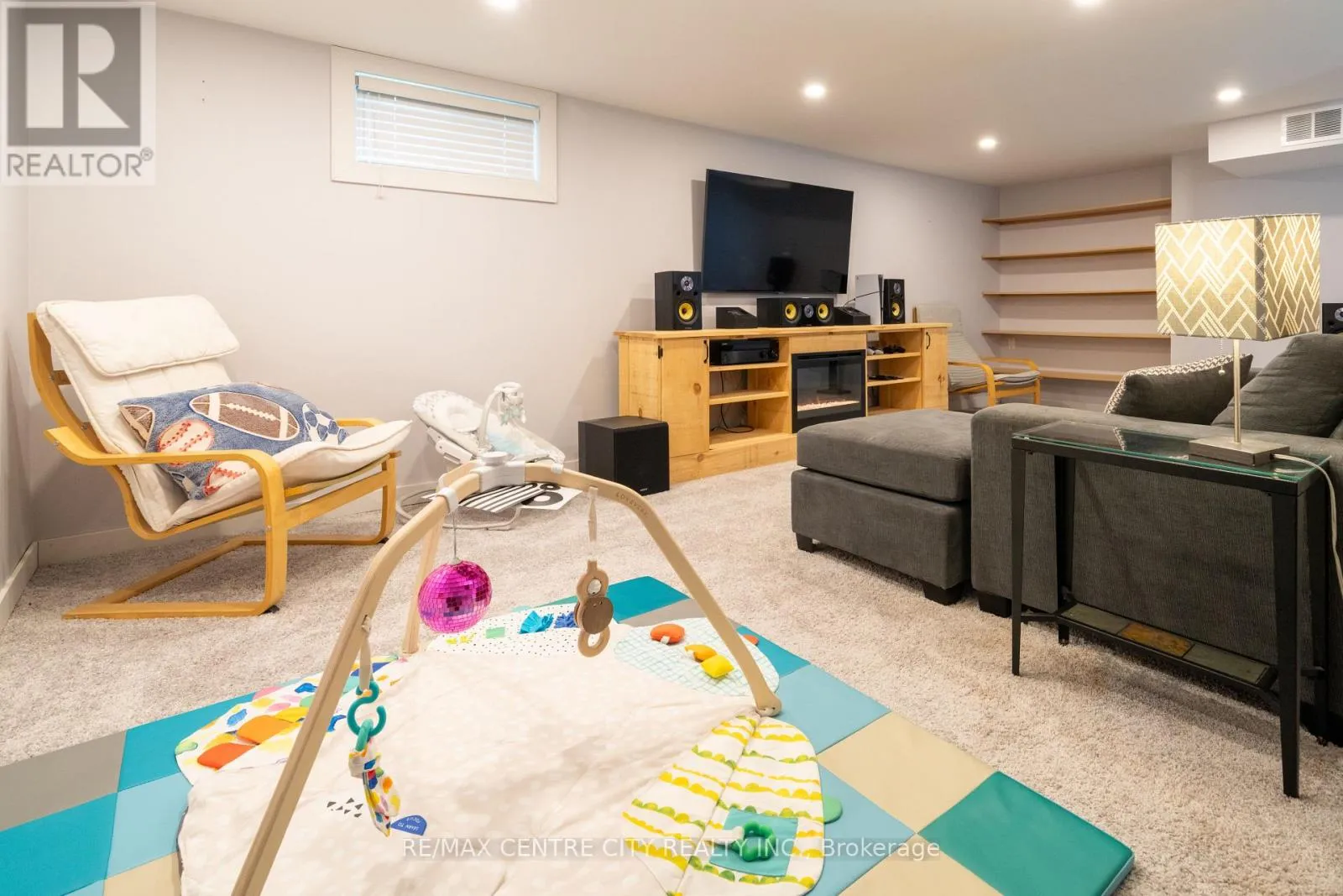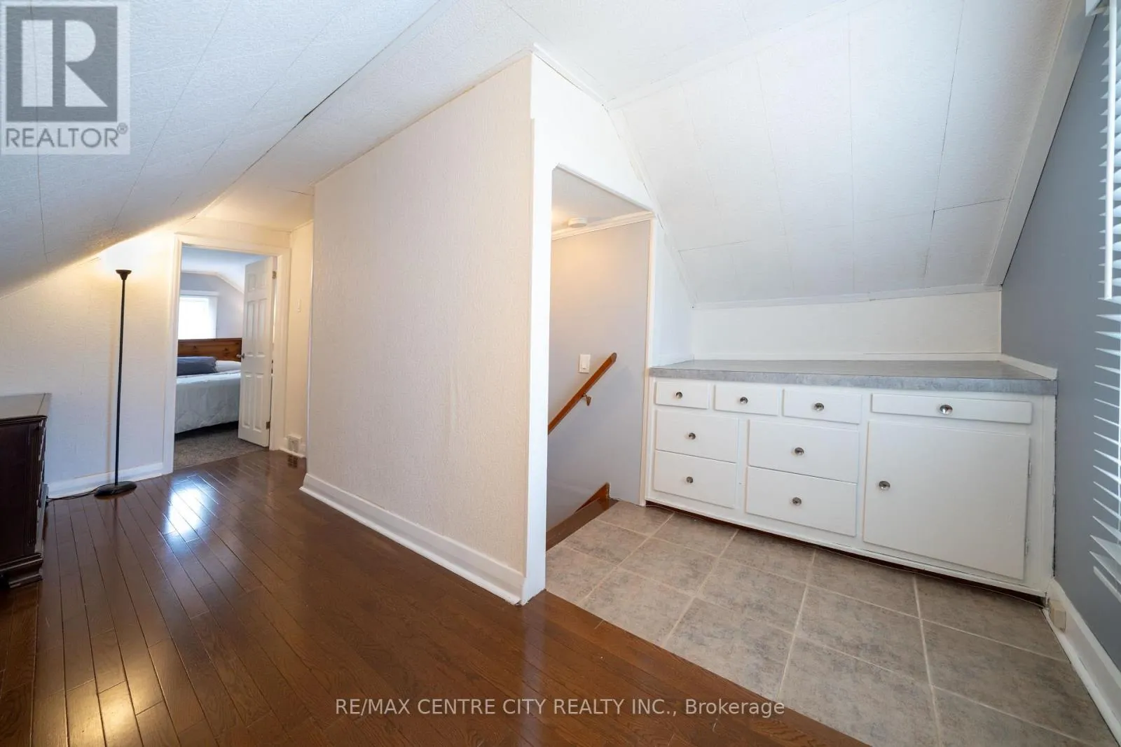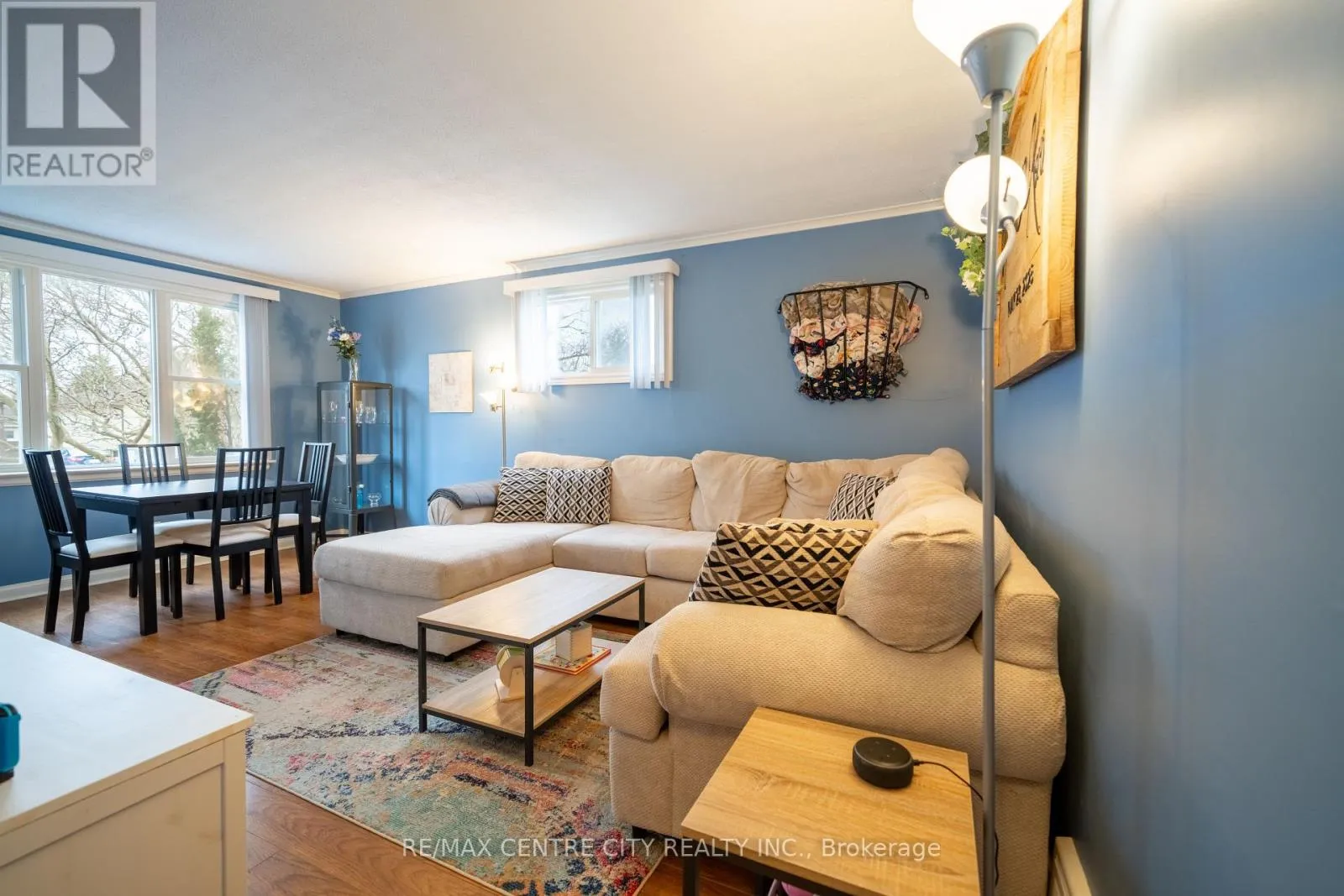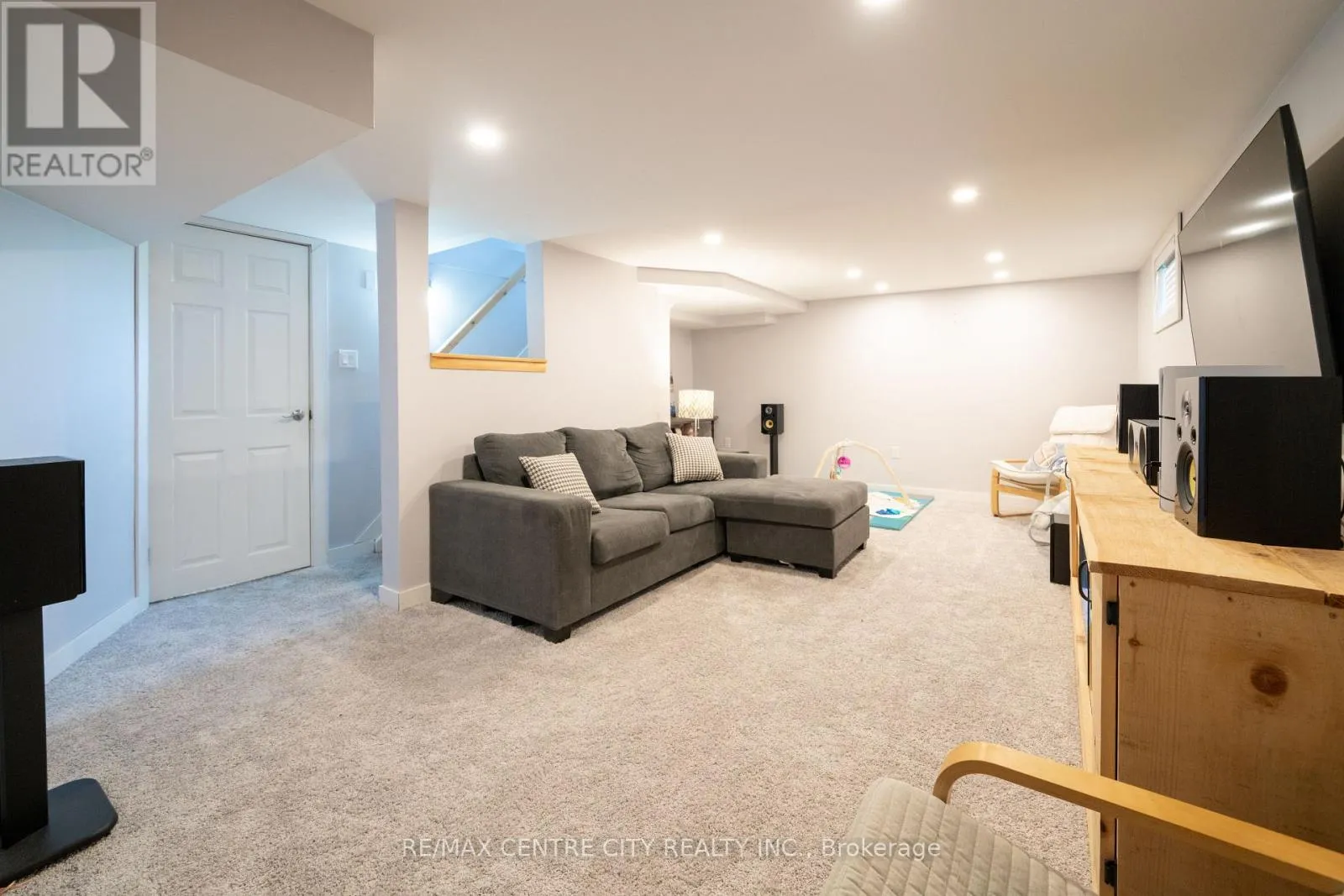 Cross Streets: OXFORD AND STRAND. ** Directions: FROM OXFORD ST. E TURN SOUTH ONTO STRAND, HOUSE IS ON RIGHT BEFORE PICCADILLY ST. Well-kept home on an oversized lot . Charming 1.5-storey brick home located in a quiet, family-friendly neighbourhood close to schools, parks, amenities, bus routes, and Fanshawe College. This move-in-ready property sits on a large 60 ft x 120 ft lot and features an updated kitchen with solid wood cabinets, a bright living room, two main-floor bedrooms, and a 4-piece bathroom with a jetted tub. The primary bedroom includes patio doors leading to a spacious 2-tier deck. The second floor offers an additional bedroom and a bonus area that can function as a primary suite or flexible living space. The recently finished lower level includes a separate entrance from the side of the house, family room, 2-piece bathroom, and laundry room. Outside, you'll find a large concrete driveway with ample parking for 6 vehicle , a fully fenced yard with wide gate access, and two garden sheds. Shingles were replaced in 2019. A solid home in a central location with plenty of potential. (id:27476)