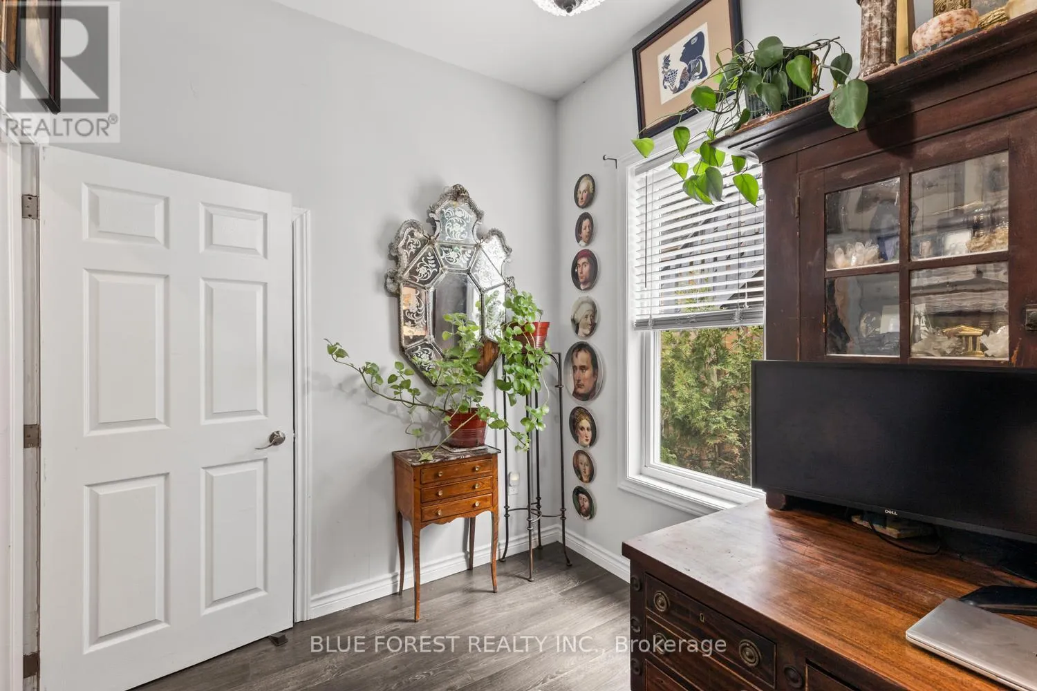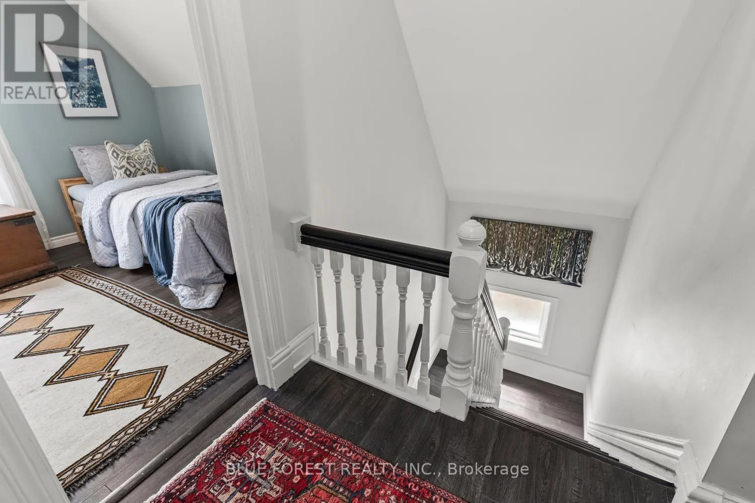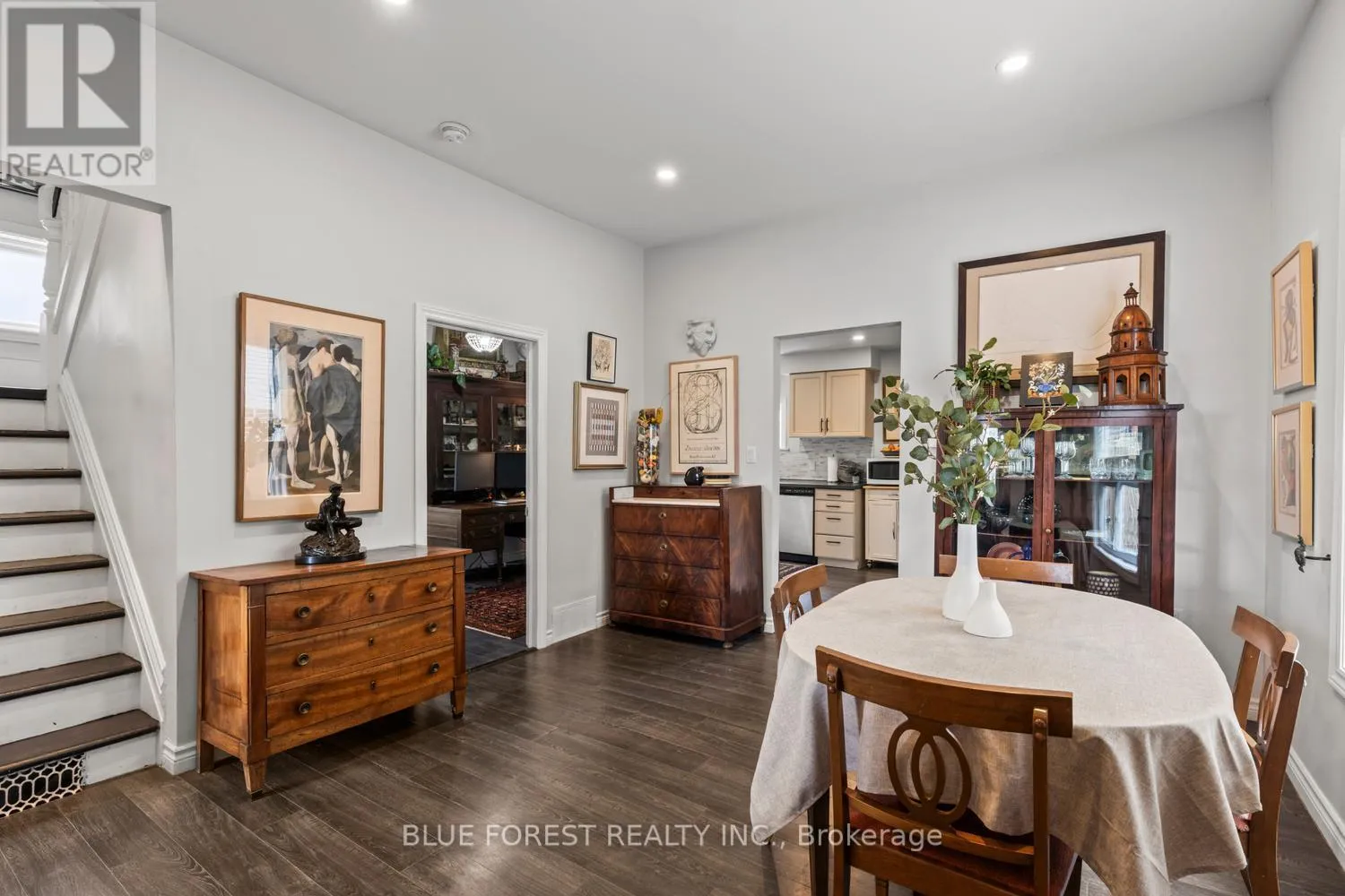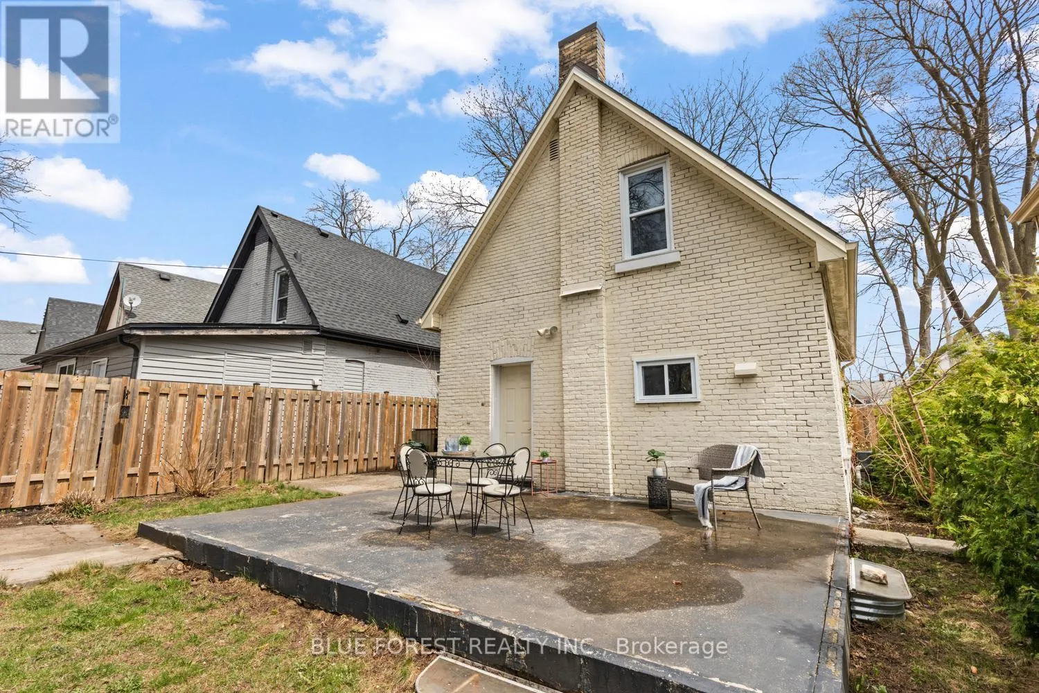 Cross Streets: Adelaide Street and Hamilton Road. ** Directions: Take Nelson St east from Adelaide St. Turn north onto Marmora St. House will be on the left. Welcome to this charming one-and-a-half-storey gem in the heart of the East End that perfectly blends historic character with modern reliability. The exterior immediately impresses with its classic brickwork and ornate wood details, welcoming you into the foyer featuring fresh new tiles and a dramatic pop of colour. The main floor offers a bright and cozy living room perfect for movie nights, a spacious dining room designed for entertaining, and a versatile bedroom that functions beautifully as a home office. At the rear of the home, the functional kitchen provides direct access to a fully fenced backyard. Nearby, the main-floor bathroom has been updated with new flooring to create a serene, spa-like vibe. The thoughtful layout continues upstairs, where you will find two generously sized bedrooms, both boasting rare walk-in closets, and a second full bathroom. For ultimate convenience, the laundry is located on the second floor, making chores a breeze. While the unfinished basement provides ample storage, the outdoor space offers even more opportunity. The backyard features a concrete block foundation where an enclosed room once stood; this sturdy base now serves as a great patio for entertaining but offers incredible potential to add additional year-round living space in the future. Completing this package are two private driveways and a location that is great for outdoor lovers. You are steps away from South Branch Park, scenic hiking trails along the Thames River, and the Thames Valley Parkway (TVP) for cycling. With trendy local restaurants, schools, and public transit just around the corner, this home offers the perfect balance of neighbourhood charm and urban convenience. (id:27476)
