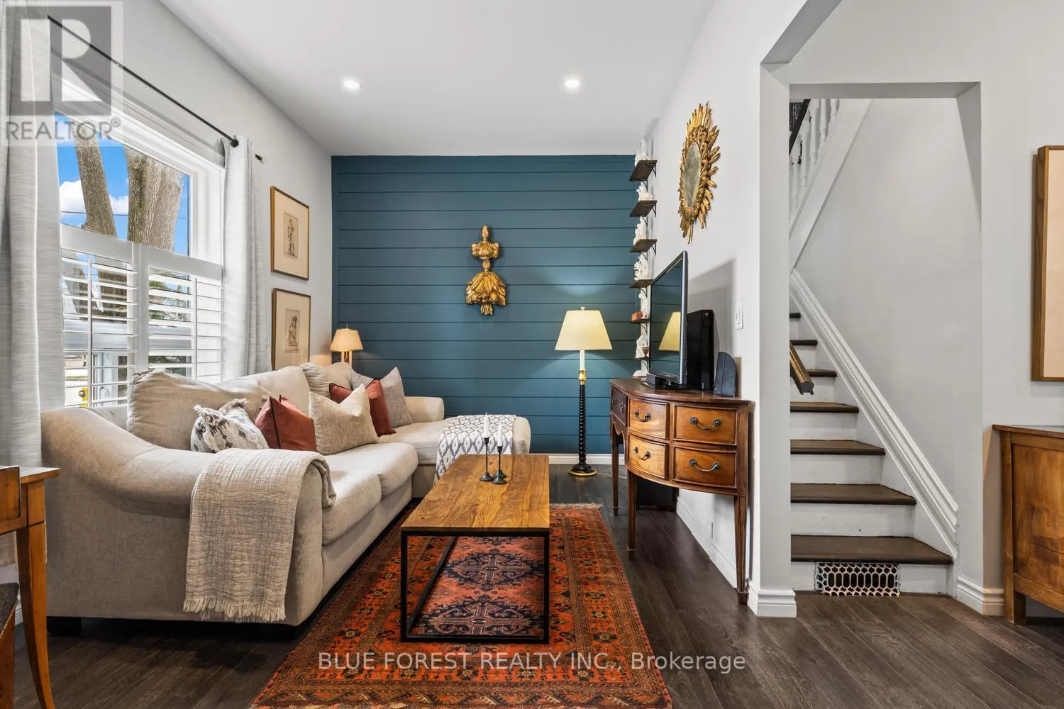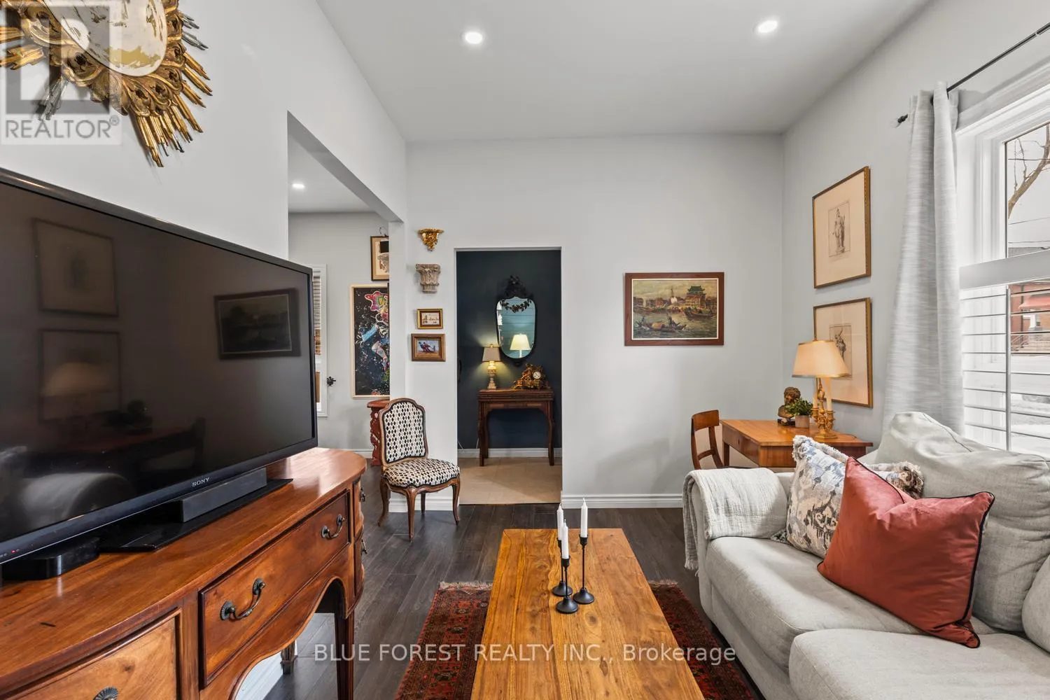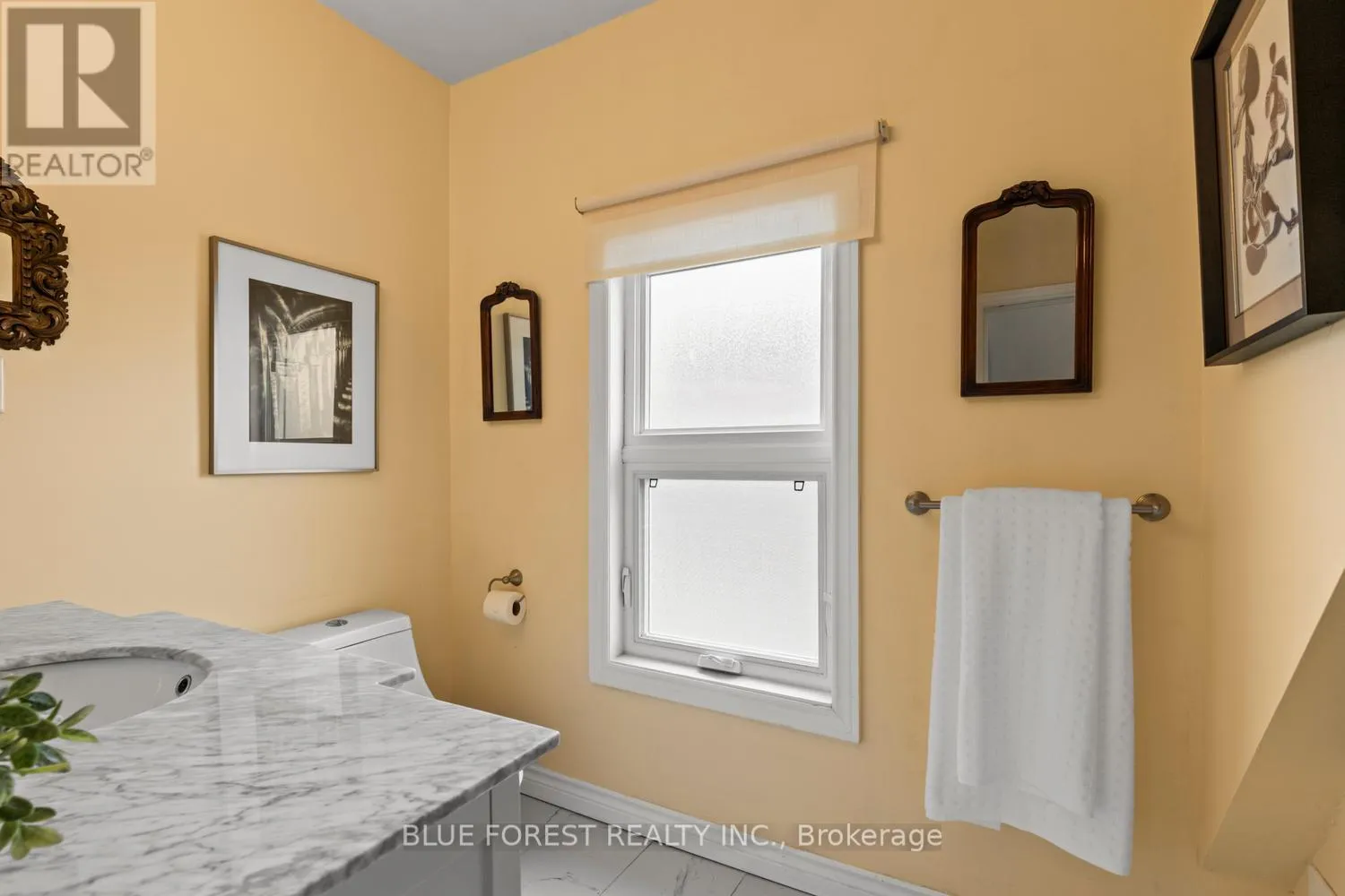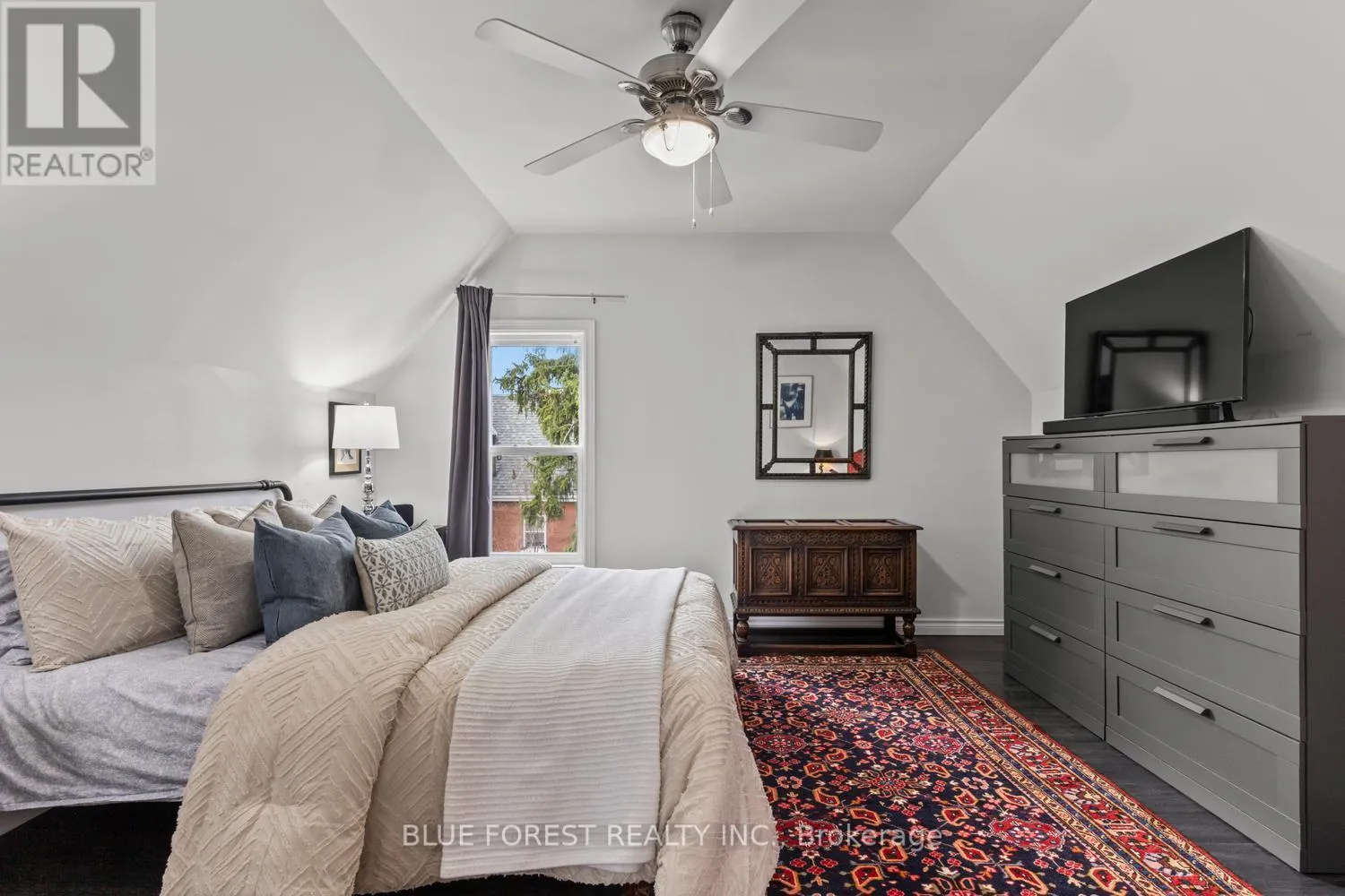 Cross Streets: Adelaide Street and Hamilton Road. ** Directions: Take Nelson St east from Adelaide St. Turn north onto Marmora St. House will be on the left. Welcome to this charming one-and-a-half-storey gem in the heart of the East End that perfectly blends historic character with modern reliability. The exterior immediately impresses with its classic brickwork and ornate wood details, welcoming you into the foyer featuring fresh new tiles and a dramatic pop of colour. The main floor offers a bright and cozy living room perfect for movie nights, a spacious dining room designed for entertaining, and a versatile bedroom that functions beautifully as a home office. At the rear of the home, the functional kitchen provides direct access to a fully fenced backyard. Nearby, the main-floor bathroom has been updated with new flooring to create a serene, spa-like vibe. The thoughtful layout continues upstairs, where you will find two generously sized bedrooms, both boasting rare walk-in closets, and a second full bathroom. For ultimate convenience, the laundry is located on the second floor, making chores a breeze. While the unfinished basement provides ample storage, the outdoor space offers even more opportunity. The backyard features a concrete block foundation where an enclosed room once stood; this sturdy base now serves as a great patio for entertaining but offers incredible potential to add additional year-round living space in the future. Completing this package are two private driveways and a location that is great for outdoor lovers. You are steps away from South Branch Park, scenic hiking trails along the Thames River, and the Thames Valley Parkway (TVP) for cycling. With trendy local restaurants, schools, and public transit just around the corner, this home offers the perfect balance of neighbourhood charm and urban convenience. (id:27476)
