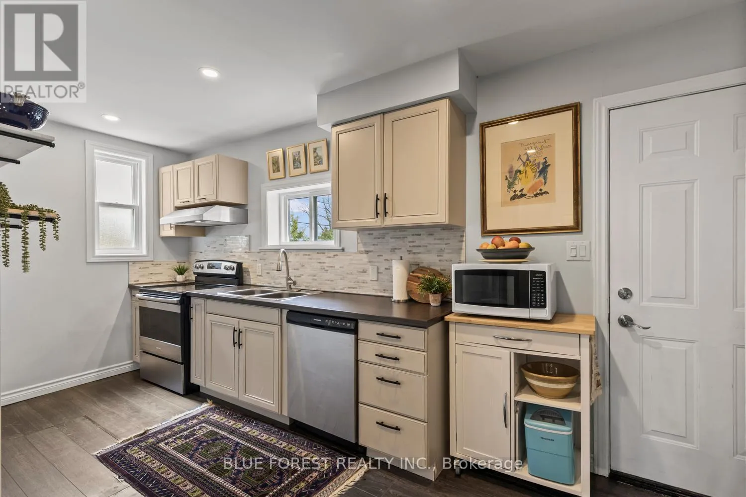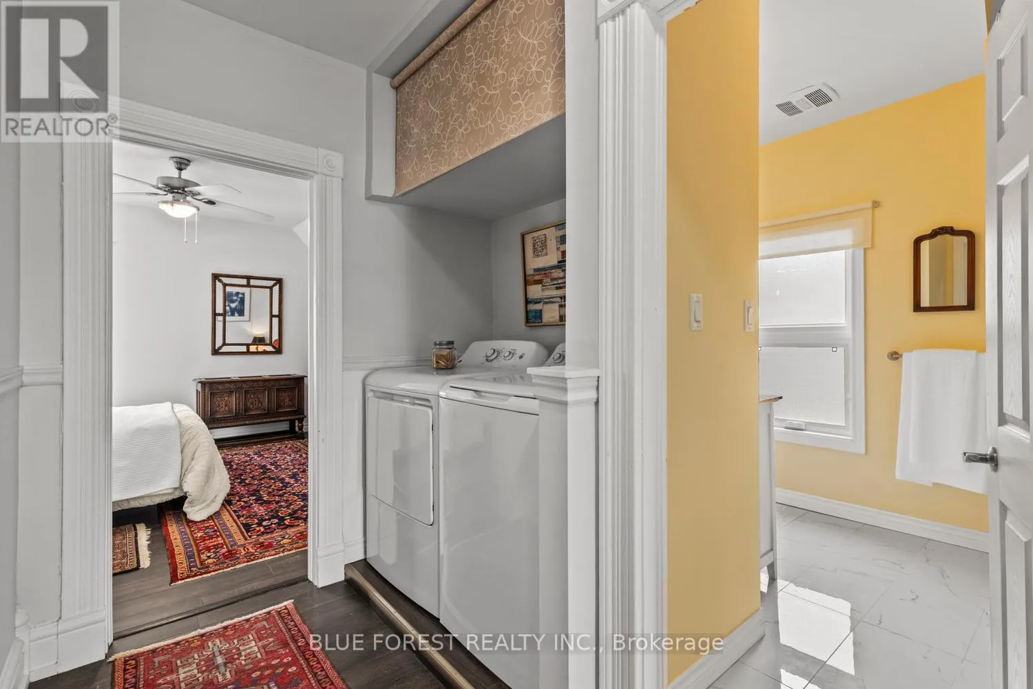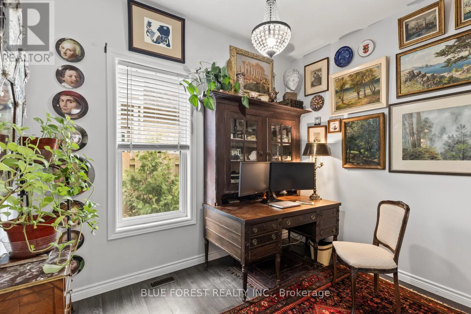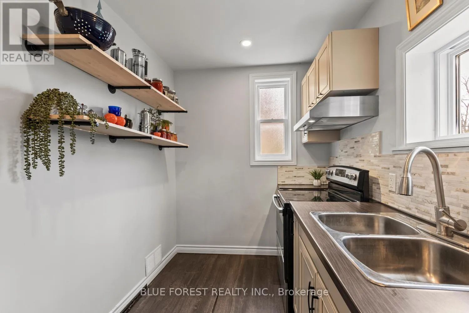 Cross Streets: Adelaide Street and Hamilton Road. ** Directions: Take Nelson St east from Adelaide St. Turn north onto Marmora St. House will be on the left. Welcome to this charming one-and-a-half-storey gem in the heart of the East End that perfectly blends historic character with modern reliability. The exterior immediately impresses with its classic brickwork and ornate wood details, welcoming you into the foyer featuring fresh new tiles and a dramatic pop of colour. The main floor offers a bright and cozy living room perfect for movie nights, a spacious dining room designed for entertaining, and a versatile bedroom that functions beautifully as a home office. At the rear of the home, the functional kitchen provides direct access to a fully fenced backyard. Nearby, the main-floor bathroom has been updated with new flooring to create a serene, spa-like vibe. The thoughtful layout continues upstairs, where you will find two generously sized bedrooms, both boasting rare walk-in closets, and a second full bathroom. For ultimate convenience, the laundry is located on the second floor, making chores a breeze. While the unfinished basement provides ample storage, the outdoor space offers even more opportunity. The backyard features a concrete block foundation where an enclosed room once stood; this sturdy base now serves as a great patio for entertaining but offers incredible potential to add additional year-round living space in the future. Completing this package are two private driveways and a location that is great for outdoor lovers. You are steps away from South Branch Park, scenic hiking trails along the Thames River, and the Thames Valley Parkway (TVP) for cycling. With trendy local restaurants, schools, and public transit just around the corner, this home offers the perfect balance of neighbourhood charm and urban convenience. (id:27476)