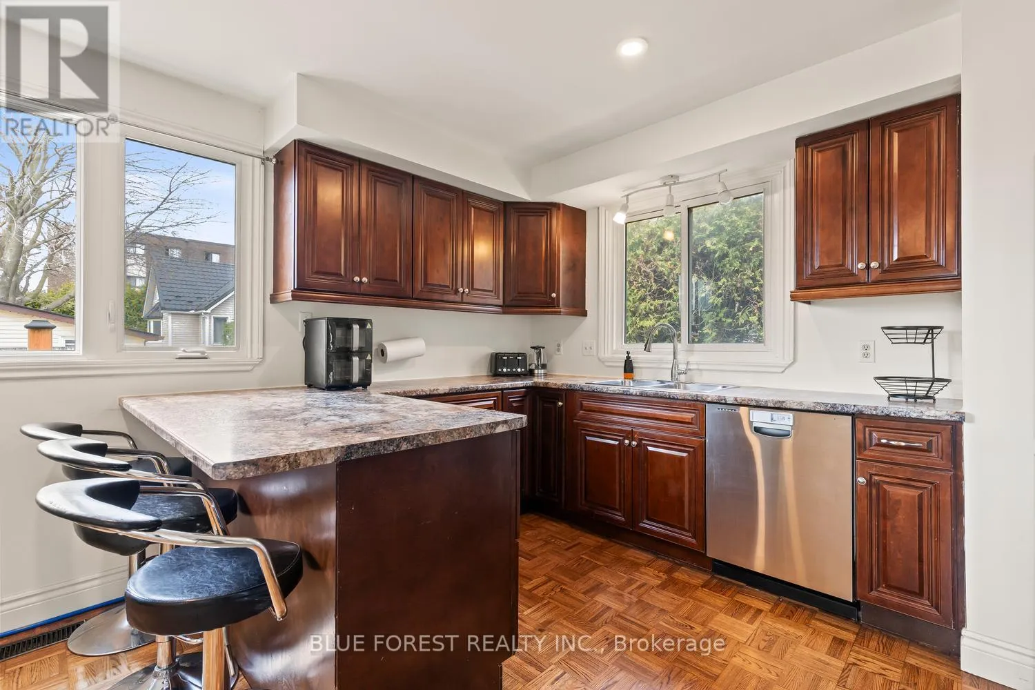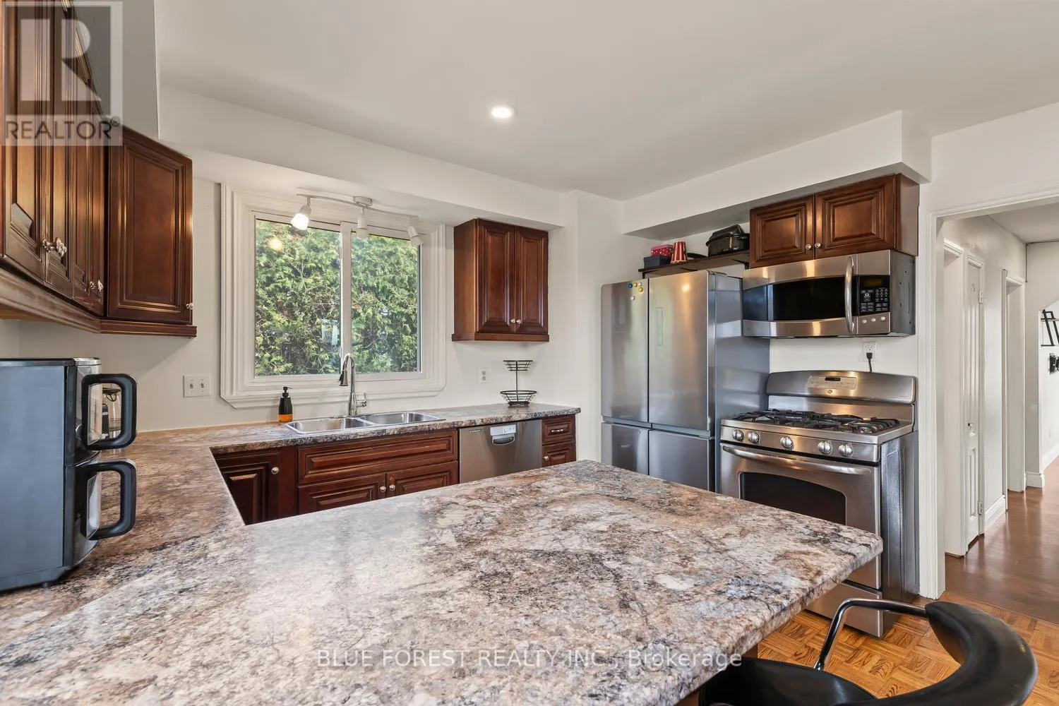 Cross Streets: Highbury Ave/Wilton Ave. ** Directions: Highbury Ave. to Wilton Ave, Drive West on Wilton Ave. Welcome to this beautifully updated, move-in ready home offering the perfect blend of charm, comfort, and functionality. From the moment you arrive, you'll be impressed by the inviting curb appeal, highlighted by a newly built front porch and portico (2022) that adds both character and style. Step inside to a bright and welcoming living room, filled with natural light from a large south-facing window and complemented by newer engineered hardwood flooring and a calm, modern aesthetic throughout. The main floor features two versatile bedrooms. The spacious, updated eat-in kitchen is designed for both everyday living and entertaining, offering ample cabinetry, generous counter space, and a comfortable dining area for family gatherings. Two fully renovated bathrooms (2018-2022) add a touch of luxury and convenience. Upstairs, you'll find two additional bedrooms with classic hardwood flooring, while the fully finished lower level expands your living space with a large family room featuring durable laminate flooring-perfect for movie nights or a kids' play area-along with a fifth bedroom complete with an egress window (2019). Step outside from the kitchen to your private backyard retreat, where a newer deck (2020) provides the perfect setting for outdoor entertaining under the shade of a mature tree. The fully fenced yard offers plenty of space for kids and pets to enjoy. For hobbyists or those in need of extra workspace, the impressive 22.4' x 19.4' detached workshop with hydro is a rare and valuable bonus. Additional updates include a newer furnace and central air (2017), roof and eaves (2017-2023), and windows (2017-2022), ensuring peace of mind for years to come. This is a fantastic opportunity to own a thoughtfully updated home in a family-friendly setting-don't miss it! (Some photos are virtually staged) (id:27476)