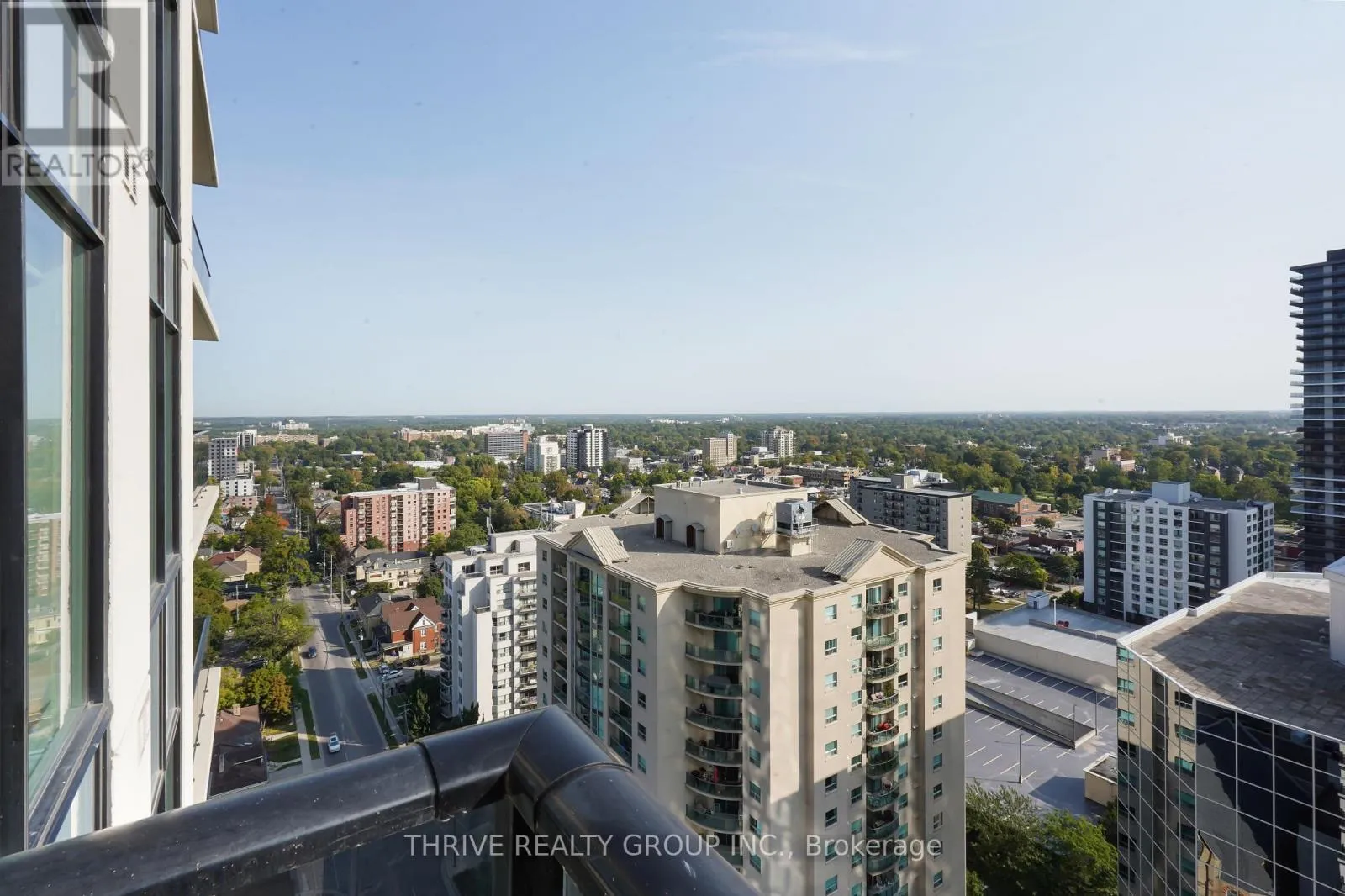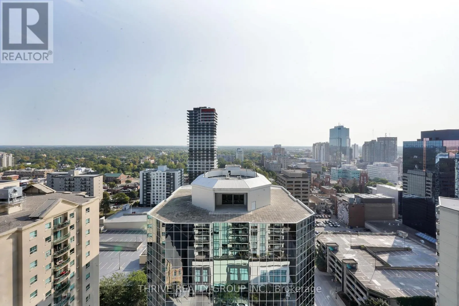 Cross Streets: TALBOT STREET & DUFFERIN AVE. ** Directions: NORTH WEST CORNER OF TALBOT STREET & DUFFERIN AVE. Welcome to Azure! Here is the rare opportunity to rent in one of Londons newest luxury high-rise. This building and unit is sure to impress. The Flatiron 2N floor plan offers 1,305 SQ/FT with two bedrooms, and two baths with exceptional finishes overlooking downtown from the 21st floor. Heating, cooling, water, hot water included in the lease. Tenant responsible for personal hydro, and cable/fiber internet. 1 designated underground parking space included and amenities include 29th floor patio with gas fire pit, bbq's lounge, patio furniture, picnic area, professional exercise room, pool table, golf simulator, kitchen and wet bars, library and guest suite. Don't miss this one! (id:27476)