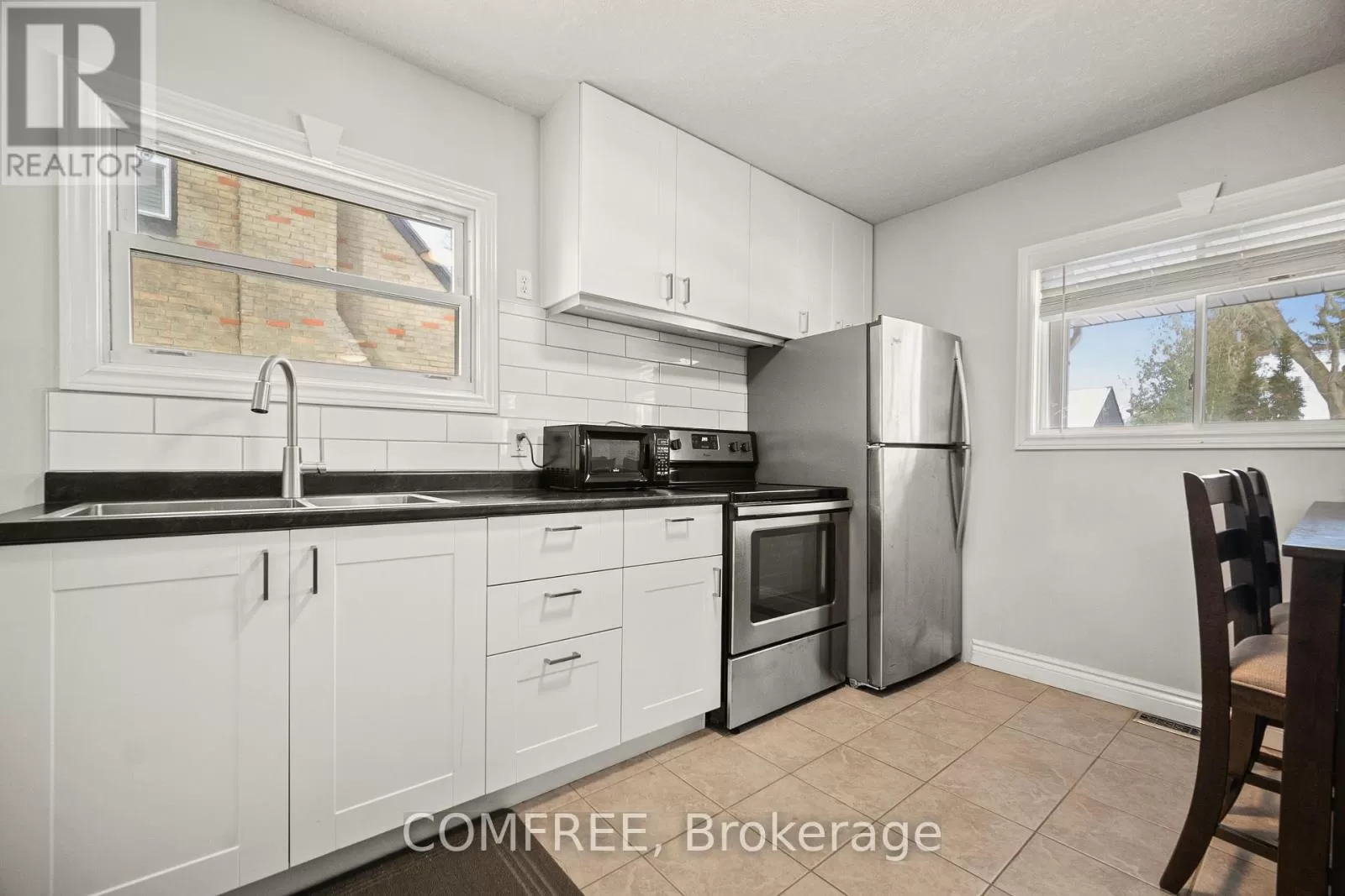 Cross Streets: Paul St & Rathowen St. ** Directions: See map. This Charming 1 1/2 story duplex located in the heart of Blackfriars. Ideal for a starter home with income or investors for expansion or rented as a turn key. Dbl garage, A/C, 4 parking spots with a front side spot. Featuring a renovated main floor; one large master bedroom that has a wall to wall closet, Open concept kit/living anda spacious full 4-pc bath. A cute front porch for those beautiful summer days. The Upper has been completely refinished to include a full studio unit. It is perfect for a young professional or graduate student. Modern open concept and full of light with glorious windows. Separate entrance at back where the sheltered deck and yard can be private orshared. Full basement that is partially finished; a separated laundry room for shared access and a private locked area for storage/ home gym with mirrors! The neighbourhood is walking distance to numerous paths, parks and attractions such as Harris Park, Budweiser Gardens, and all the fantastic amenities Downtown has to offer. (id:27476)
