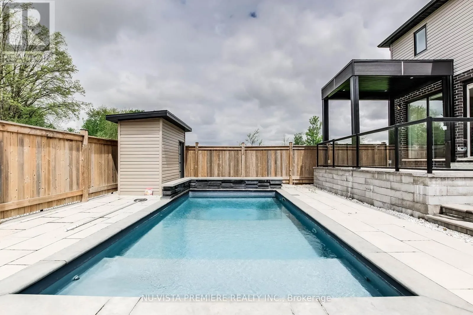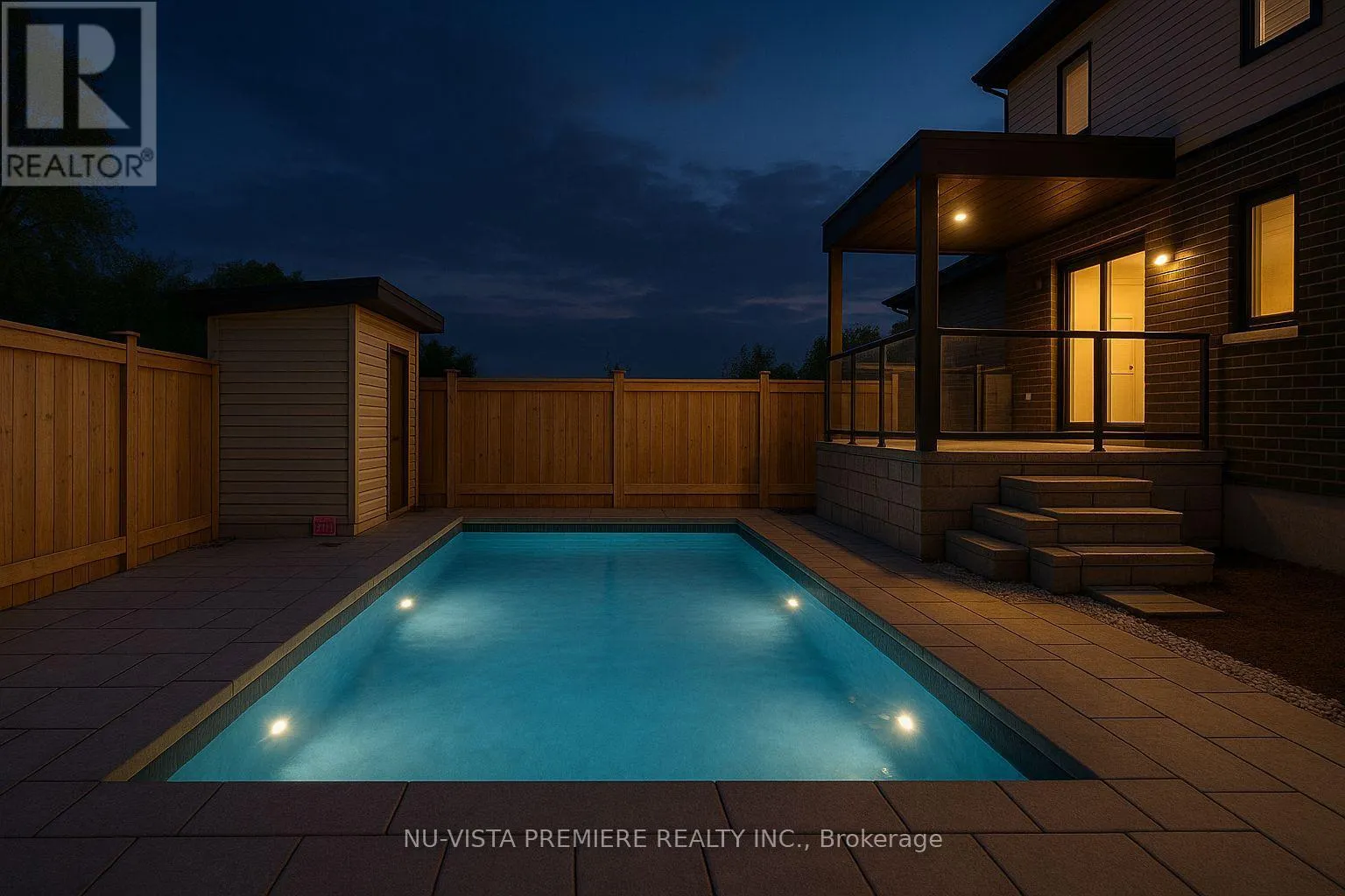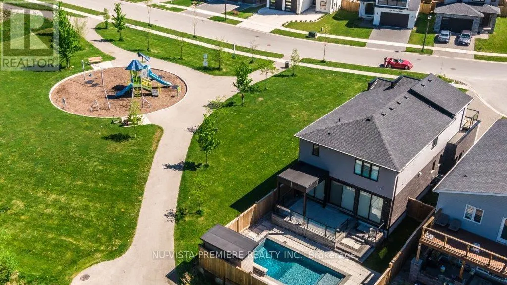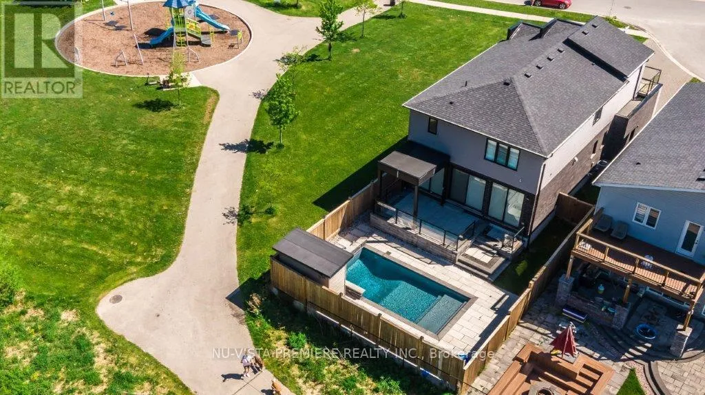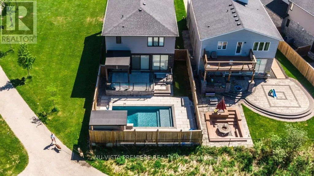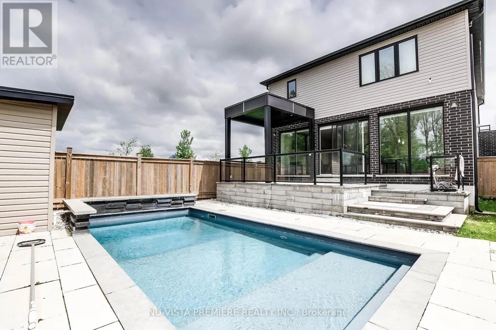 Cross Streets: TOKALA TR. ** Directions: From Fanshawe Prk. Rd.Head North on Wateroak Dr. Welcome to this beautifully appointed 4-bedroom home nestled in a prestigious North London neighbourhood. Step through the inviting front entrance into a bright and spacious foyer, setting the tone for the open-concept main floor designed with both comfort and sophistication in mind.The heart of the home features 9' ceilings and expansive 8' windows in the great room, flooding the space with natural light. A cozy fireplace anchors the living area, flowing seamlessly into a stylish dining space and a gourmet kitchen. The kitchen is a chefs dreamshowcasing quartz counter tops, high-end finishes, modern appliances, and generous counter space for meal prep and entertaining.Step outside to your private backyard oasis, completely redesigned in 2023 with over $200,000 in backyard & professional landscaping. This outdoor retreat is fully fenced and features an in-ground pool with a cascading waterfall, ambient lighting, elegant stonework, and lush greenery. The back patio highlights exceptional craftsmanship and offers breathtaking views of nearby green space and a tranquil pond. Scenic walking trails are just steps from your door.Upstairs, the second floor offers four generously sized bedrooms and two full bathrooms. The primary suite is a true sanctuary, complete with a walk-in closet and a spa-inspired ensuite featuring a sleek glass shower and luxurious in-floor heating. A charming balcony overlooks the quiet, tree-lined streetperfect for morning coffee or an evening unwind.Additional features include:Hardwood floors in the great room, Ceramic tile flooring in all wet areas, Air conditioning, Paver stone driveway, Quartz counters in the kitchen and powder room, Rough-in for a future bathroom in the basement.Comprehensive security system with motion cameras and fire alarm connectivity (live monitoring subscription required)This home effortlessly combines modern elegance with everyday functionality. Dont miss your chance to own this exceptional property. (id:27476)