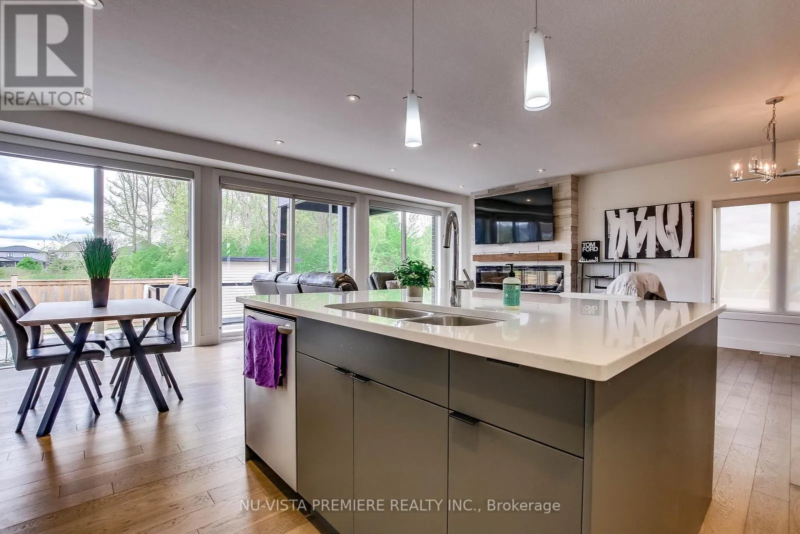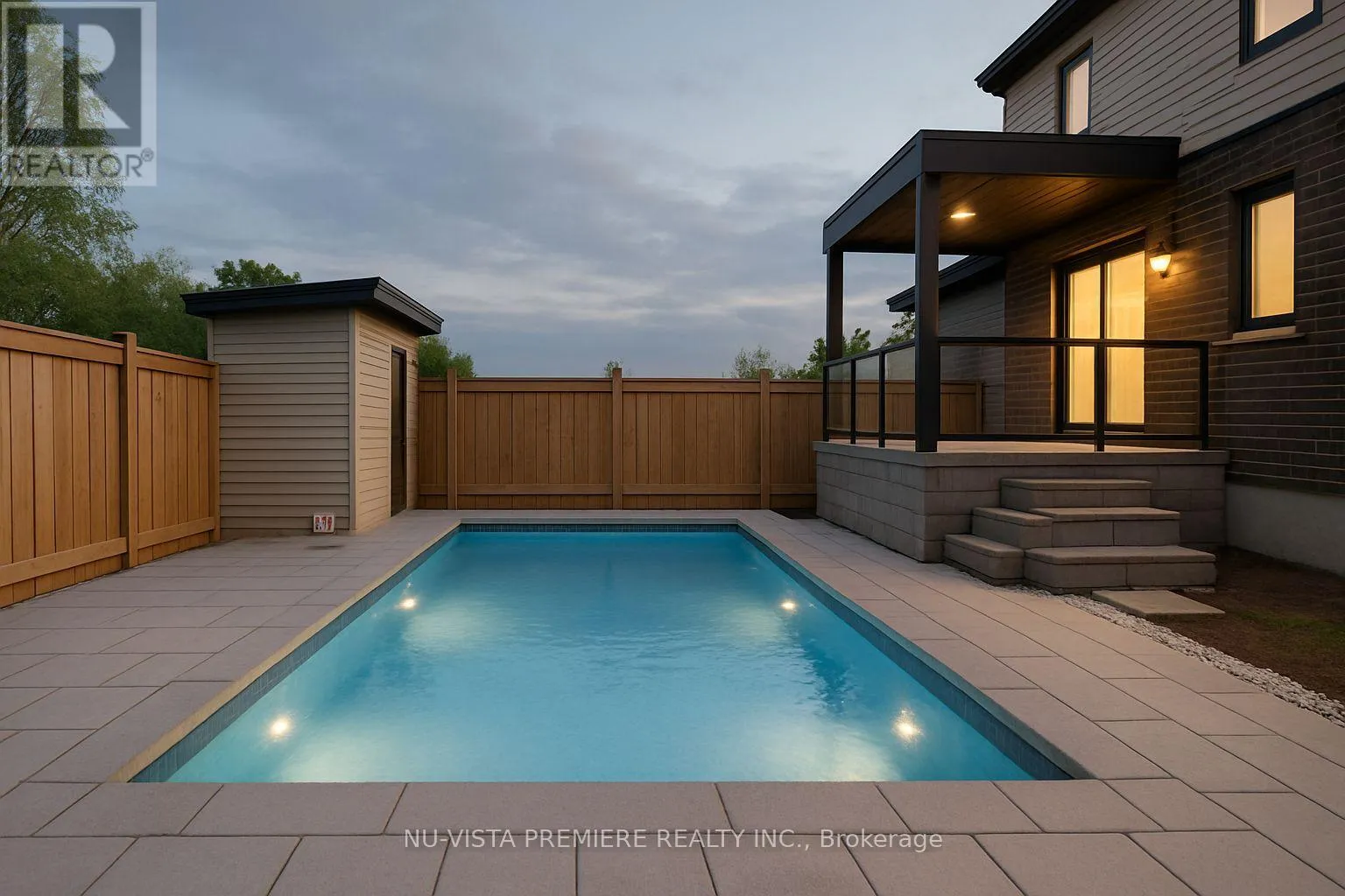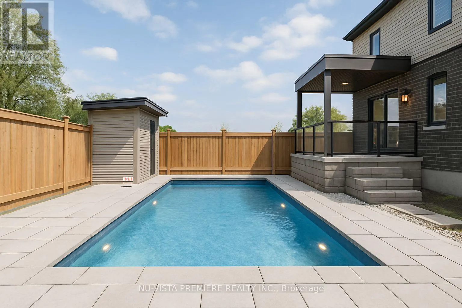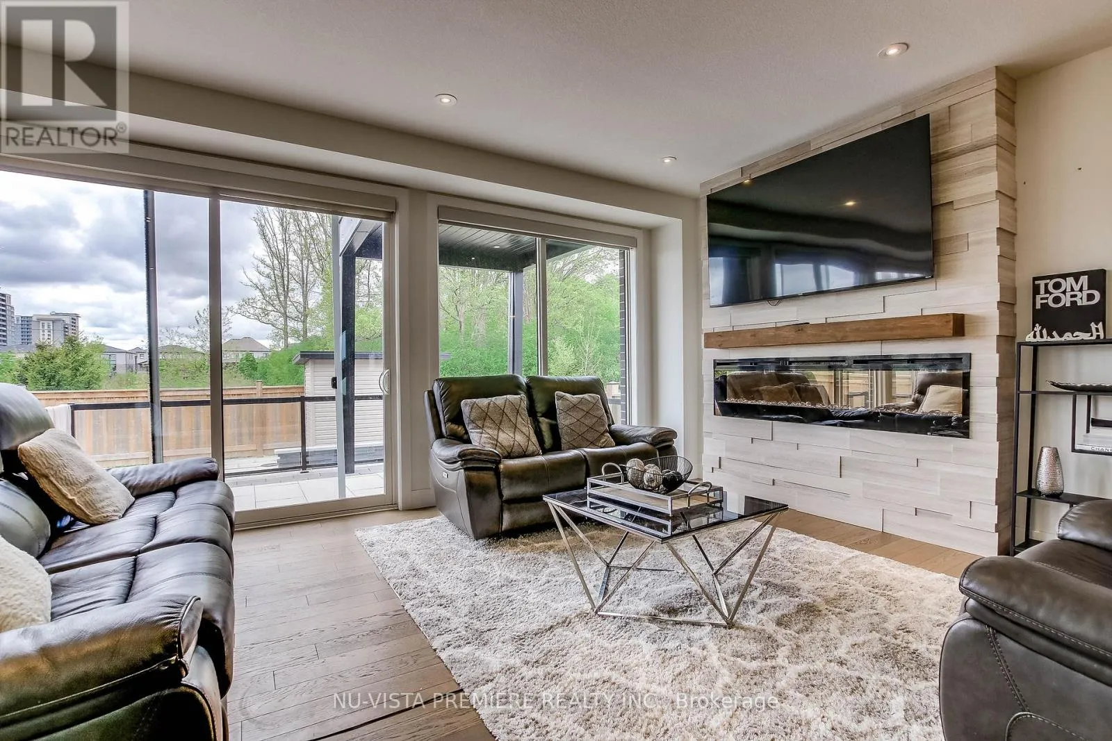 Cross Streets: TOKALA TR. ** Directions: From Fanshawe Prk. Rd.Head North on Wateroak Dr. Welcome to this beautifully appointed 4-bedroom home nestled in a prestigious North London neighbourhood. Step through the inviting front entrance into a bright and spacious foyer, setting the tone for the open-concept main floor designed with both comfort and sophistication in mind.The heart of the home features 9' ceilings and expansive 8' windows in the great room, flooding the space with natural light. A cozy fireplace anchors the living area, flowing seamlessly into a stylish dining space and a gourmet kitchen. The kitchen is a chefs dreamshowcasing quartz counter tops, high-end finishes, modern appliances, and generous counter space for meal prep and entertaining.Step outside to your private backyard oasis, completely redesigned in 2023 with over $200,000 in backyard & professional landscaping. This outdoor retreat is fully fenced and features an in-ground pool with a cascading waterfall, ambient lighting, elegant stonework, and lush greenery. The back patio highlights exceptional craftsmanship and offers breathtaking views of nearby green space and a tranquil pond. Scenic walking trails are just steps from your door.Upstairs, the second floor offers four generously sized bedrooms and two full bathrooms. The primary suite is a true sanctuary, complete with a walk-in closet and a spa-inspired ensuite featuring a sleek glass shower and luxurious in-floor heating. A charming balcony overlooks the quiet, tree-lined streetperfect for morning coffee or an evening unwind.Additional features include:Hardwood floors in the great room, Ceramic tile flooring in all wet areas, Air conditioning, Paver stone driveway, Quartz counters in the kitchen and powder room, Rough-in for a future bathroom in the basement.Comprehensive security system with motion cameras and fire alarm connectivity (live monitoring subscription required)This home effortlessly combines modern elegance with everyday functionality. Dont miss your chance to own this exceptional property. (id:27476)