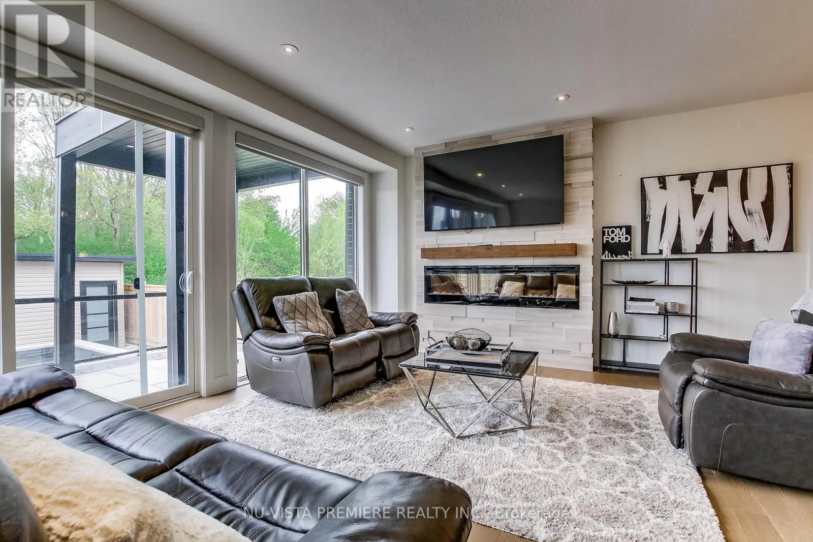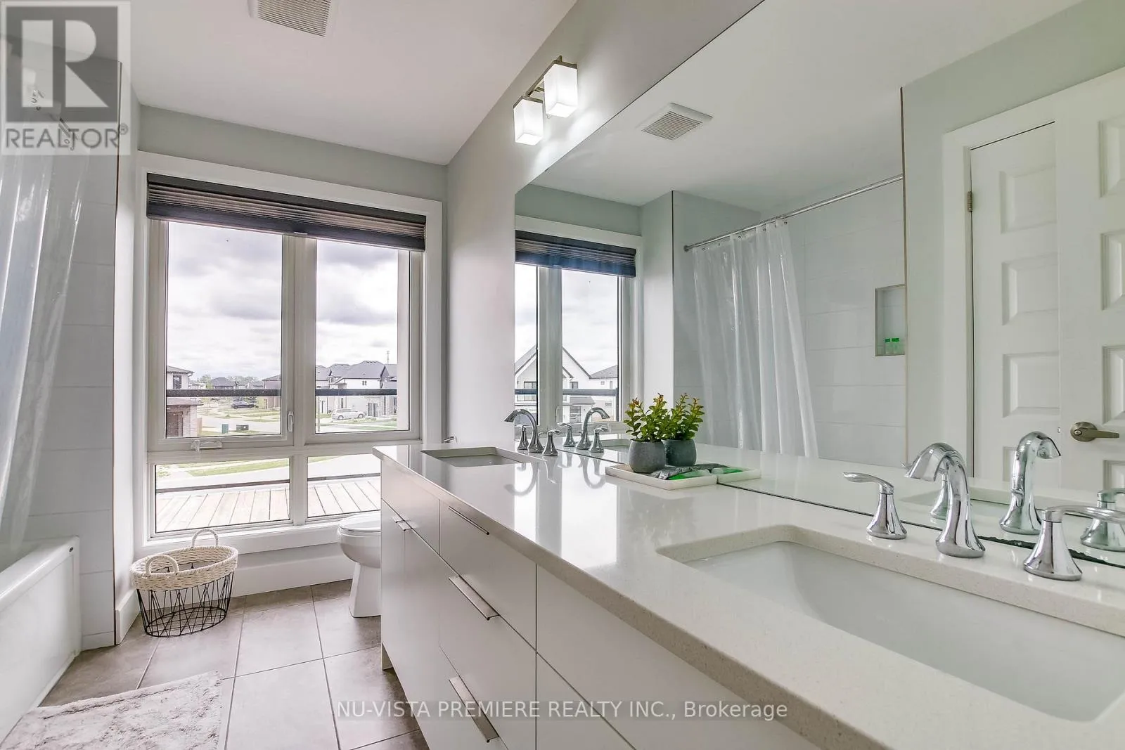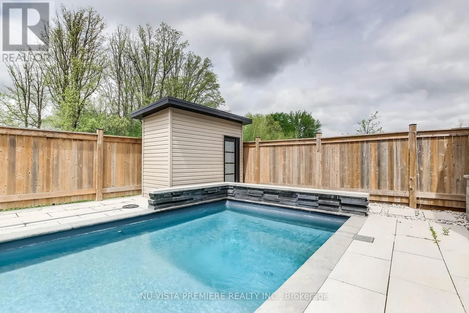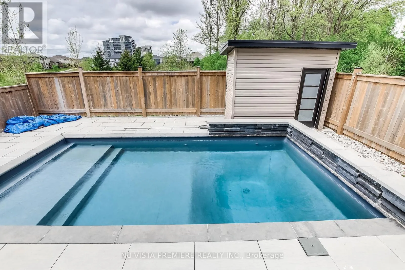 Cross Streets: TOKALA TR. ** Directions: From Fanshawe Prk. Rd.Head North on Wateroak Dr. Welcome to this beautifully appointed 4-bedroom home nestled in a prestigious North London neighbourhood. Step through the inviting front entrance into a bright and spacious foyer, setting the tone for the open-concept main floor designed with both comfort and sophistication in mind.The heart of the home features 9' ceilings and expansive 8' windows in the great room, flooding the space with natural light. A cozy fireplace anchors the living area, flowing seamlessly into a stylish dining space and a gourmet kitchen. The kitchen is a chefs dreamshowcasing quartz counter tops, high-end finishes, modern appliances, and generous counter space for meal prep and entertaining.Step outside to your private backyard oasis, completely redesigned in 2023 with over $200,000 in backyard & professional landscaping. This outdoor retreat is fully fenced and features an in-ground pool with a cascading waterfall, ambient lighting, elegant stonework, and lush greenery. The back patio highlights exceptional craftsmanship and offers breathtaking views of nearby green space and a tranquil pond. Scenic walking trails are just steps from your door.Upstairs, the second floor offers four generously sized bedrooms and two full bathrooms. The primary suite is a true sanctuary, complete with a walk-in closet and a spa-inspired ensuite featuring a sleek glass shower and luxurious in-floor heating. A charming balcony overlooks the quiet, tree-lined streetperfect for morning coffee or an evening unwind.Additional features include:Hardwood floors in the great room, Ceramic tile flooring in all wet areas, Air conditioning, Paver stone driveway, Quartz counters in the kitchen and powder room, Rough-in for a future bathroom in the basement.Comprehensive security system with motion cameras and fire alarm connectivity (live monitoring subscription required)This home effortlessly combines modern elegance with everyday functionality. Dont miss your chance to own this exceptional property. (id:27476)