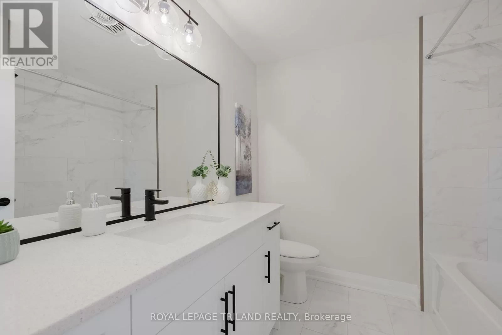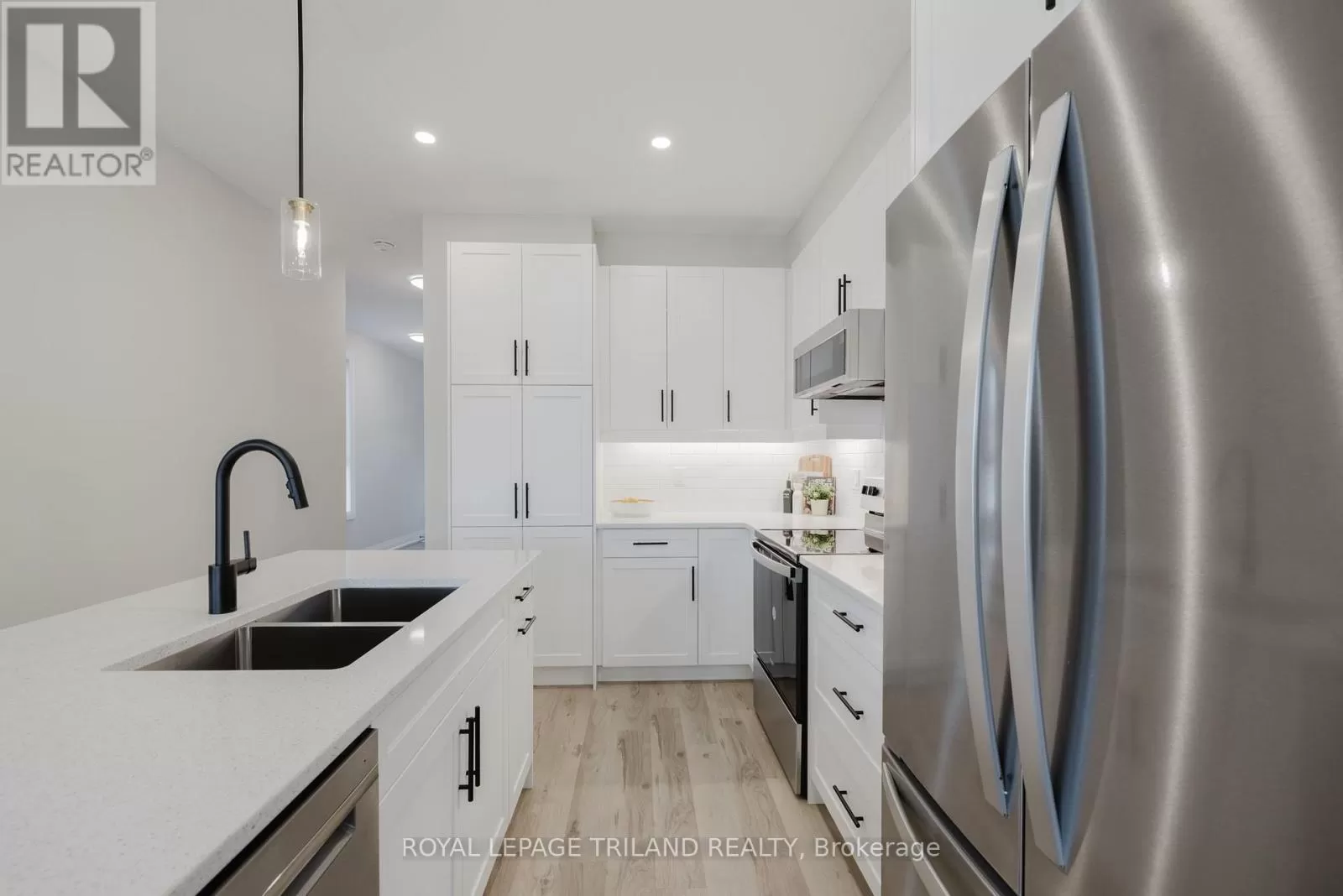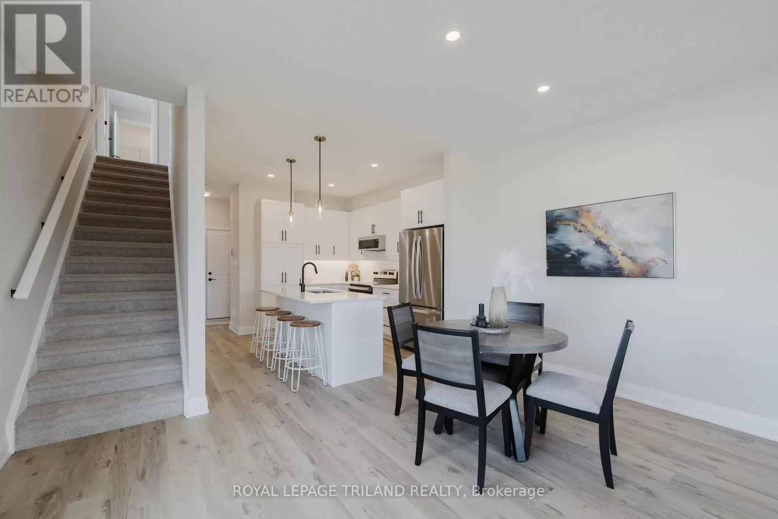 Cross Streets: Caltalpa Square. ** Directions: Dalmagarry Rd & Caltalpa Sq. MODEL HOME NOW AVAILABLE FOR VIEWING! Werrington Homes is excited to announce the launch of their newest project The North Woods in the desirable Hyde Park community of Northwest London. The project consists of 45 two-storey contemporary townhomes priced from $589,900. With the modern family & purchaser in mind, the builder has created 3 thoughtfully designed floorplans. The end units known as "The White Oak", priced from $639,900 (or $649,900 for an enhanced end unit) offer 1686 sq ft above grade, 3 bedrooms, 2.5 bathrooms & a single car garage. The interior units known as "The Black Cedar" offers 1628 sq ft above grade with 2 bed ($589,900) or 3 bed ($599,900) configurations, 2.5 bathrooms & a single car garage. The basements have the option of being finished by the builder to include an additional BEDROOM, REC ROOM & FULL BATH! As standard, each home will be built with brick, hardboard and vinyl exteriors, 9 ft ceilings on the main, luxury vinyl plank flooring, quartz counters, second floor laundry, paver stone drive and walkways, ample pot lights, tremendous storage space & a 4-piece master ensuite complete with tile & glass shower & double sinks! The North Woods location is second to none with so many amenities all within walking distance! Great restaurants, smart centres, walking trails, mins from Western University & directly on transit routes! Low monthly fee ($100 approx.) to cover common elements of the development (green space, snow removal on the private road, etc). This listing represents an Enhanced end unit 3 bedroom plan "The White Oak". *some images may show optional upgraded features in the model home* BONUS!! 6 piece Whirlpool appliance package included with each purchase!! (id:27476)