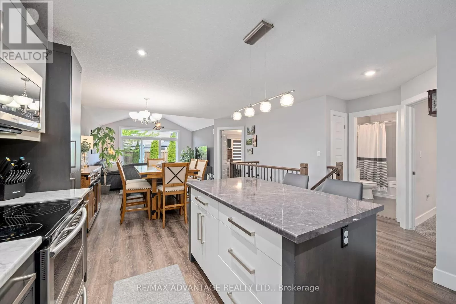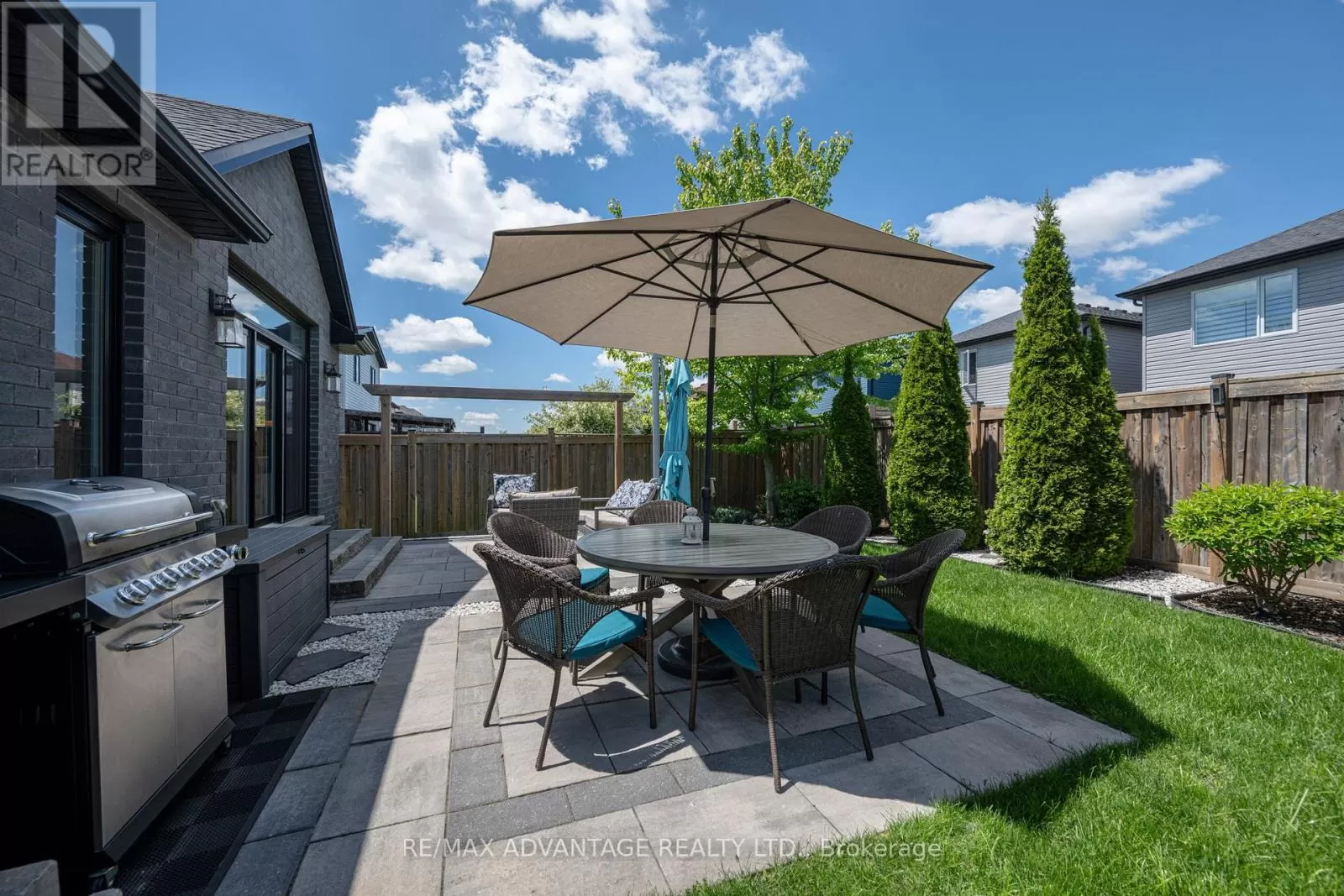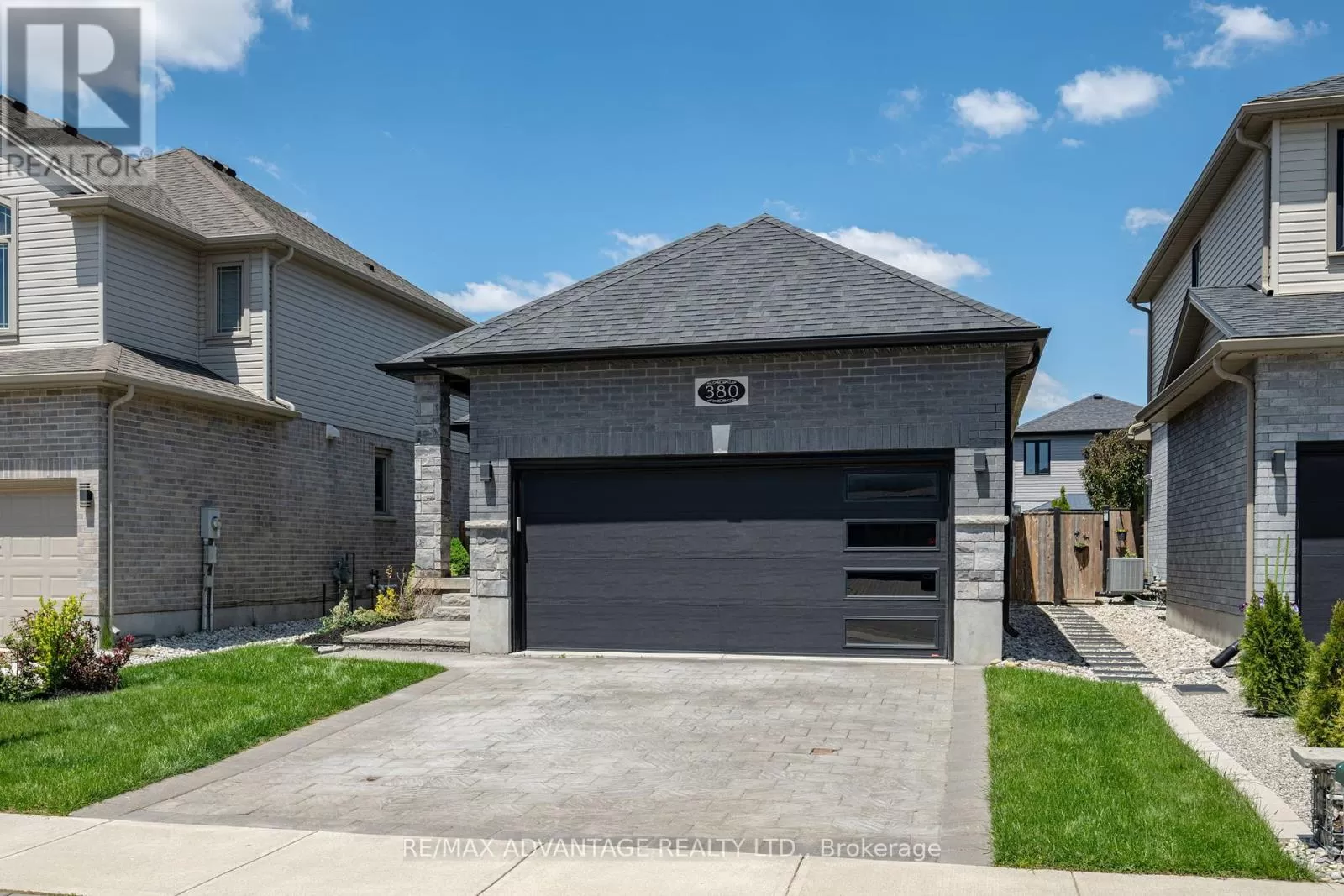 Cross Streets: Blackacres Blv/Tansbury St. ** Directions: Blackacres Blvd / Tribalwood St. Looking for a fabulous single-story home in North West London? 380 Tansbury St is here to impress. Convenience describes all. Built by Rockmount Homes, A bungalow, 2184 Sf finished area, with brick and stone exterior, Double car garage, 5 (2+3) Bedroom home with 3 full bathrooms, has lots to offer. This features a perfect size patio with paver stones, fire pit, full fence backyard, great landscaping for a perfect outdoor living. The spacious, open-concept layout is ideal for both empty nesters and families. High ceilings throughout the house and a cathedral ceiling in the living room, LED lights, central VAC including auto dust pan in kitchen, stair handrail in black iron and wood, Built in cables ready to hook up a sound system, and painted in neutral colors are only some of the details that make this a great place to stay. The inviting main floor space is perfect for entertaining and opens to the dining room, the kitchen, living room with the extended patio doors that bring lots of natural light and gorgeous views of the outdoors. The kitchen is the heart of the house, boasts crisp white cabinetry and some modern combinations with grey, a central island, nice backsplash, S.S. appliances, and a garburator. The primary bedroom features a 4 pc ensuite and walk-in closet, while the second bedroom is versatile enough for guests, a home office, and is served by the main bathroom. The lower level is equally impressive with a family room, laundry, 3 large bedrooms that should have multifunctional services with large closets, perfect for teens or grandchildren, exercise, hobby, etc. A beautifully large 4 pc bathroom completes this space. This home is within walking distance to a grocery store, Walmart SuperStore, Rona+, pharmacy, coffee shops, Medical Center, restaurants, and is conveniently located near several golf clubs, University Hospital, Western, major shopping centre. (id:27476)