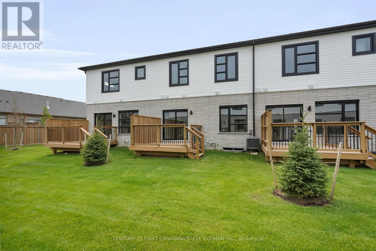 Located just South of Sunningdale Rd between Wonderland and Hyde Park. South on Fair Oaks BLVD. Model Homes located at 2362 and 2366 Fair Oak Blvd. Excited to now show you photos of the pre-finished unit 47! Fox Crossing by Auburn Homes is their newest, Modern Two Storey Town House Condo site. "Designed for your Life". Open concept main floor with modern finishes that include:Solid surface flooring on the main floor. Gourmet Kitchen features premium Cardinal Fine Cabinetry with soft close doors & drawers, floating shelves, under and over cabinet lighting. Lots of counter space plus a breakfast bar island all with quartz counter tops. Dining room & great room, are awash with natural light. Oak railings with Black iron spindles, & plush carpet lead you upstairs. Convenient laundry on this 2nd floor (with floor drain). Primary bedroom will be your private escape: ensuite walk-in shower with marble base, tiled surround and a glass door, & walk-in closet. There are two other bedrooms on this level, plus 4piece bath with tiled tub surround. Outside: modern exterior black windows and doors, single car garage, insulated door, stone driveway pavers, professionally landscaped, covered front porch. Plus, you will be able to enjoy your own private 10 ft. x10 ft. deck off the great room. Battery back-up on the sump pump included. Never water (underground sprinkler system), cut the grass or shovel snow again! Easy living with an extra sense of community. The amazing photos and video are of this actual unit (47). New park located across the street from the site entrance & new elementary school down the road. Unit 47 is a Cornell 2 interior layout. Model homes located at 2366 Fair Oaks Blvd. OPEN SAT AND SUN 2-4. (id:27476)