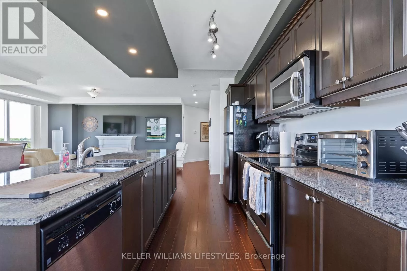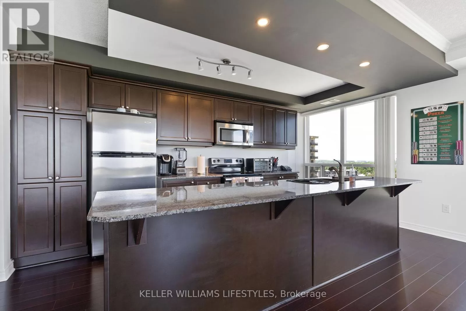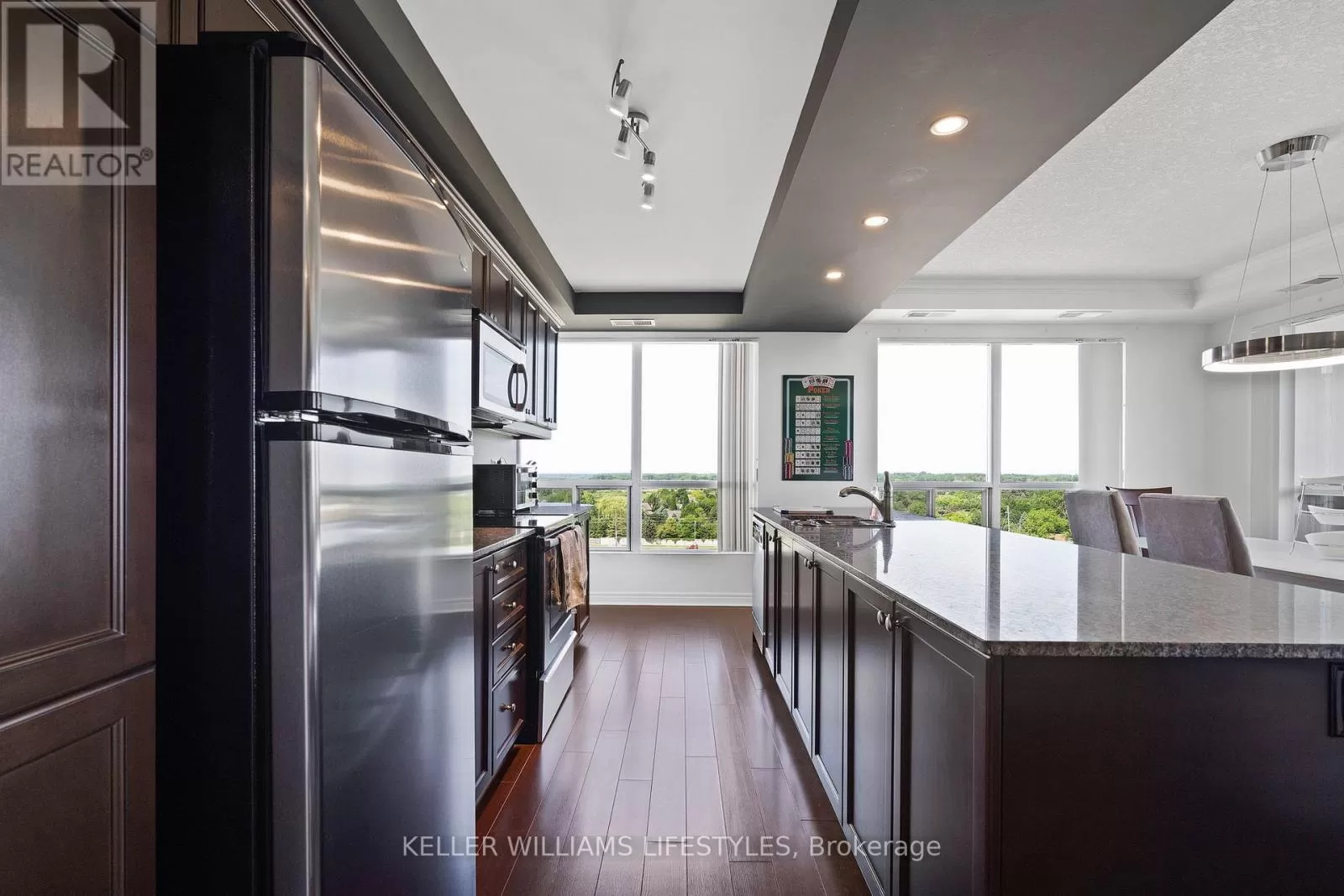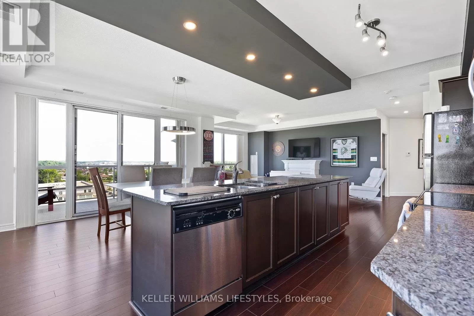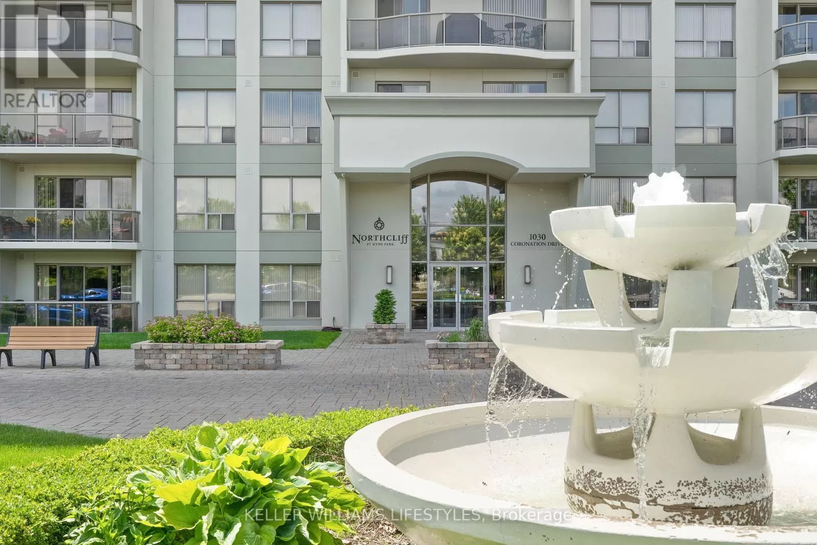 Cross Streets: Hyde Park Rd & S. Carriage Rd. ** Directions: From Hyde Park Rd: East on South Carriage Rd, 2nd exit from Roundabout at Coronation, turn left into complex. Welcome to The Northcliff by Tricar, a luxury high-rise residence in the heart of London's vibrant Hyde Park neighbourhood. This impressive 10th-floor corner unit offers over 1,350 sq. ft. of thoughtfully designed living space, framed by floor-to-ceiling windows on two sides for breathtaking natural light and sweeping views. The open-concept plan features a spacious living room with a natural gas fireplace, a well-appointed kitchen with a raised granite breakfast bar, and a generous dining area that opens onto a private balcony, perfect for seasonal barbecues or a quiet morning coffee. The primary bedroom is a private retreat with a walk-in closet and a sleek 3-piece ensuite, while the second bedroom also boasts a walk-in and easy access to a full 4-piece bath. Additional highlights include in-suite laundry, central air, and two premium underground parking spaces plus a storage locker. Residents enjoy exclusive access to outstanding amenities, including a fitness centre, theatre room, library, and guest suite. Condo fees conveniently cover water, heat, building insurance, and parking. Steps from shopping, dining, parks, and transit, this is high-rise living at its finest in one of London's most sought-after communities. (id:27476)
