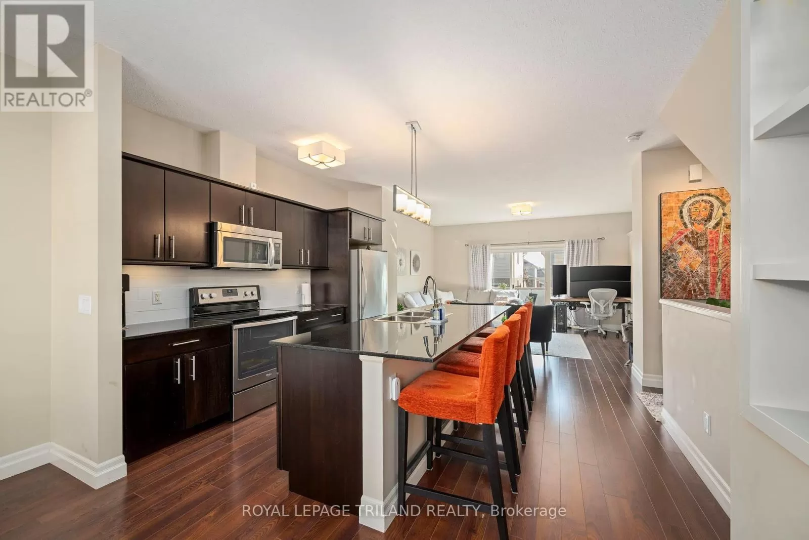 Beaverbrook Ave. and Whetherfield St. Welcome to this impeccably maintained and move-in ready 2-bedroom, 2.5-bathroom townhouse condo designed to impress with a well-designed layout, refined finishes, and abundant natural light. The open-concept second floor features a stylish kitchen with an oversized island, quartz countertops, and plenty of space for cooking and gathering. The living area is warm and inviting, with a built-in media unit and a cozy fireplace, perfect for relaxing or entertaining. Upstairs, the spacious primary bedroom includes a private ensuite and double closets, while the second bedroom also offers double closets and easy access to a full bath. Step outside to enjoy your east-facing deck ideal for morning sun and fresh air. The large2-car tandem garage provides ample space for parking plus storage or a small workshop. Set in a well-landscaped complex with its own playground, this home offers a great mix of comfort, function, and community. A wonderful place to call home! (id:27476)