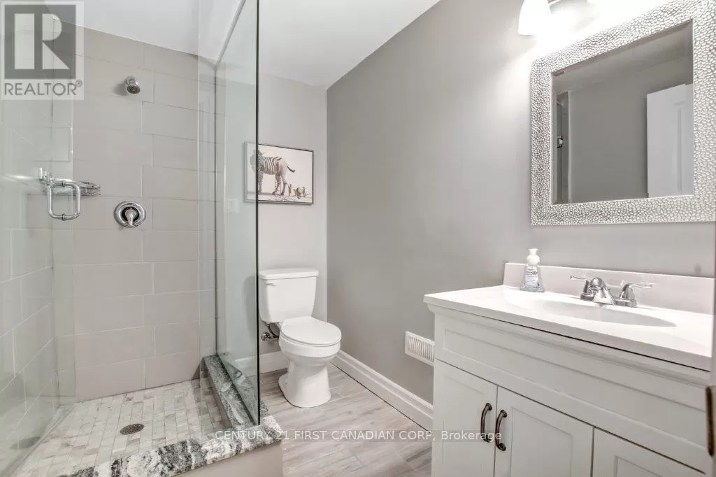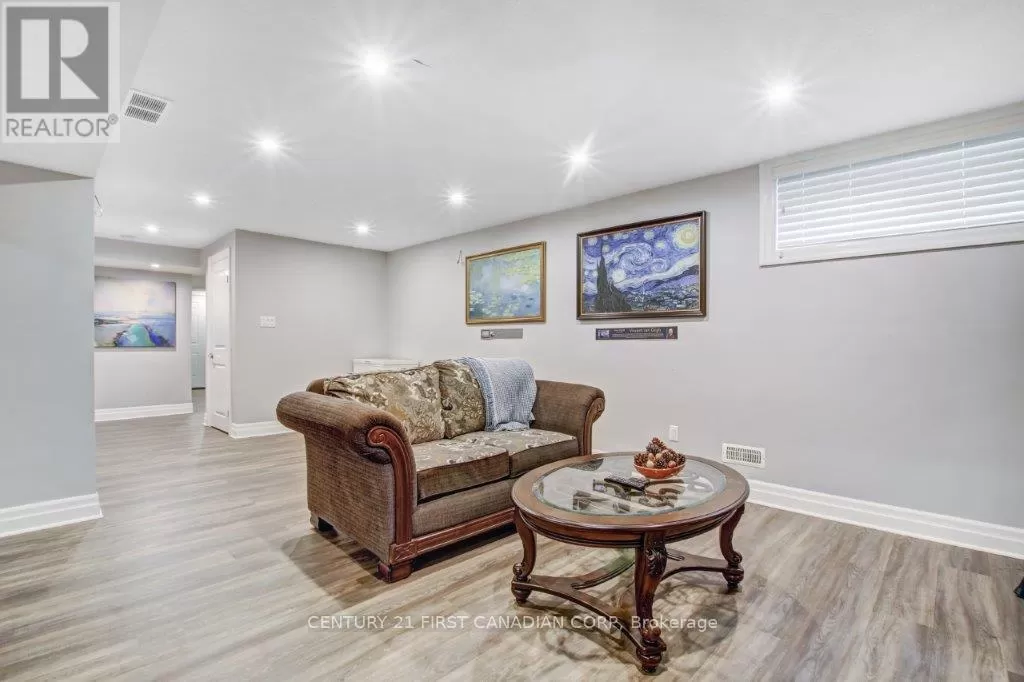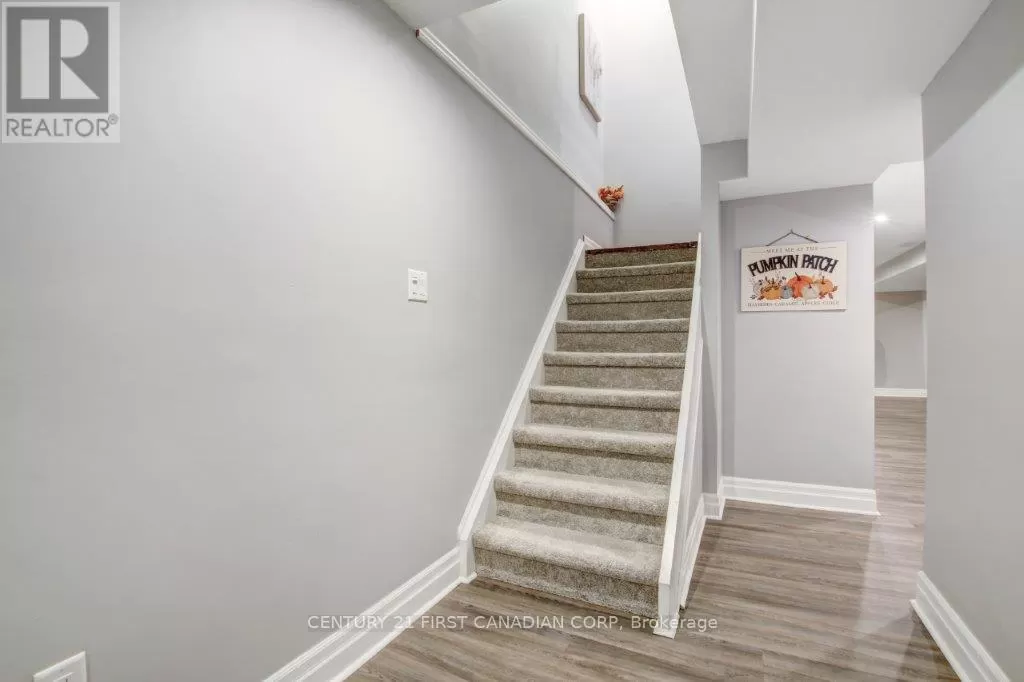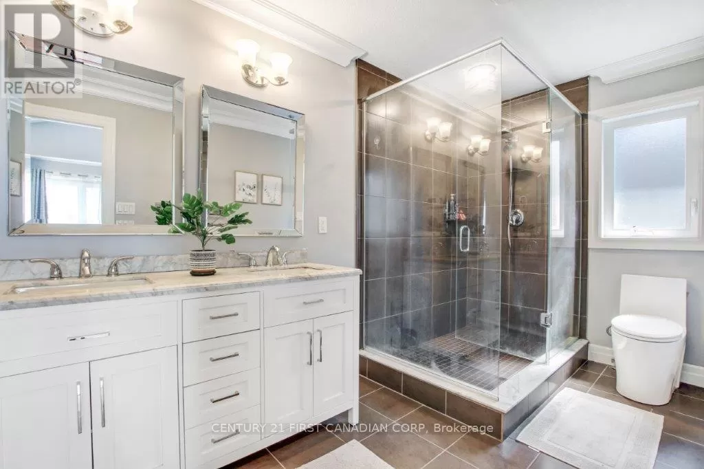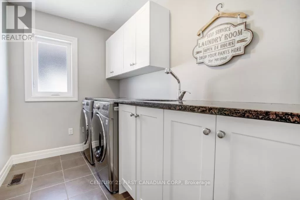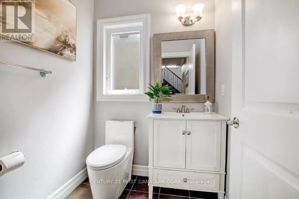 Sarnia Road to Cherrywood Trail Welcome to this stunning 2-Storey home, featuring 4 bedrooms and 3.5 bathrooms, ideally situated in the desirable Hyde Park community. The exterior boasts an elegant combination of stone and stucco on the front, complemented by brick and stucco on both sides, with a concrete driveway. Inside, the main floor offers 9-foot ceilings and an open-concept kitchen, complete with a walk-in pantry and granite countertops. The eating area seamlessly transitions to a spacious deck, perfect for outdoor entertaining. The second floor features an oversized master bedroom with double doors, a vaulted ceiling, and large windows that fill the room with natural light. It also includes a custom walk-in closet and a large ensuite bathroom. The three additional generous bedrooms are bright and inviting, and a convenient laundry room is also located on this floor. Both the main and second levels come with hardwood floors and crown molding. The fully finished basement provides additional living space with a large recreation room, an electric fireplace, a wet bar, and a three-piece bathroom. This home is in an amazing location, at the heart of a growing and family-friendly community in London, close to schools, parks, shopping, and all major amenities. (id:27476)