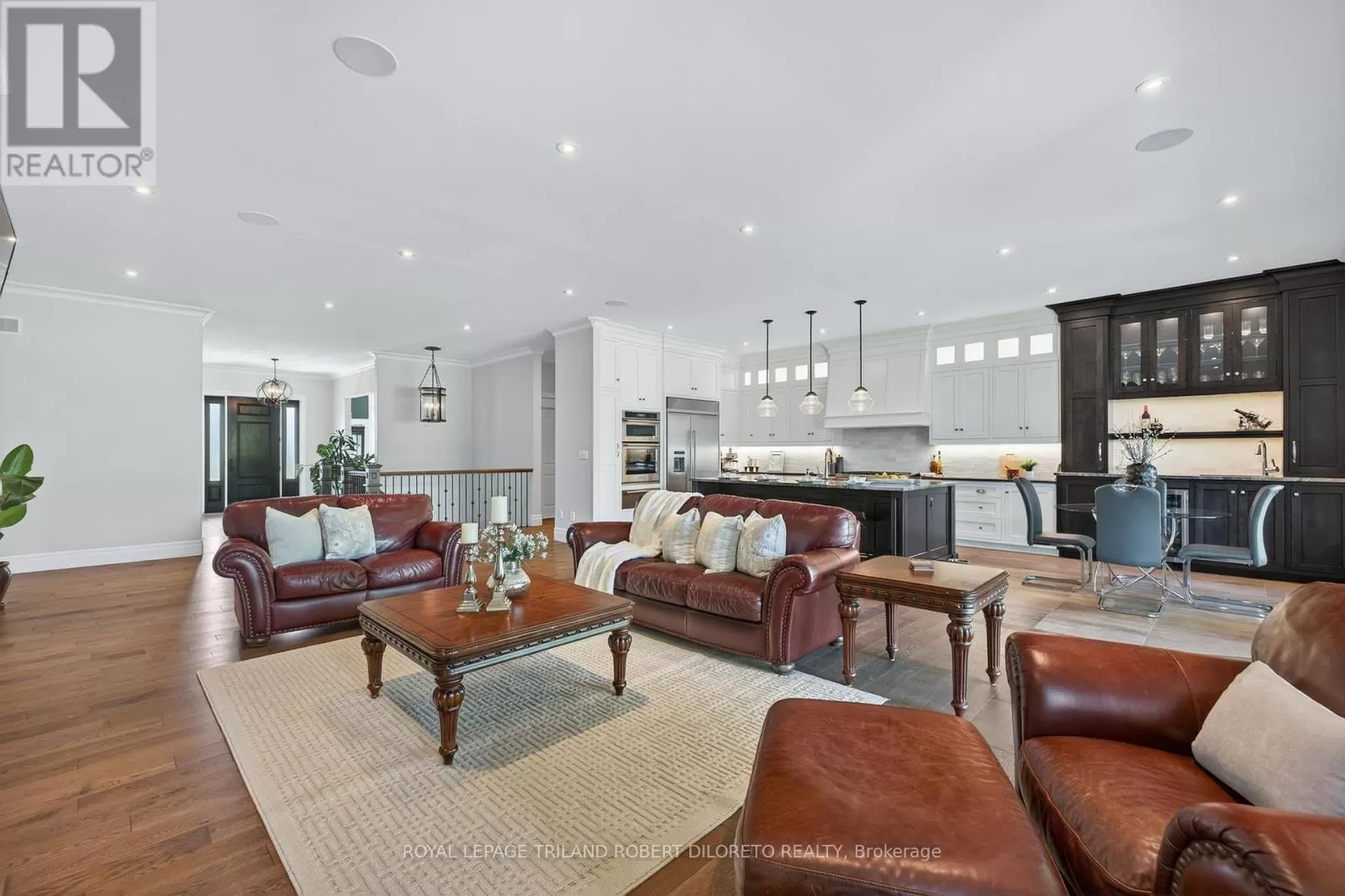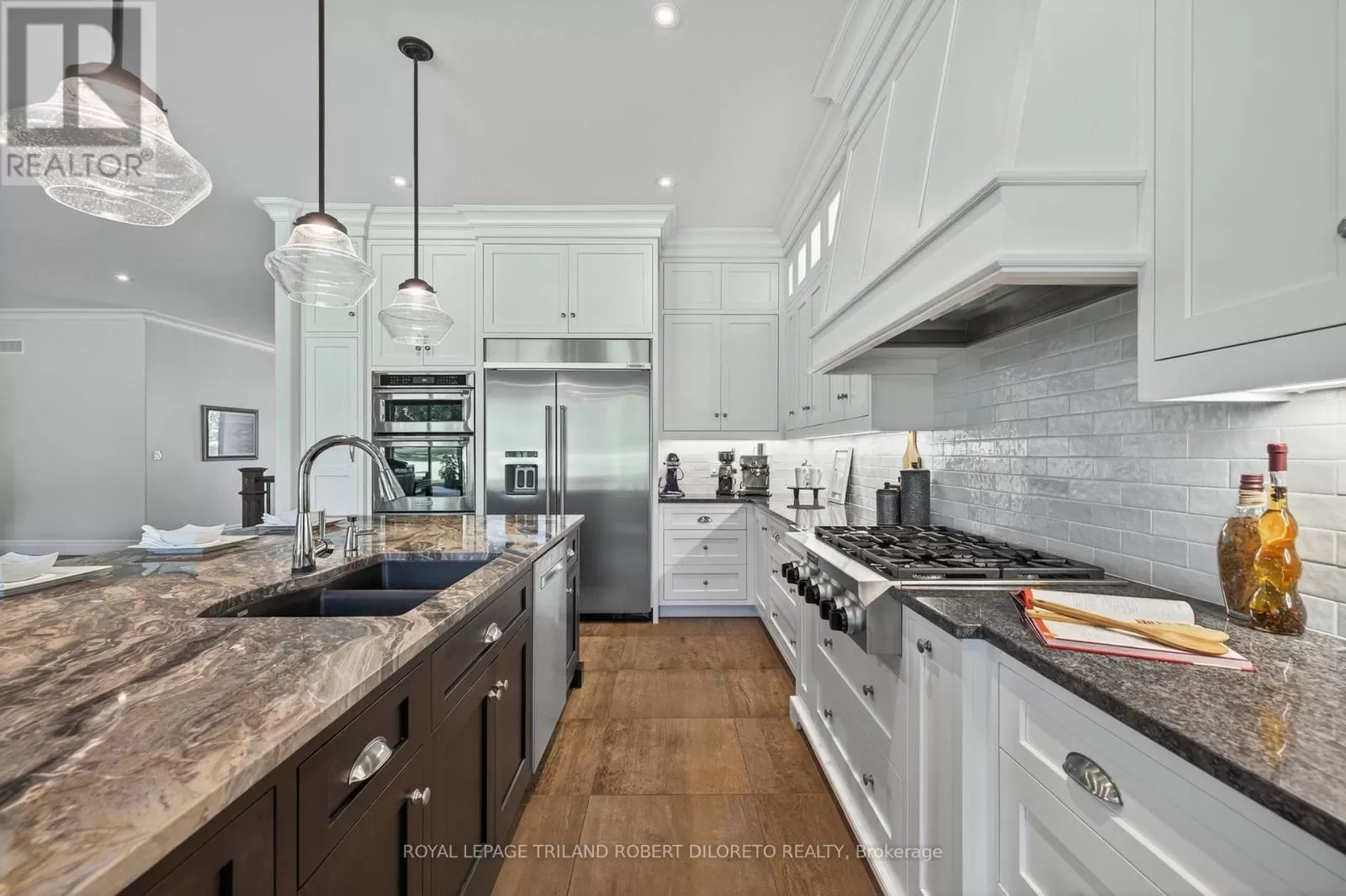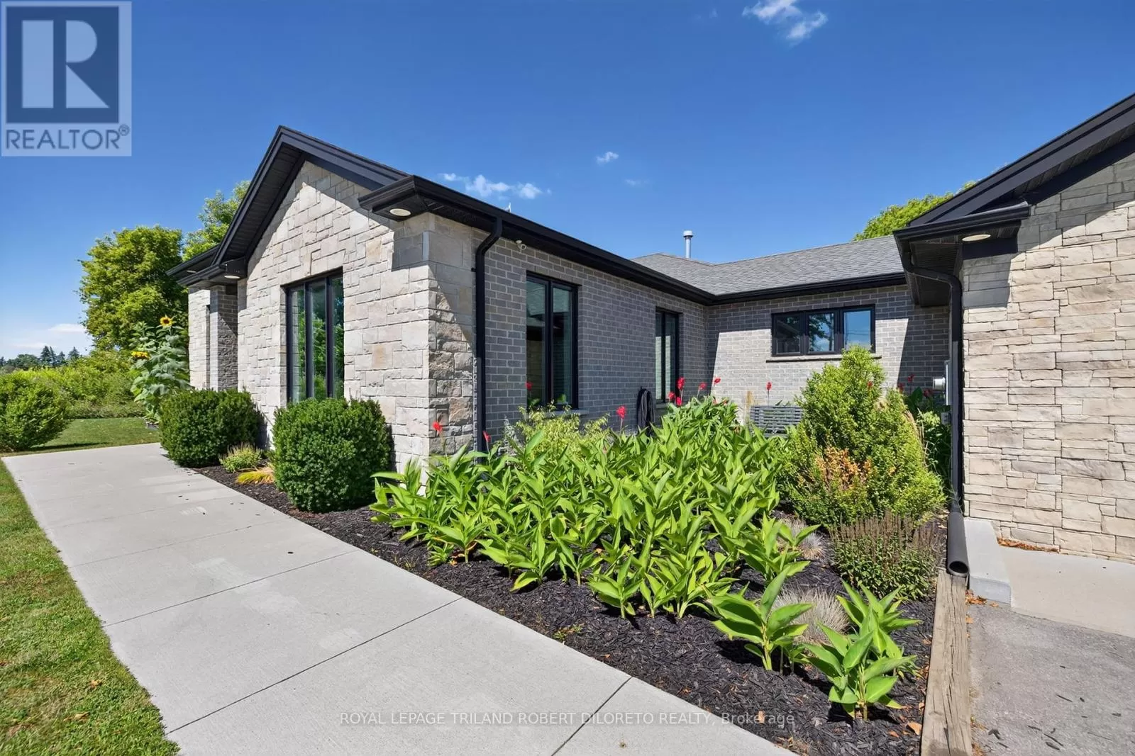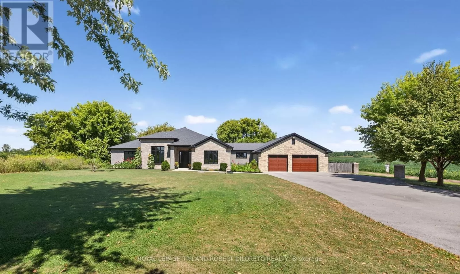 Cross Streets: Hyde Park Road. ** Directions: HYDE PARK NORTH TO SUNNINGDALE. EAST ON SUNNINGDALE TO PROPERTY ON NORTH SIDE. Gorgeous 1 ACRE parcel w/Outstanding custom designed & built (2017) 3+1 Bedroom, 4 Bath One floor executive home w/over 3000sf of superior quality, style & amenities on main level + fully finished lower & attached 4 car garage! Situated within steps of all shopping & amenities in Hyde Park of North London, this impeccably maintained home exudes Total wow factor throughout & is perfect for large or growing family + aging in place as this home is barrier-free with zero entry front door & patio door (no steps), wide hallways & doors, barrier free showers on main floor + discreetly hidden elevator which accesses the lower level. HIGHTLIGHTS: All brick & stone exterior w/multi-car drive & concrete walkways; all exterior windows & doors triple glazed for additional R-value & soundproofing; main floor exterior walls have 2" spray foam for added R-value; open concept interior w/high ceilings, custom millwork, ample recessed lighting & neutral décor for that timeless understated elegance; hardwood flooring & tile on main; designer kitchen w/high end custom cabinetry, KITCHENAID & BOSCH appliances, island w/marble counters + contrasting wood coffee bar; great room w/f/place flanked by custom built-ins; formal dining room; main floor office; 3 amazing bedrooms on main boast primary w/5pc ens, walk-in closet w/custom organizers + walkout to patio; additional main floor bedroom w/ens privileges; main floor laundry & 2pc powder room; the massive basement is finished to same high standards & is ideal for guest or in-law suite boasting 2" spray foam in all exterior walls + in-floor heat; huge family room, theatre/media room, 2nd kitchen w/quartz counters, fridge, stove, dishwasher & microwave, bedroom, gym area w/rubber floors, 3pc bath + loads of storage; fully fenced park-like yard w/large covered concrete patio & plenty of grass space for kids or pets! The list goes on! The property is serviced by Propane & fittings can be switched to future natural gas. Must See! (id:27476)