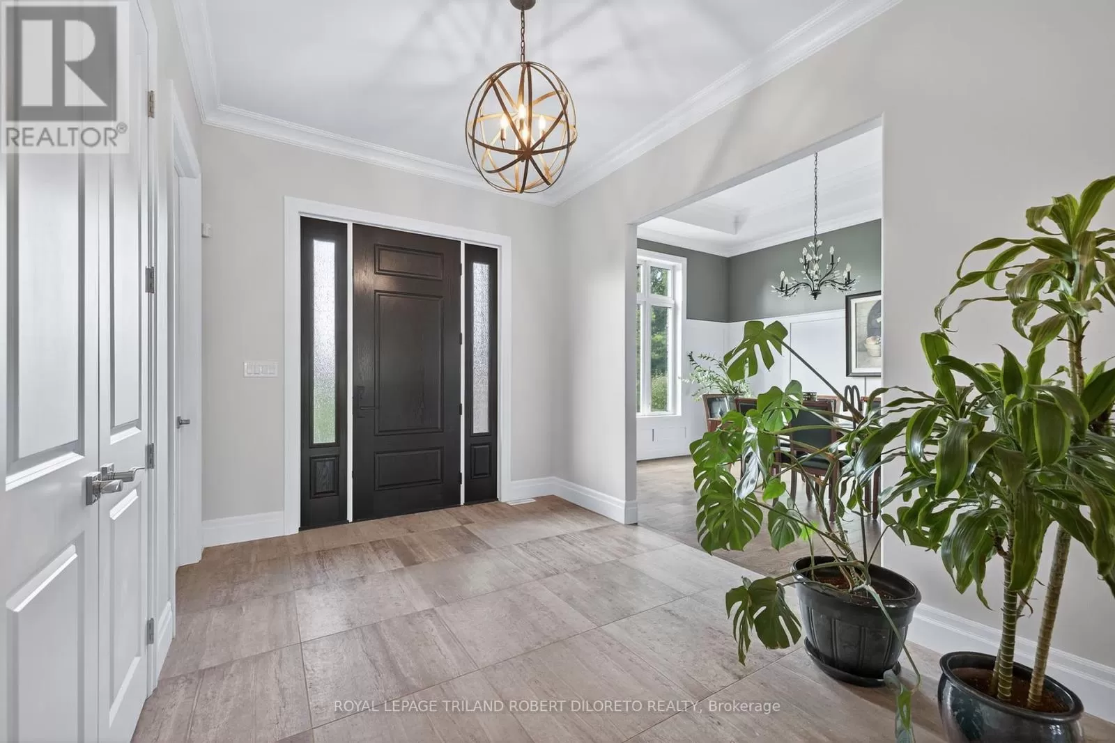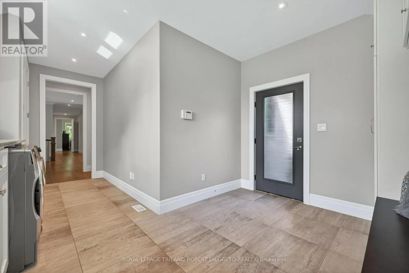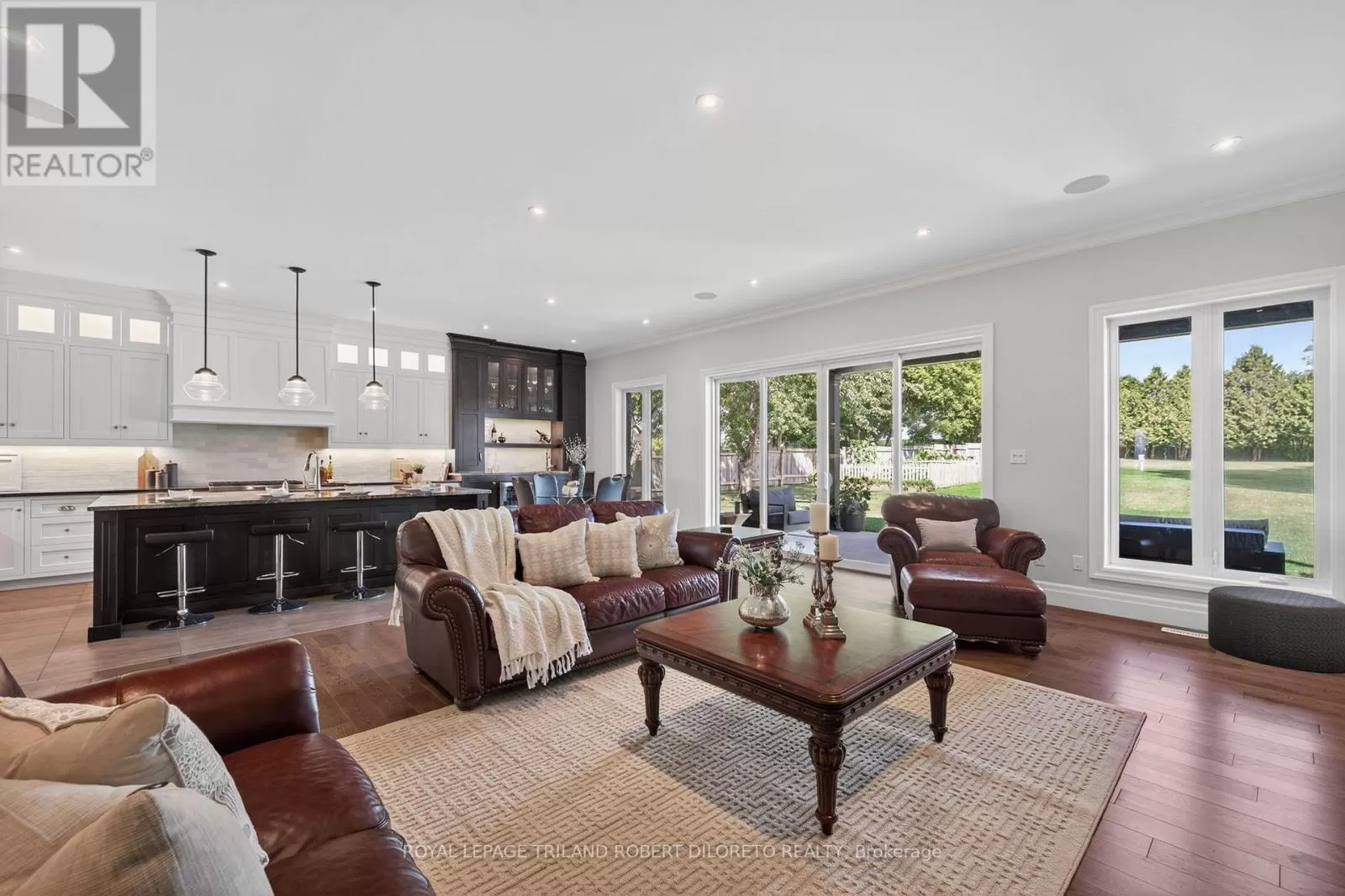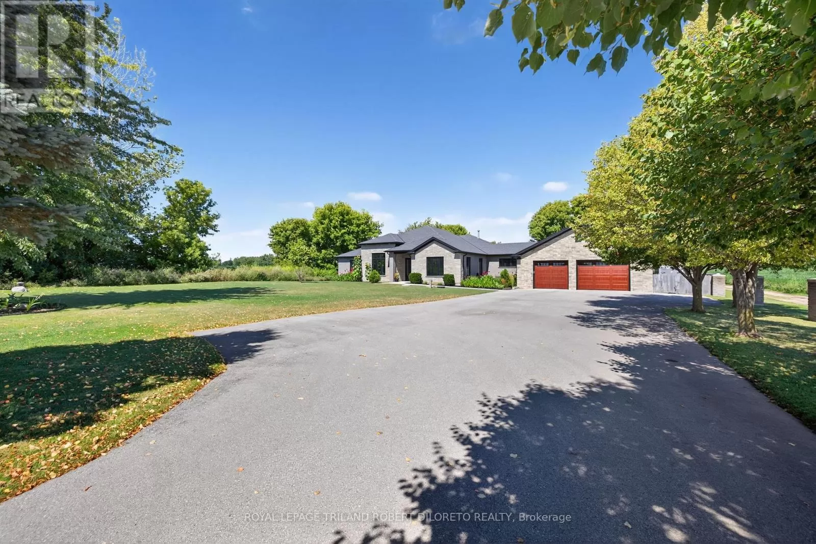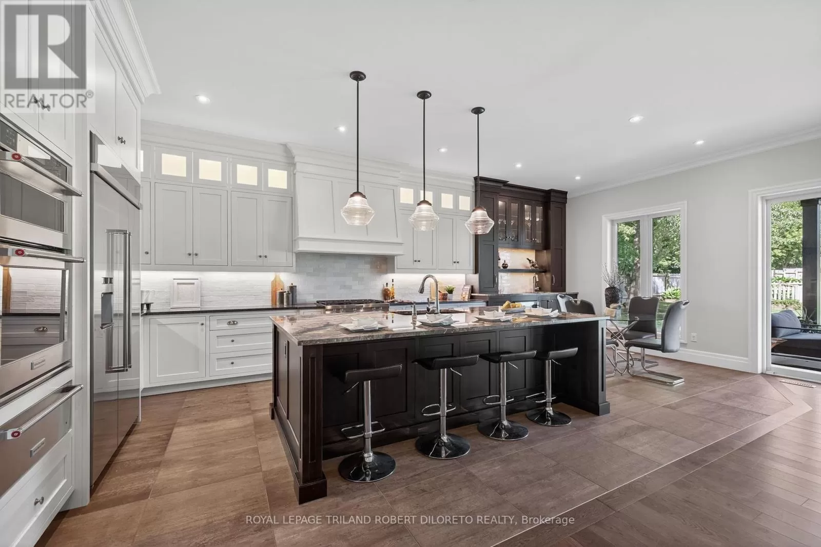 Cross Streets: Hyde Park Road. ** Directions: HYDE PARK NORTH TO SUNNINGDALE. EAST ON SUNNINGDALE TO PROPERTY ON NORTH SIDE. Gorgeous 1 ACRE parcel w/Outstanding custom designed & built (2017) 3+1 Bedroom, 4 Bath One floor executive home w/over 3000sf of superior quality, style & amenities on main level + fully finished lower & attached 4 car garage! Situated within steps of all shopping & amenities in Hyde Park of North London, this impeccably maintained home exudes Total wow factor throughout & is perfect for large or growing family + aging in place as this home is barrier-free with zero entry front door & patio door (no steps), wide hallways & doors, barrier free showers on main floor + discreetly hidden elevator which accesses the lower level. HIGHTLIGHTS: All brick & stone exterior w/multi-car drive & concrete walkways; all exterior windows & doors triple glazed for additional R-value & soundproofing; main floor exterior walls have 2" spray foam for added R-value; open concept interior w/high ceilings, custom millwork, ample recessed lighting & neutral décor for that timeless understated elegance; hardwood flooring & tile on main; designer kitchen w/high end custom cabinetry, KITCHENAID & BOSCH appliances, island w/marble counters + contrasting wood coffee bar; great room w/f/place flanked by custom built-ins; formal dining room; main floor office; 3 amazing bedrooms on main boast primary w/5pc ens, walk-in closet w/custom organizers + walkout to patio; additional main floor bedroom w/ens privileges; main floor laundry & 2pc powder room; the massive basement is finished to same high standards & is ideal for guest or in-law suite boasting 2" spray foam in all exterior walls + in-floor heat; huge family room, theatre/media room, 2nd kitchen w/quartz counters, fridge, stove, dishwasher & microwave, bedroom, gym area w/rubber floors, 3pc bath + loads of storage; fully fenced park-like yard w/large covered concrete patio & plenty of grass space for kids or pets! The list goes on! The property is serviced by Propane & fittings can be switched to future natural gas. Must See! (id:27476)