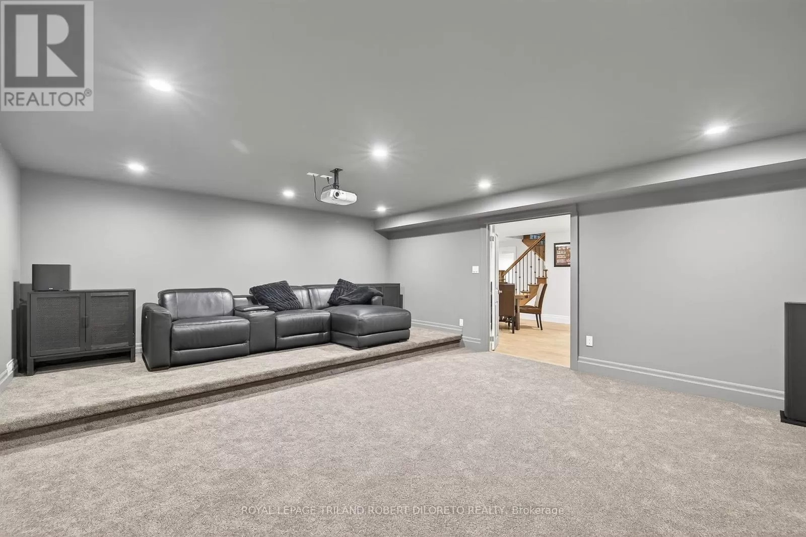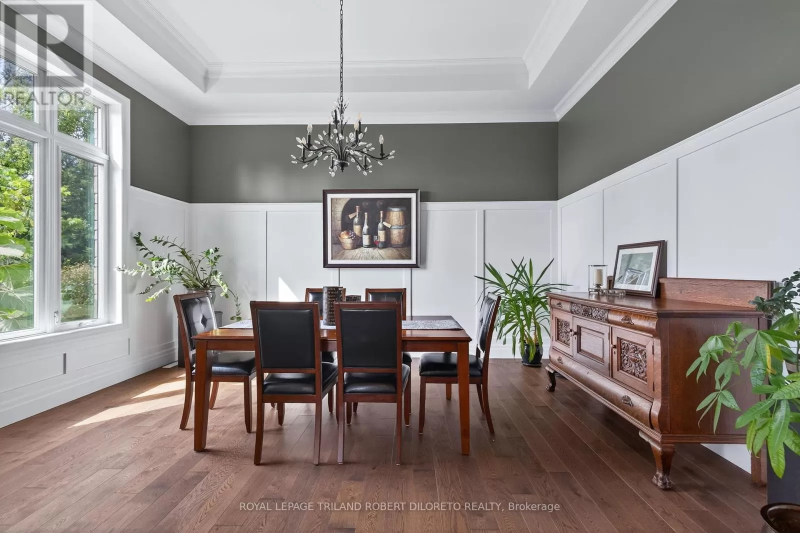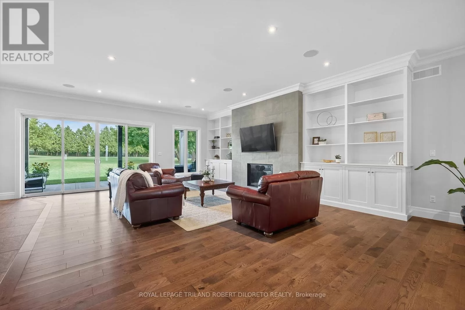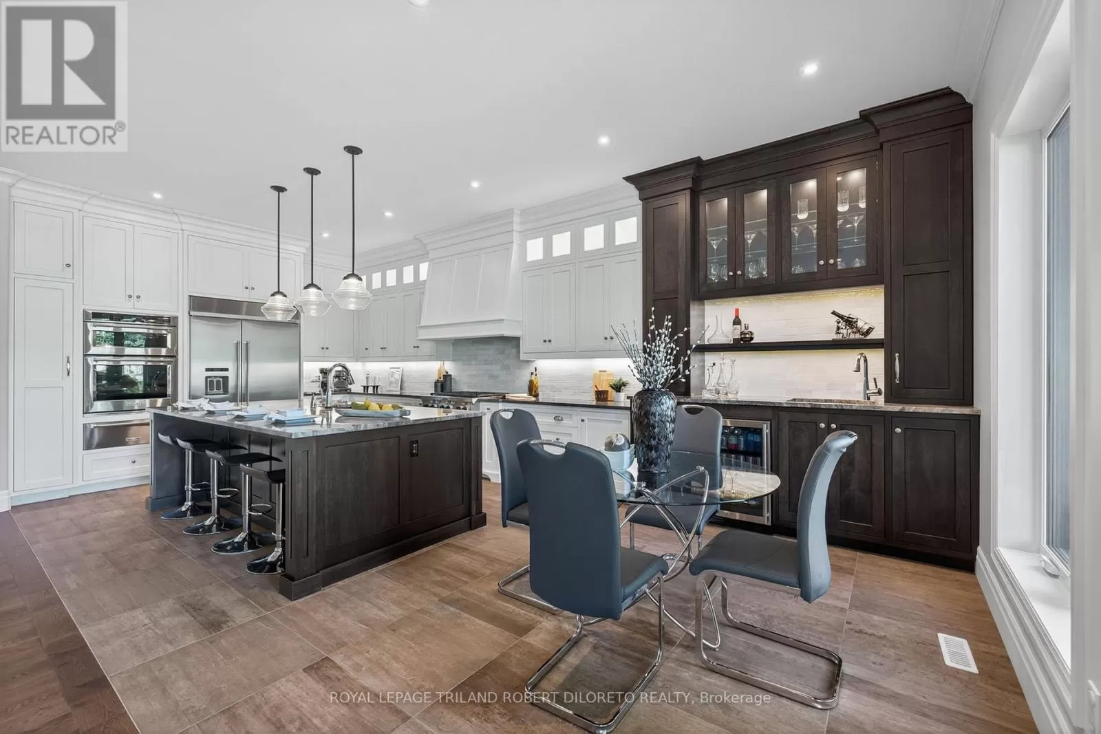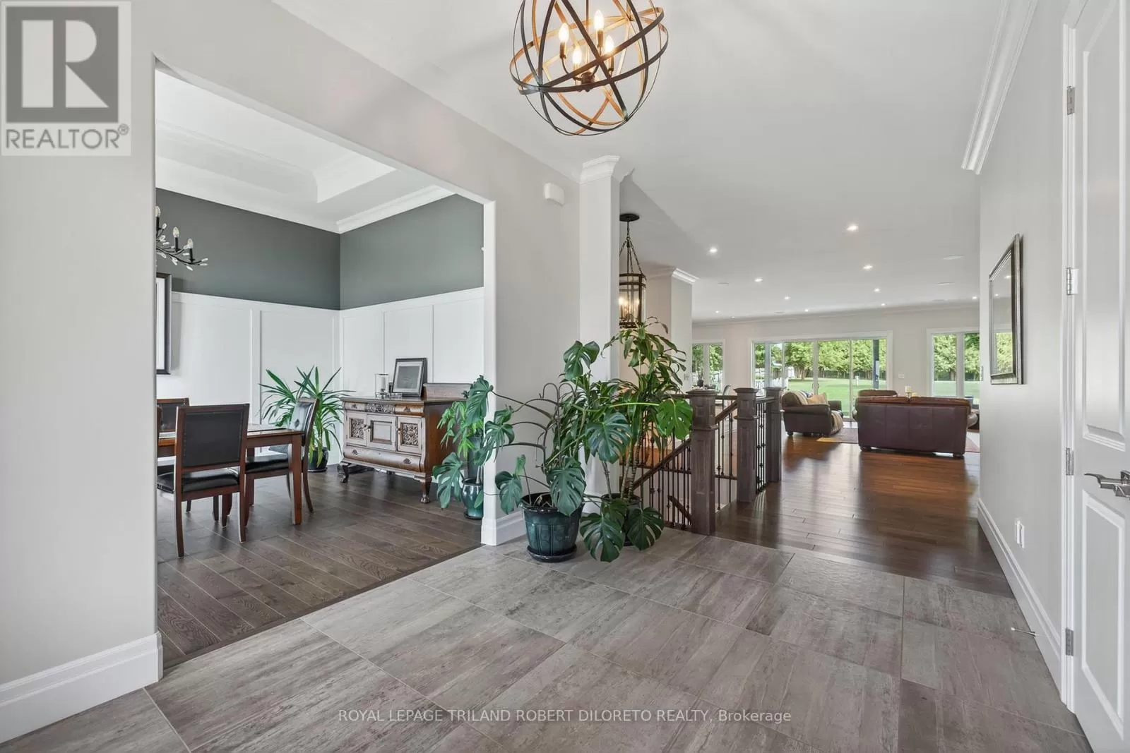 Cross Streets: Hyde Park Road. ** Directions: HYDE PARK NORTH TO SUNNINGDALE. EAST ON SUNNINGDALE TO PROPERTY ON NORTH SIDE. Gorgeous 1 ACRE parcel w/Outstanding custom designed & built (2017) 3+1 Bedroom, 4 Bath One floor executive home w/over 3000sf of superior quality, style & amenities on main level + fully finished lower & attached 4 car garage! Situated within steps of all shopping & amenities in Hyde Park of North London, this impeccably maintained home exudes Total wow factor throughout & is perfect for large or growing family + aging in place as this home is barrier-free with zero entry front door & patio door (no steps), wide hallways & doors, barrier free showers on main floor + discreetly hidden elevator which accesses the lower level. HIGHTLIGHTS: All brick & stone exterior w/multi-car drive & concrete walkways; all exterior windows & doors triple glazed for additional R-value & soundproofing; main floor exterior walls have 2" spray foam for added R-value; open concept interior w/high ceilings, custom millwork, ample recessed lighting & neutral décor for that timeless understated elegance; hardwood flooring & tile on main; designer kitchen w/high end custom cabinetry, KITCHENAID & BOSCH appliances, island w/marble counters + contrasting wood coffee bar; great room w/f/place flanked by custom built-ins; formal dining room; main floor office; 3 amazing bedrooms on main boast primary w/5pc ens, walk-in closet w/custom organizers + walkout to patio; additional main floor bedroom w/ens privileges; main floor laundry & 2pc powder room; the massive basement is finished to same high standards & is ideal for guest or in-law suite boasting 2" spray foam in all exterior walls + in-floor heat; huge family room, theatre/media room, 2nd kitchen w/quartz counters, fridge, stove, dishwasher & microwave, bedroom, gym area w/rubber floors, 3pc bath + loads of storage; fully fenced park-like yard w/large covered concrete patio & plenty of grass space for kids or pets! The list goes on! The property is serviced by Propane & fittings can be switched to future natural gas. Must See! (id:27476)