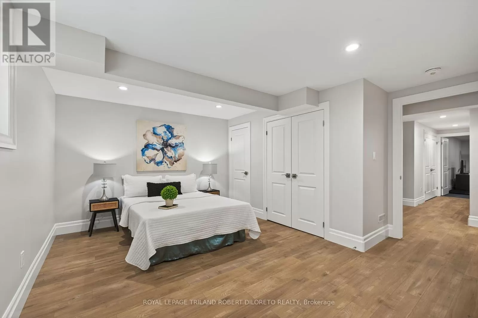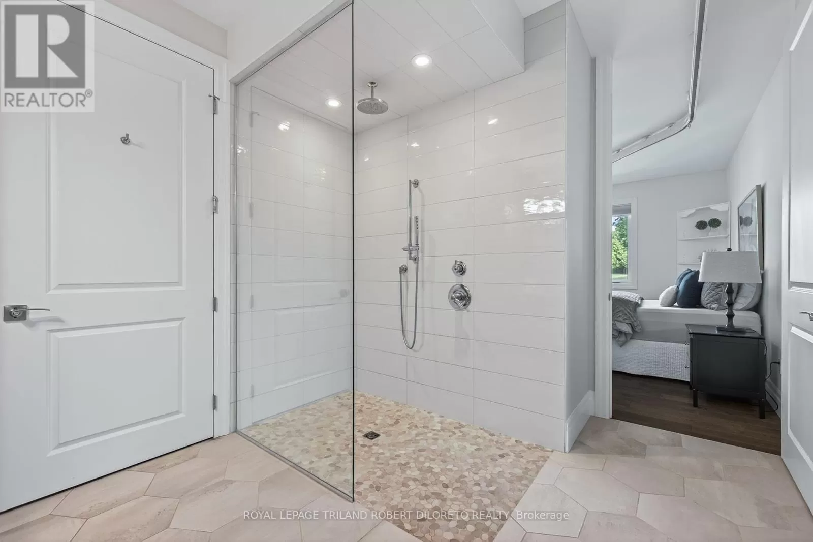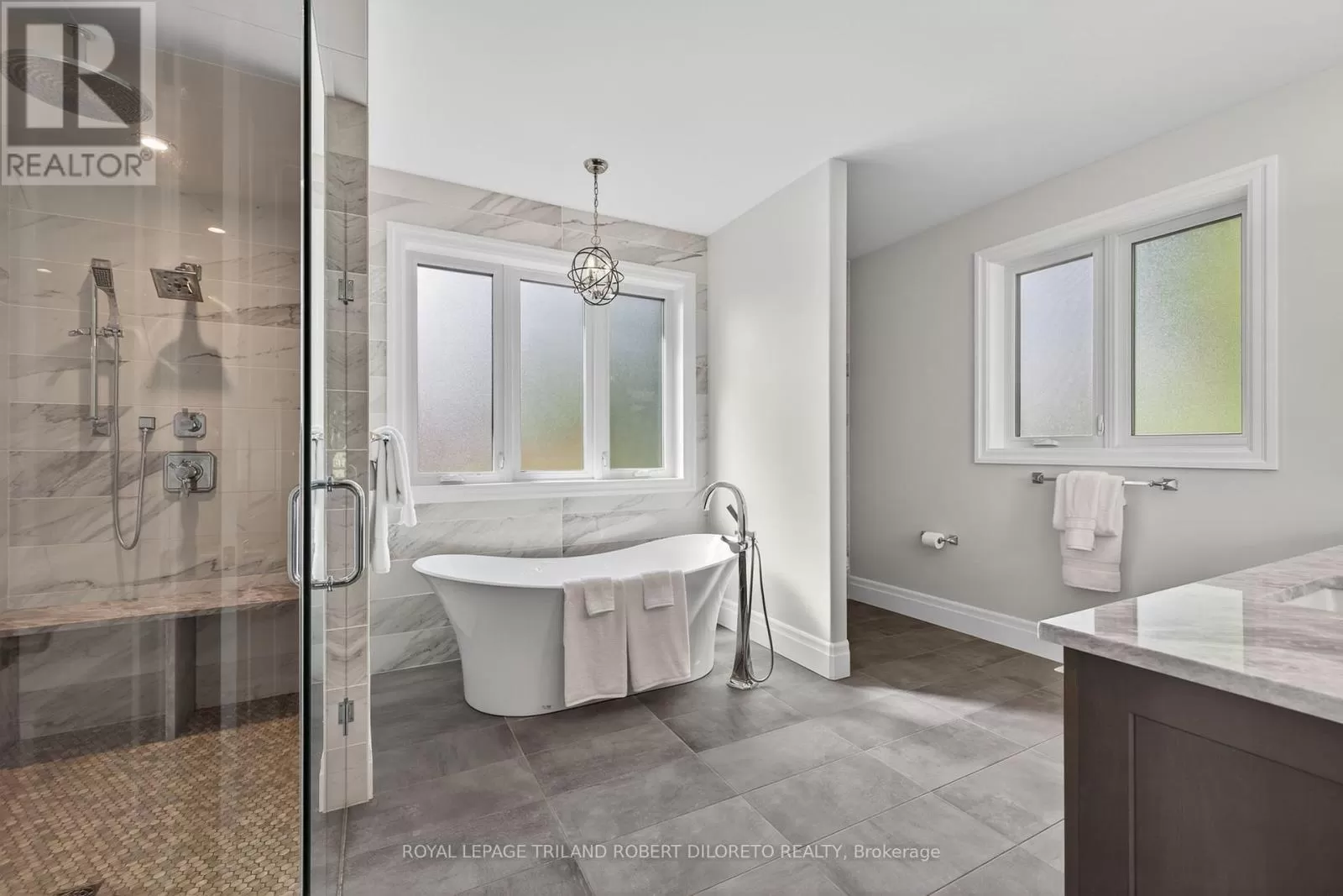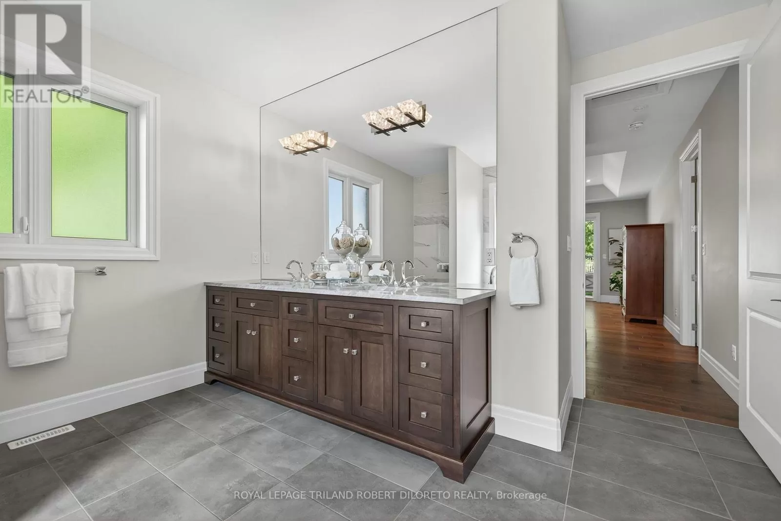 Cross Streets: Hyde Park Road. ** Directions: HYDE PARK NORTH TO SUNNINGDALE. EAST ON SUNNINGDALE TO PROPERTY ON NORTH SIDE. Gorgeous 1 ACRE parcel w/Outstanding custom designed & built (2017) 3+1 Bedroom, 4 Bath One floor executive home w/over 3000sf of superior quality, style & amenities on main level + fully finished lower & attached 4 car garage! Situated within steps of all shopping & amenities in Hyde Park of North London, this impeccably maintained home exudes Total wow factor throughout & is perfect for large or growing family + aging in place as this home is barrier-free with zero entry front door & patio door (no steps), wide hallways & doors, barrier free showers on main floor + discreetly hidden elevator which accesses the lower level. HIGHTLIGHTS: All brick & stone exterior w/multi-car drive & concrete walkways; all exterior windows & doors triple glazed for additional R-value & soundproofing; main floor exterior walls have 2" spray foam for added R-value; open concept interior w/high ceilings, custom millwork, ample recessed lighting & neutral décor for that timeless understated elegance; hardwood flooring & tile on main; designer kitchen w/high end custom cabinetry, KITCHENAID & BOSCH appliances, island w/marble counters + contrasting wood coffee bar; great room w/f/place flanked by custom built-ins; formal dining room; main floor office; 3 amazing bedrooms on main boast primary w/5pc ens, walk-in closet w/custom organizers + walkout to patio; additional main floor bedroom w/ens privileges; main floor laundry & 2pc powder room; the massive basement is finished to same high standards & is ideal for guest or in-law suite boasting 2" spray foam in all exterior walls + in-floor heat; huge family room, theatre/media room, 2nd kitchen w/quartz counters, fridge, stove, dishwasher & microwave, bedroom, gym area w/rubber floors, 3pc bath + loads of storage; fully fenced park-like yard w/large covered concrete patio & plenty of grass space for kids or pets! The list goes on! The property is serviced by Propane & fittings can be switched to future natural gas. Must See! (id:27476)
