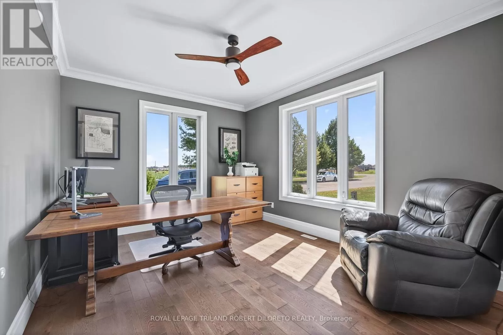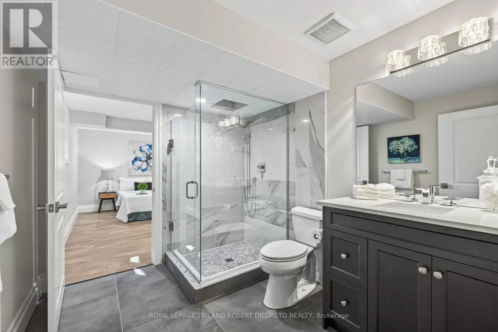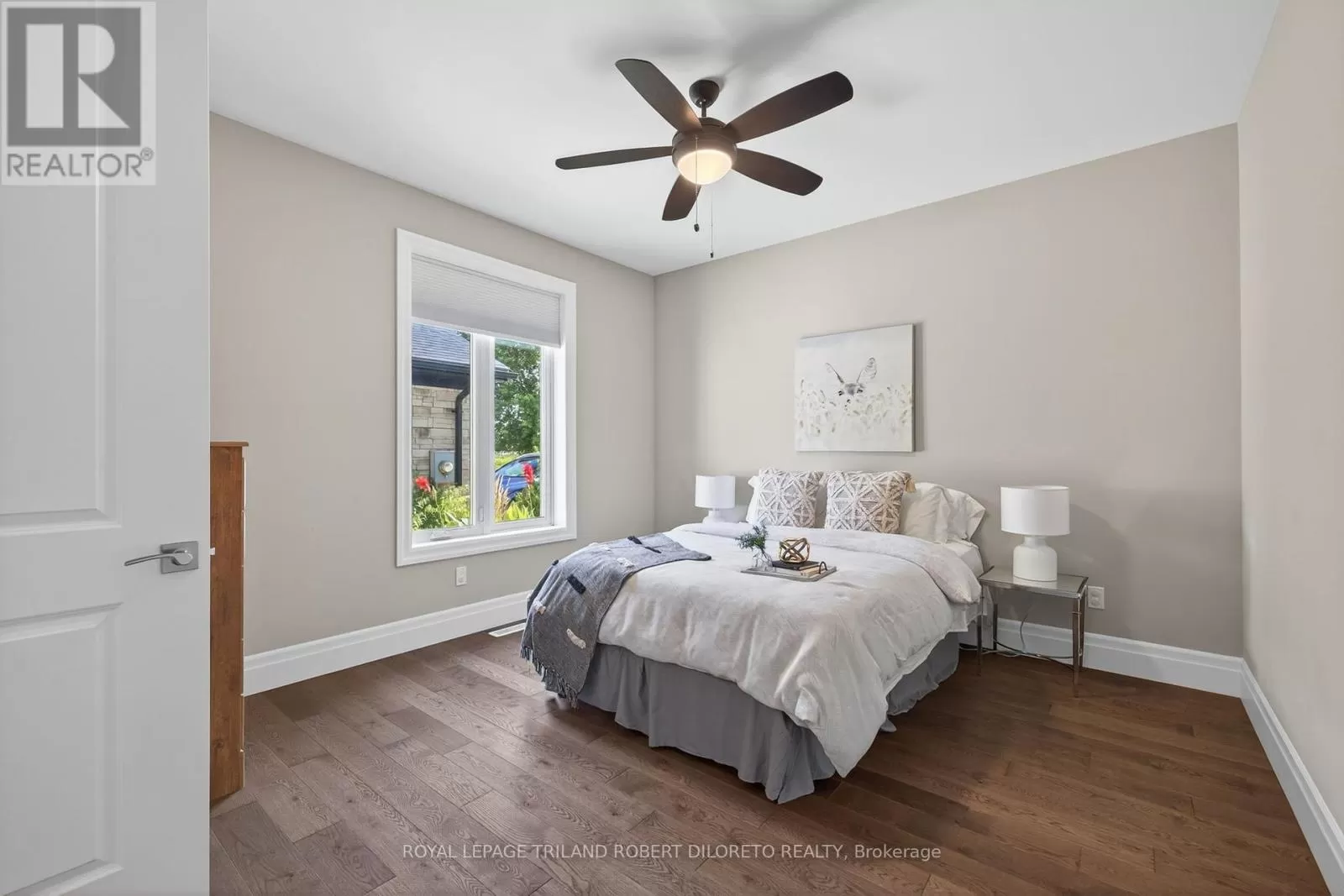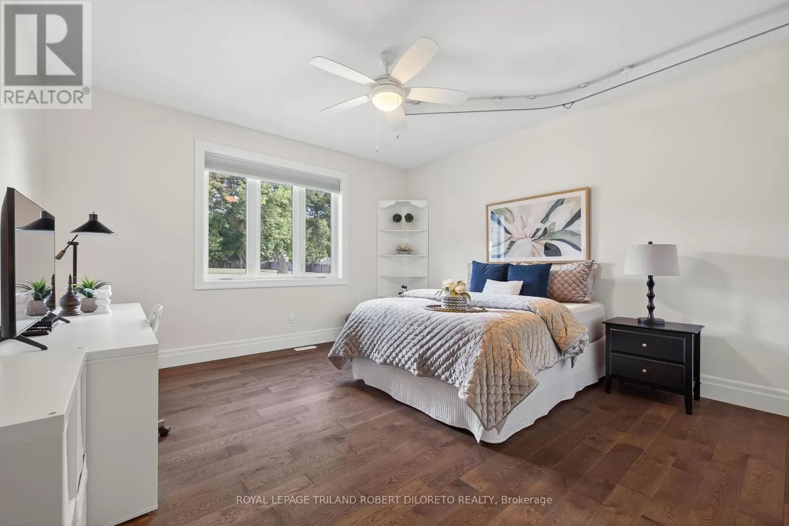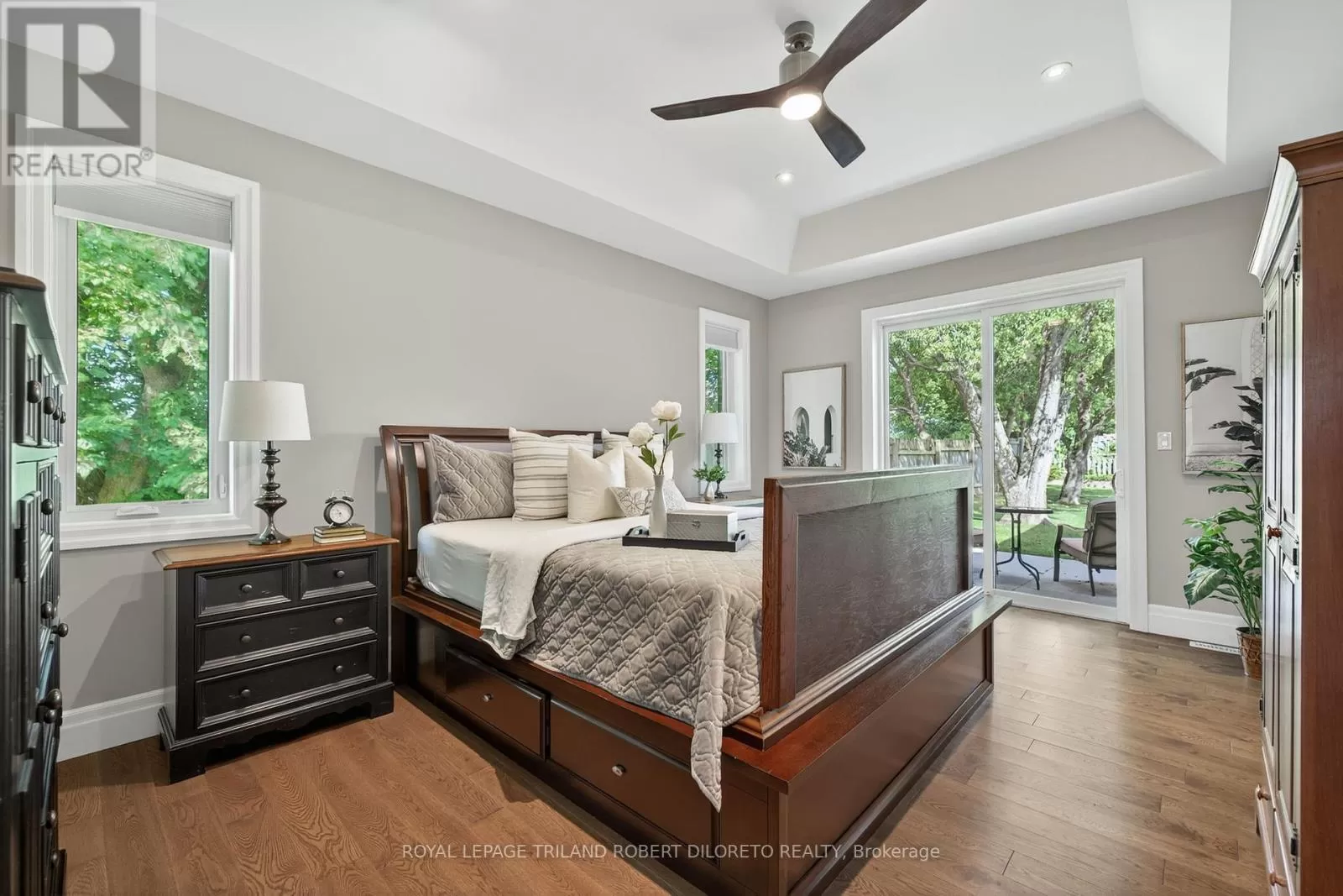Cross Streets: Hyde Park Road. ** Directions: HYDE PARK NORTH TO SUNNINGDALE. EAST ON SUNNINGDALE TO PROPERTY ON NORTH SIDE. Gorgeous 1 ACRE parcel w/Outstanding custom designed & built (2017) 3+1 Bedroom, 4 Bath One floor executive home w/over 3000sf of superior quality, style & amenities on main level + fully finished lower & attached 4 car garage! Situated within steps of all shopping & amenities in Hyde Park of North London, this impeccably maintained home exudes Total wow factor throughout & is perfect for large or growing family + aging in place as this home is barrier-free with zero entry front door & patio door (no steps), wide hallways & doors, barrier free showers on main floor + discreetly hidden elevator which accesses the lower level. HIGHTLIGHTS: All brick & stone exterior w/multi-car drive & concrete walkways; all exterior windows & doors triple glazed for additional R-value & soundproofing; main floor exterior walls have 2" spray foam for added R-value; open concept interior w/high ceilings, custom millwork, ample recessed lighting & neutral décor for that timeless understated elegance; hardwood flooring & tile on main; designer kitchen w/high end custom cabinetry, KITCHENAID & BOSCH appliances, island w/marble counters + contrasting wood coffee bar; great room w/f/place flanked by custom built-ins; formal dining room; main floor office; 3 amazing bedrooms on main boast primary w/5pc ens, walk-in closet w/custom organizers + walkout to patio; additional main floor bedroom w/ens privileges; main floor laundry & 2pc powder room; the massive basement is finished to same high standards & is ideal for guest or in-law suite boasting 2" spray foam in all exterior walls + in-floor heat; huge family room, theatre/media room, 2nd kitchen w/quartz counters, fridge, stove, dishwasher & microwave, bedroom, gym area w/rubber floors, 3pc bath + loads of storage; fully fenced park-like yard w/large covered concrete patio & plenty of grass space for kids or pets! The list goes on! The property is serviced by Propane & fittings can be switched to future natural gas. Must See! (id:27476)