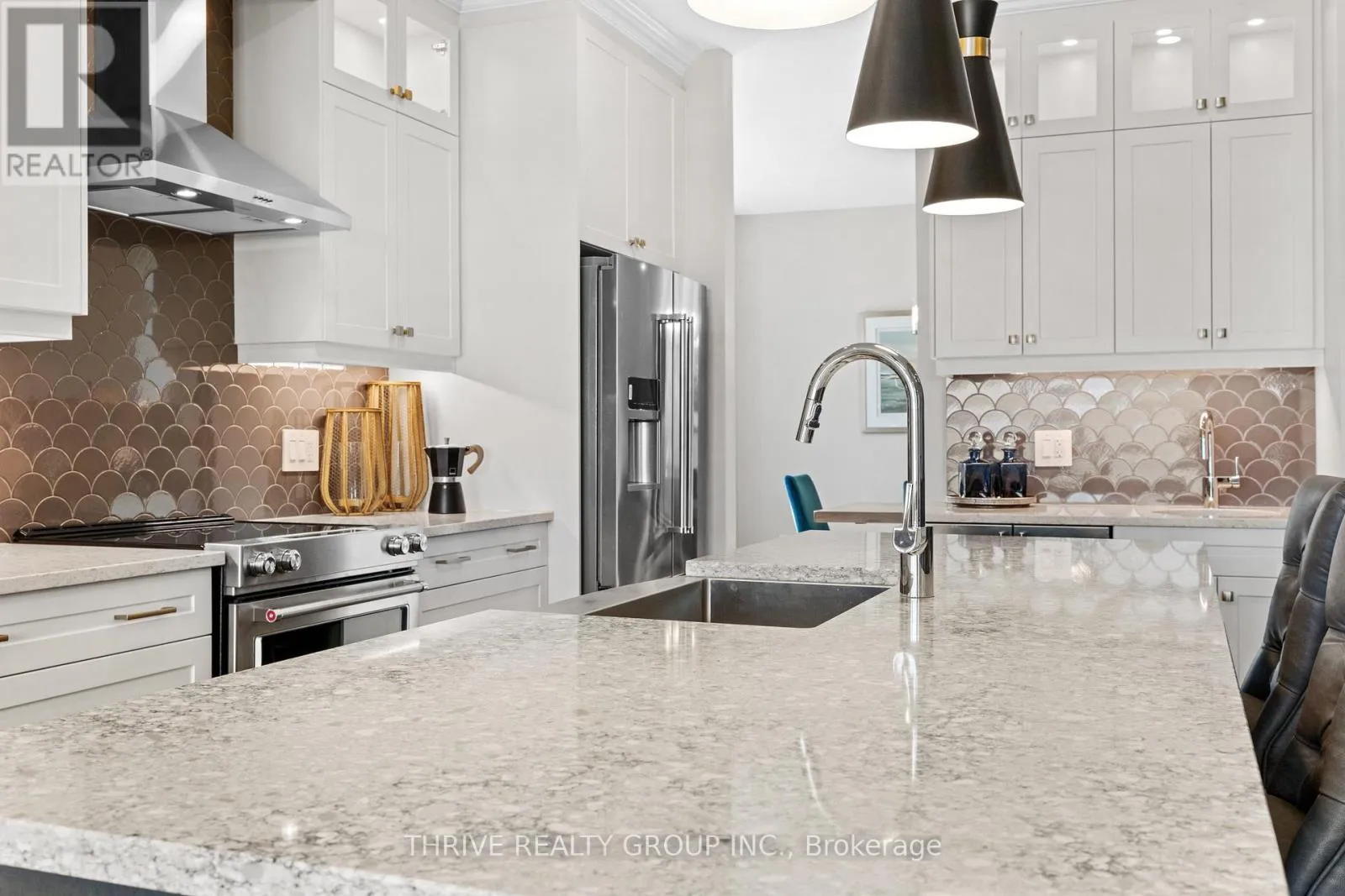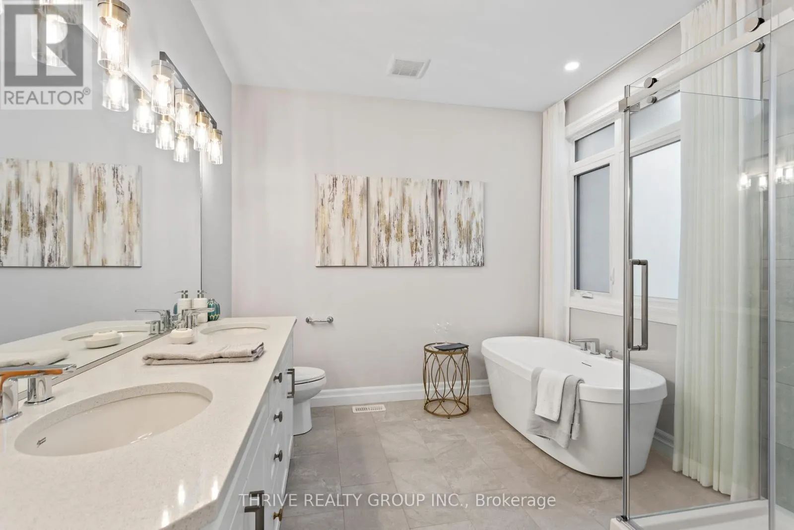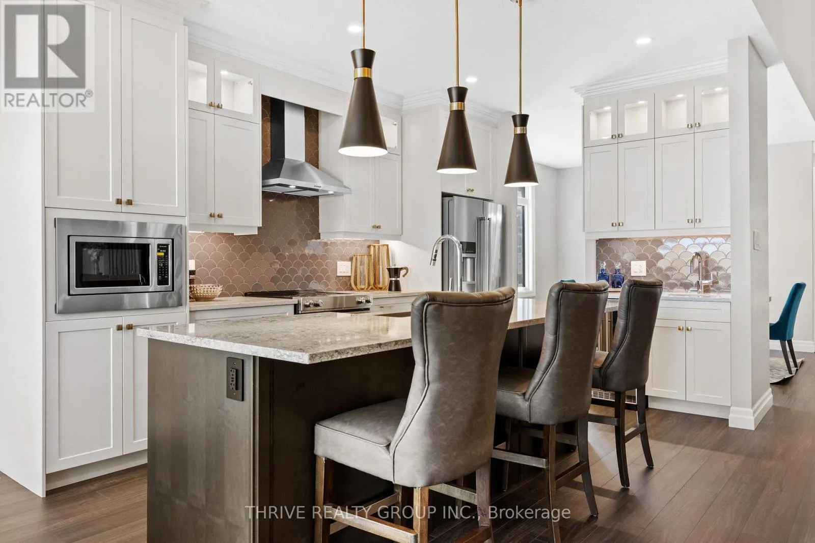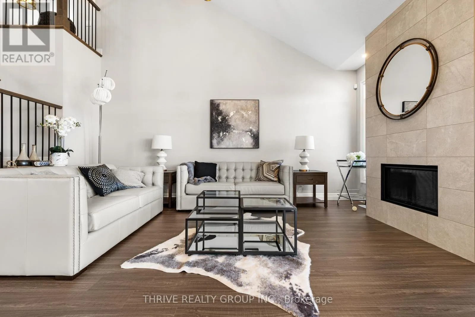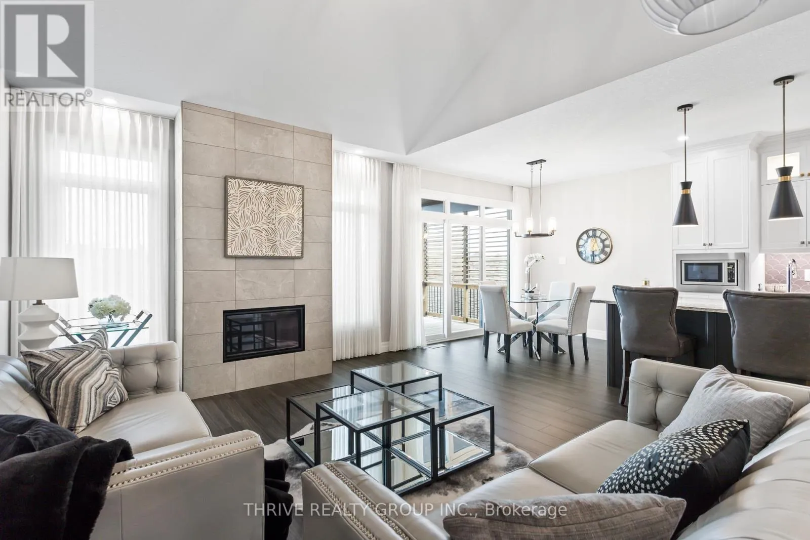 Cross Streets: Wonderland / Sunningdale. ** Directions: Off Wonderland Rd. N. Welcome to Rembrandt Walk a prestigious Vacant Land Condo Community by Rembrandt Homes! This Beautiful "The Gallery" Model Home that is Ready to Move into! Experience all the benefits of a detached home with the ease of low community fees that include lawn care and snow removal, giving you more time to enjoy a carefree lifestyle. This executive one-floor bungaloft boasts a thoughtfully designed floor plan with high-end finishes throughout. The open-concept main level showcases a chefs kitchen with premium appliances, a formal dining area, and a spacious living room with a cathedral ceiling and gas fireplace. Step outside to a large covered deck, perfect for relaxing or entertaining. The main floor also features a luxurious primary suite with a spa-like 5-piece ensuite. Upstairs, the versatile loft offers a media room, guest bedroom, and 4-piece bath. The fully finished lower level includes a cozy rec room, 3-piece bath, 4th bedroom, and plenty of storage. Move-in ready, this home includes custom window coverings and all appliances. The condo fee covers exterior grounds maintenance, including both front and rear yards, for true maintenance-free living. Located just minutes from shopping, Masonville Mall, Sunningdale Golf, and UWO/Hospital, this home combines elegance with convenience. Book your private showing today! Call for a Private Tour or Visit during Model Home Hours - Monday through Thursday 1-5pm & Saturday -Sunday 1-4pm (Closed Fridays) (id:27476)