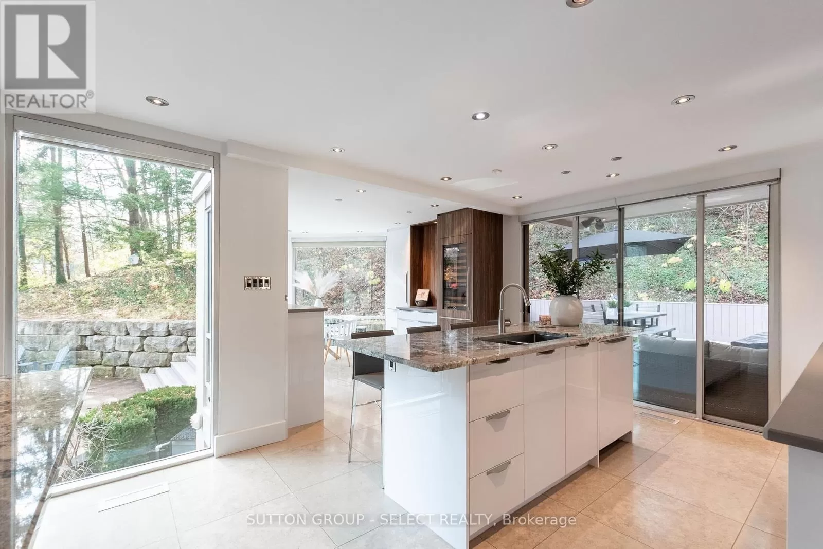 Windermere Dr & Corley Dr Situated in the desirable cul-de-sac of Corley South, this modern raised bungalow is sure to impress with its contemporary aesthetic in a classic peaceful setting of mature trees.The curb appeal of the home has been enhanced with the intelligent landscaping, exposed aggregate concrete driveway and new concrete steps and planters leading to the raised front entrance.The foyer leads you to the massive living room area boasting floor to ceiling windows that make you feel connected to the wonderful surroundings of the outdoors. You will also find a large gas insert fireplace complete with stone accent wall and wooden mantle. The space also has a generous formal dining area with built in storage and lots of natural light. The expansive custom chefs kitchen is bursting with updates including custom cabinets, hard surface countertops, Wolf Gas Range with dual Ovens, Sub Zero Refrigerator, Wolf Wall Oven, Wolf Microwave, Wolf Commercial Hood and a built-in wine fridge.The kitchen area also has a lovely eating area with floor to ceiling windows. Located on the main floor, the Primary Bedroom suite is large and has sliding door access to a front patio area. The suite also includes a walk-in closet complete with built-in storage and an amazing ensuite bathroom boasting hard surface double vanity, stand alone soaker tub, and a large, tiled shower with glass door. The finished basement can be accessed from the garage where there is a convenient mudroom. The large rec room area has a gas insert fireplace and a glass enclosed wine room. Three additional bedrooms and a full bathroom with dual shower heads can also be found. There is a convenient laundry area and office space at the front with lots of natural light. The wonderful backyard area is fully fenced and offers lots of privacy while enjoying the multi-level composite deck. The inground pool is surrounded by a stamped concrete patio and armour stone retaining wall. This backyard truly feels like a private oasis in the woods. (id:27476)