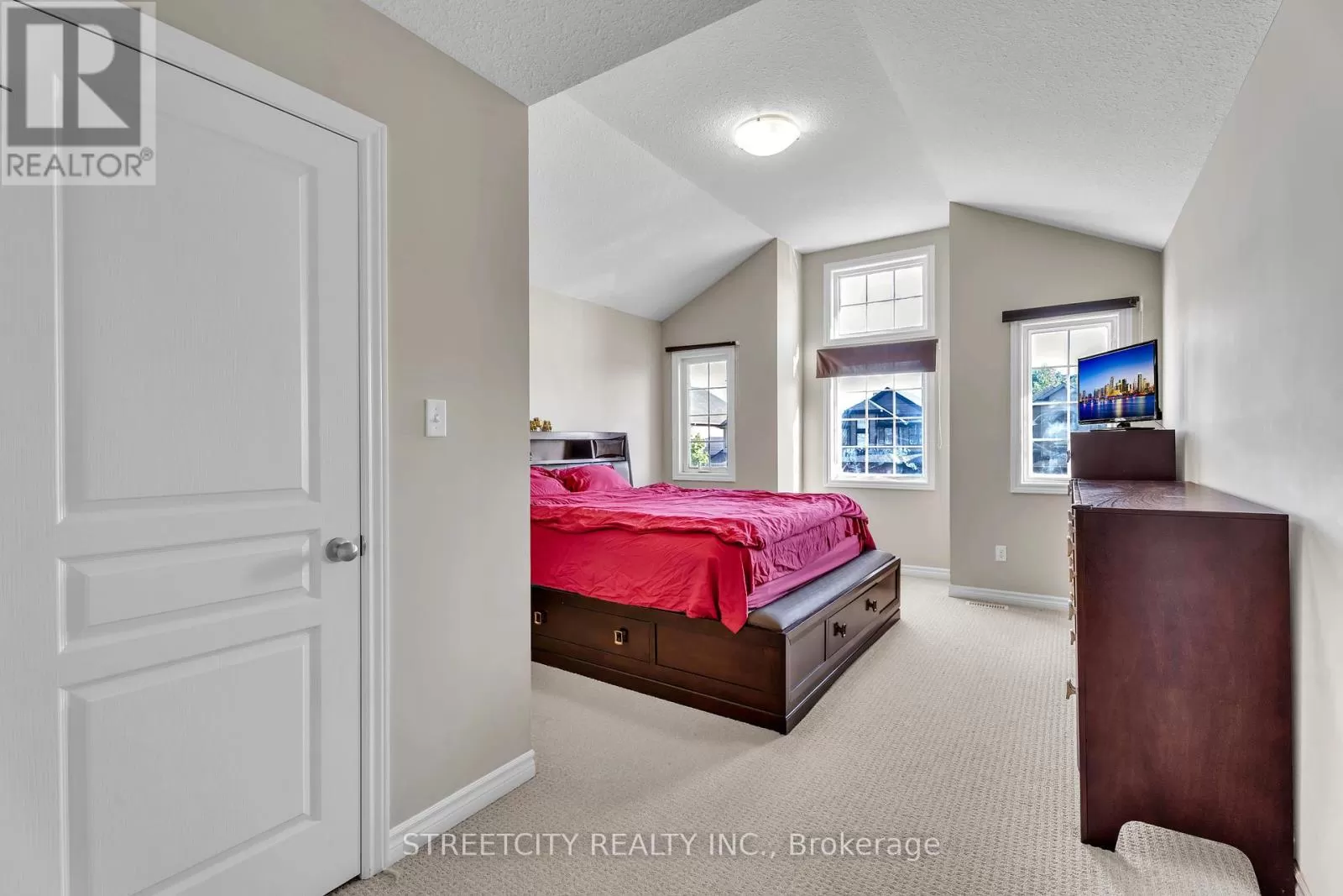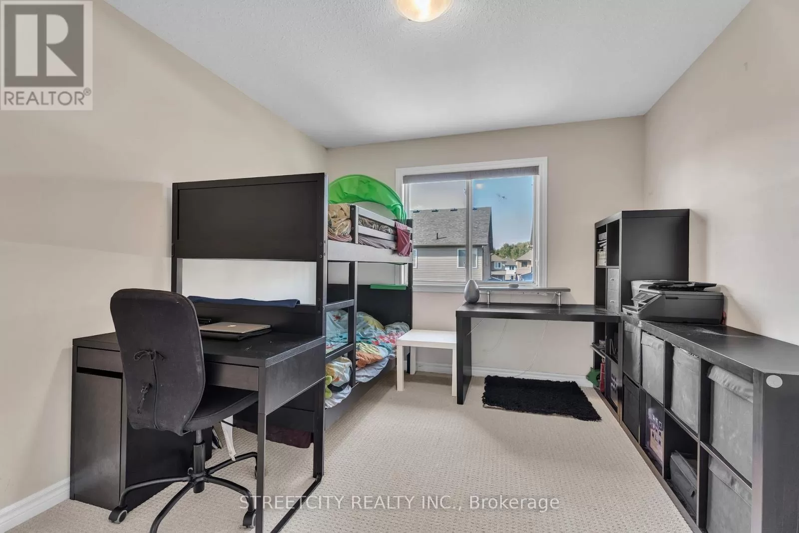 Cross Streets: Lawson RD. ** Directions: From Wonderland Rd N, head west to Lawson Rd, then south to Sandbar St. Beautifully maintained Sutherland model by Kenmore Homes offering 1,823 sq. ft. in the heart of North London. Prime location close to COSTCO, T&T Supermarket, Western University, restaurants, and all amenities. Features include a soaring ceiling foyer, spacious kitchen with maple cabinetry, stainless steel appliances, and breakfast bar, open dining and living area with rough-in fireplace and patio doors to a sun deck with raised planters. Ceramic tile flooring throughout foyer and wet areas. The upper level offers a primary bedroom with vaulted ceiling and 5-piece ensuite with separate shower and tub, plus walk-in closets in all bedrooms and a second-floor laundry room. Enjoy peace of mind with recent upgrades including central A/C (2025) and washer(2025). (id:27476)