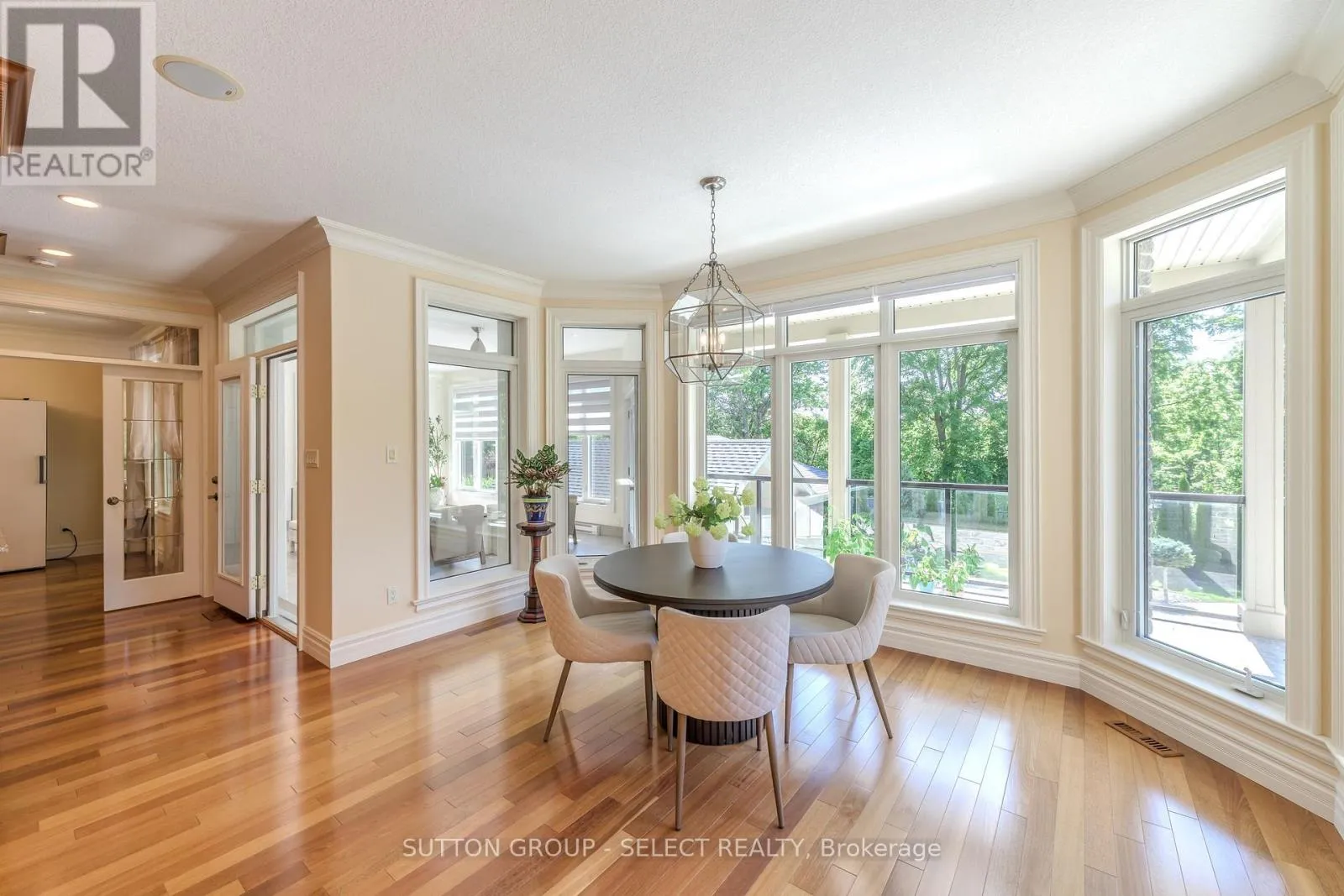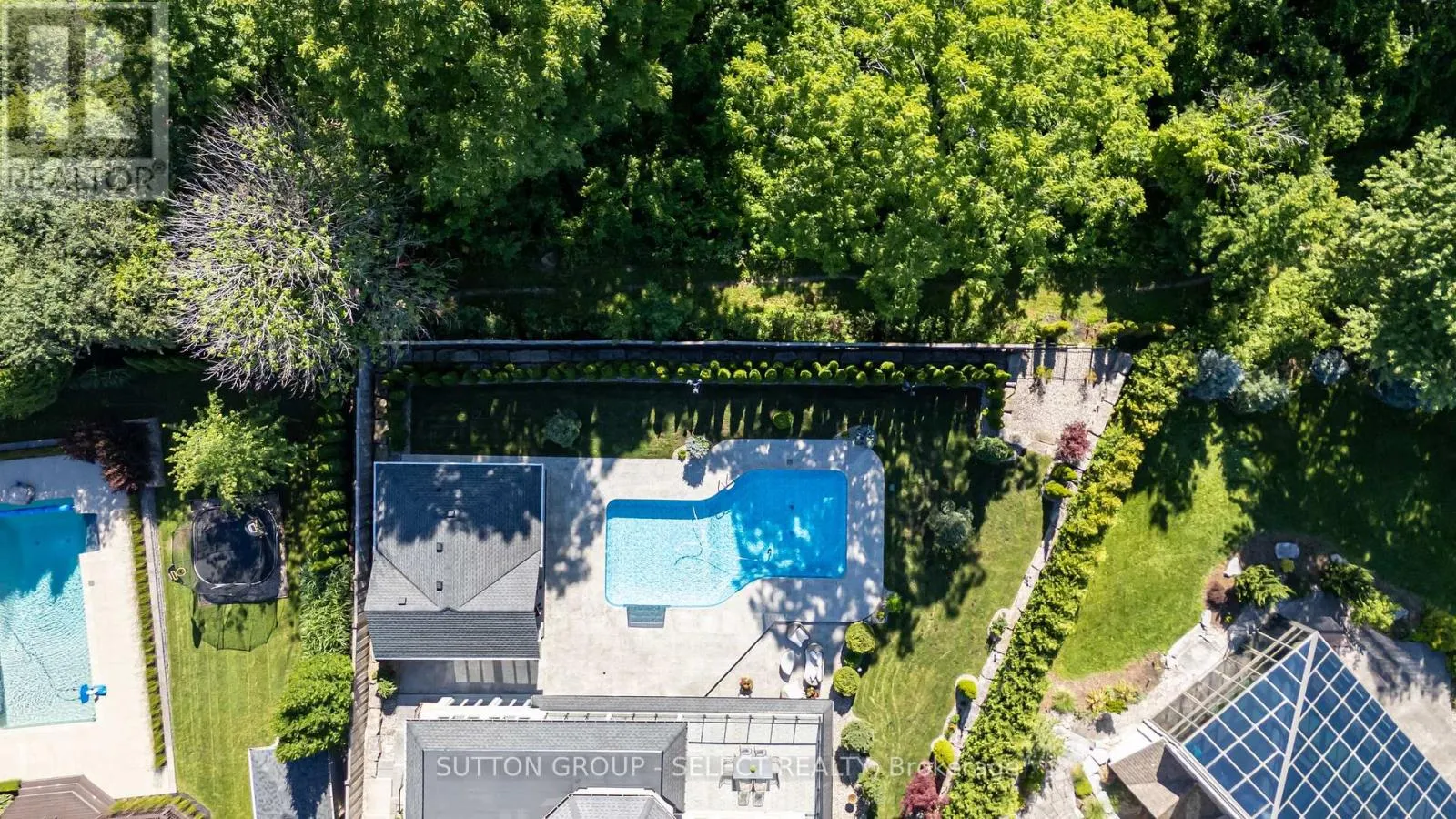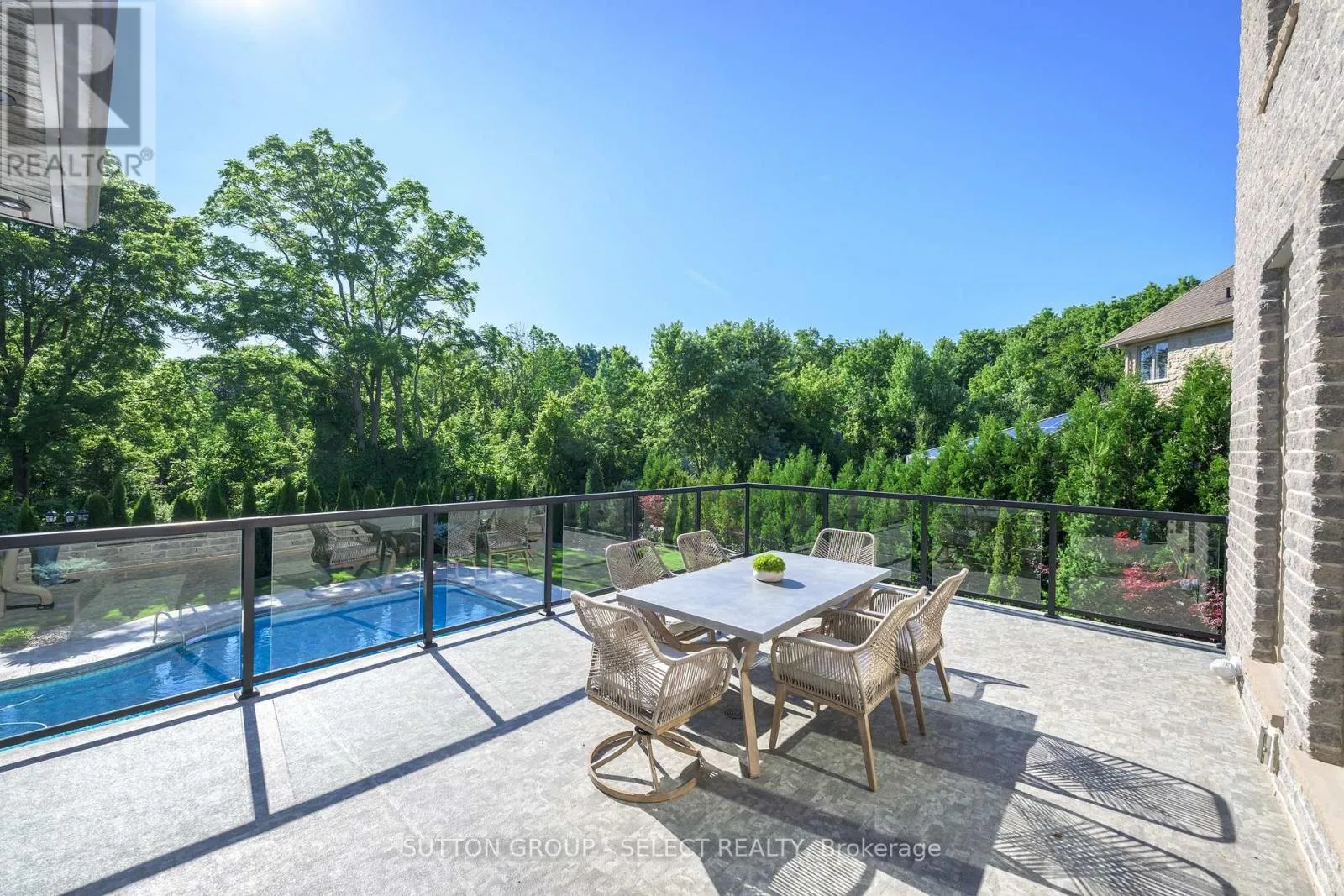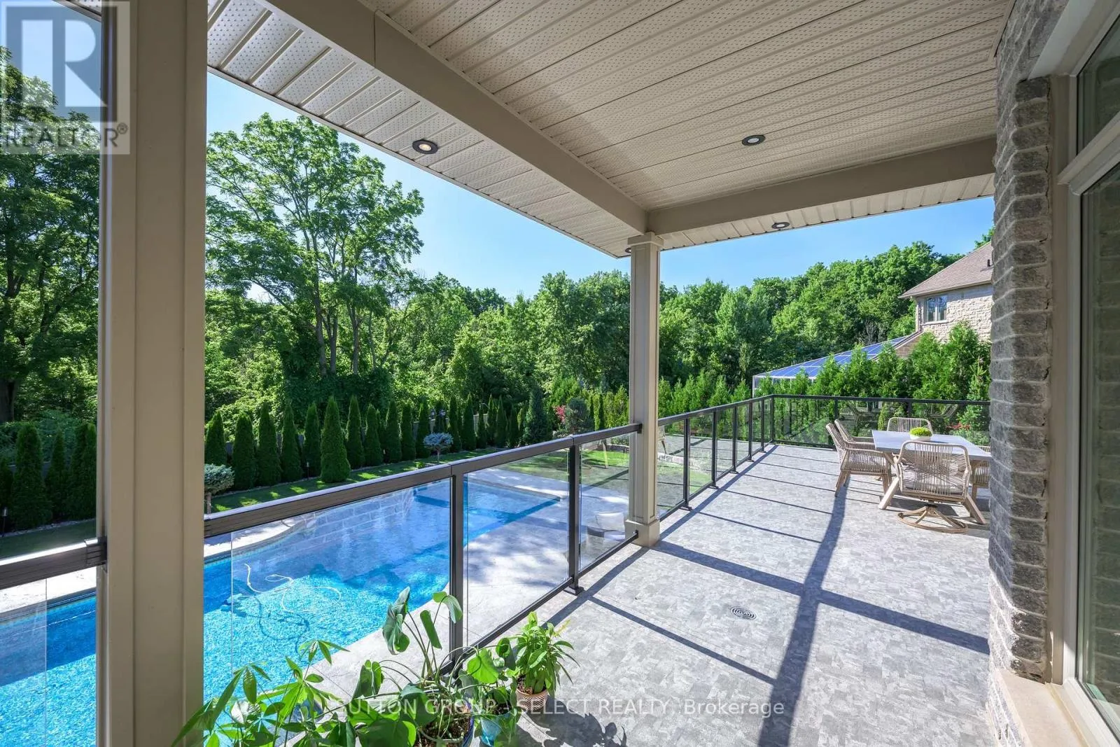 PLANE TREE DRIVE TO VALLEYRUN BOULEVARD Nestled at the end of a quiet cul-de-sac in one of Sunningdale's most prestigious enclaves, this extraordinary executive residence offers approximately 6,500 sq. ft. of luxurious living space backing directly onto the protected Medway Valley Heritage Forest. A stately stone façade with contrasting stone voussoirs crowning the arched windows and triple-car garage introduces architectural drama and elegance for a commanding first impression. Professionally landscaped grounds with sculptural evergreens, gardens, and elegant accent lighting establish the refined tone carried throughout the home. At the centre, a grand double-door entry framed by a soaring arched portico and transom glass invites you into the interior with a sense of architectural grandeur. Inside, soaring ceilings and a double-height great room with a dramatic wood and stone fireplace showcase a spectacular wall of windows framing tranquil forest views. Rich Brazilian cherry hardwood adds warmth throughout. The crystal chandelier, arched transoms, formal dining area, and gallery-style overlook enhance opulence. The chef's kitchen features full-height cherry cabinetry, granite surfaces, upscale built-in appliances, a window-wrapped dinette, and a custom wet bar. A separate morning room opens to the upper deck with glass railings. A bonus room serving as an oversized pantry and a richly appointed office with custom cherry millwork elevate the main floor. Upstairs, the solid wood staircase ascends to a sunlit landing. The primary suite offers forest views, two walk-ins, and a spa ensuite. All 3 additional bedrooms enjoy ensuite access. The walkout level includes a guest room, full washroom and a family room/games/media fusion with gas fireplace. Separate gym with private patio access. Outside enjoy lush gardens, saltwater sport pool, extensive hardscaping & gate to the forest. The fully outfitted cabana with vaulted ceiling, wet bar, and full bath is ideal for entertaining or overnight guests. (id:27476)