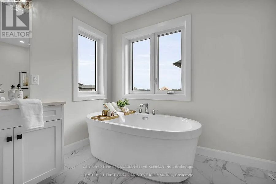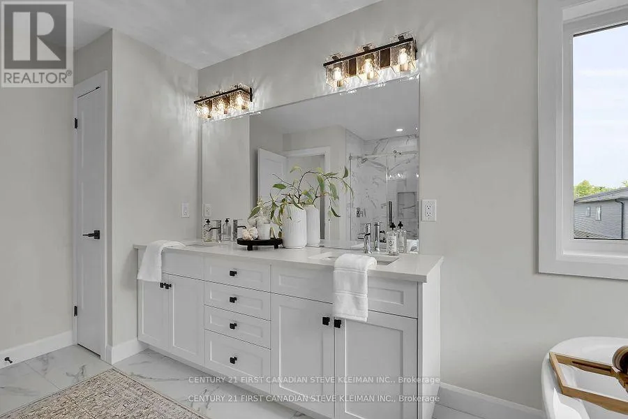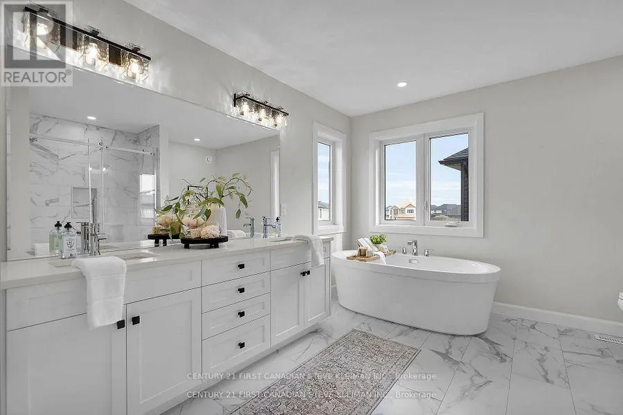 Cross Streets: Applerock. ** Directions: Applerock to Bush Hill. Auburn Homes proudly presents their reimagined 4 bed, 4 bath home located on a quiet street in Northwest London. This modern & timeless design built on a deep pie shaped lot hits every must-have for todays buyer. From the moment you arrive at 1327 Bush Hill, it's clear this is no ordinary builder home. The detailed driveway, light stone with dark mortar, Hardie front elevation, and stunning 8 foot front door with sidelights create a standout exterior. Inside, the foyer opens to a dramatic great room with 9 foot high flat ceilings and 7 foot wide, floor to ceiling black marble tile fireplace accent wall. The kitchen, crafted by Cardinal Cabinetry, features a quartz island with seating for four, deep Blanco sink, ceramic backsplash, valance lighting, & large pantry. A mudroom with bench, hooks, and space for baskets is perfect for families, especially with the new Northwest school about to open. Solid oak stairs lead to a second floor that impresses: 3 linen closets, a laundry room with tub & drain pan, 3 full baths, and 3 walk-in closets. The Jack & Jill bath includes a private water closet room, and all tiled showers have shampoo niches. The spacious primary suite boasts a walk-in closet with Free Slide shelving, a luxurious ensuite with double sinks, free standing soaker tub, walk-in tiled shower with marble base & even a power outlet by the toilet. A side entrance leads to a lower level with ultra high ceilings, 3 massive egress windows, and an insulated storage room ideal for a future legal suite or hobby area. A 200 amp electrical panel for future EV charger. Ceramic and hardwood flooring throughout (no carpet). So much special care was put into this house by all the Auburn staff and trades people. You will feel this the moment you walk in! (id:27476)