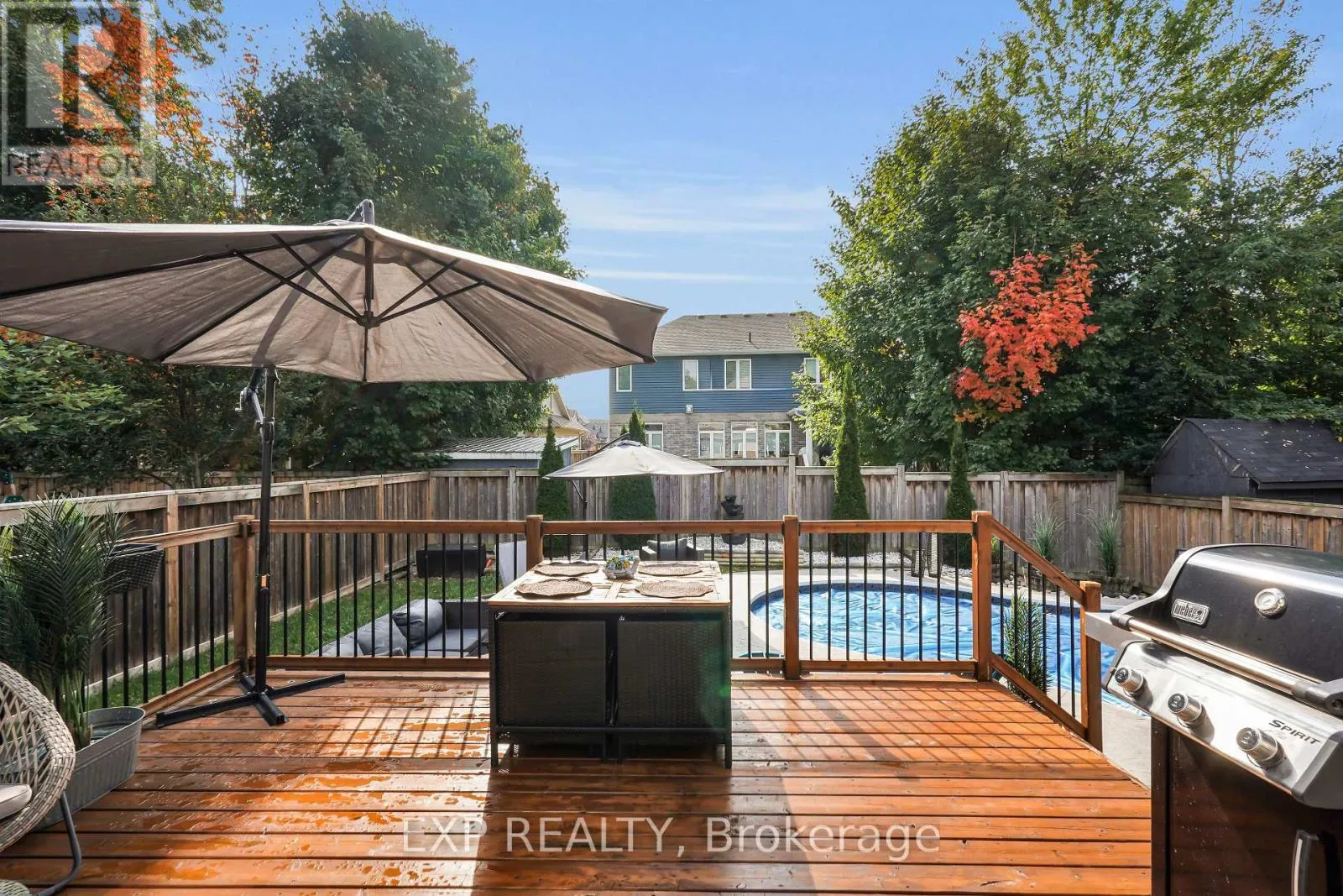 Cross Streets: Eagletrace Drive. ** Directions: Wonderland Rd to Medway Park Drive- take the first exit off the round about onto Eagletrace and follow it to the end and turn left onto Foxcreek Rd. Welcome to this beautiful 3+2 bedroom family home in sought after neighbourhood. Brand new roof November 2025. The main floor features an open-concept layout with hardwood & tile floors throughout. A bright kitchen showcasing granite counters, stainless appliances, backsplash, & an oversized island. The adjoining eating area & family room with a feature wall, built-in electric fireplace, & large windows overlooking backyard & creates a warm, inviting space for everyday living & entertaining. Convenient main floor laundry with appliances included. Hardwood staircase leads to a versatile loft that provides additional living space, ideal for a home office, lounge, or playroom. The spacious primary bedroom retreat boasts 2 walk-in closets, big windows & an ensuite with soaker tub, tiled shower, and large vanity. Two additional good size bedrooms share a stylish 4 piece main bath. The fully finished lower level expands your options with a large rec room, custom bar area, media zone, 2 guest bedrooms, office/gym, & a sleek 3-piece bath. Newer flooring throughout lower level. Step outside to your private backyard oasis with a deck, newer concrete patio, & a newer heated in-ground Hayward salt water swimming pool surrounded by lounge areas perfect for summer gatherings & relaxation. A double garage & wide concrete driveway provide ample parking. Located in a family-friendly neighbourhood close to schools, parks, & shopping, this move-in ready home truly checks all the boxes & is priced to sell. (id:27476)
