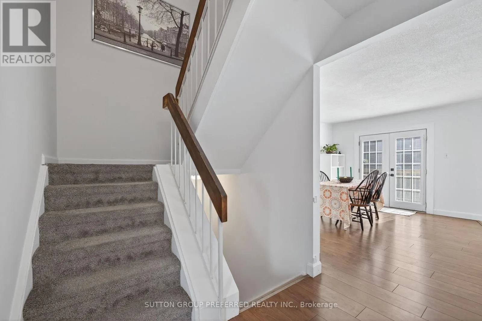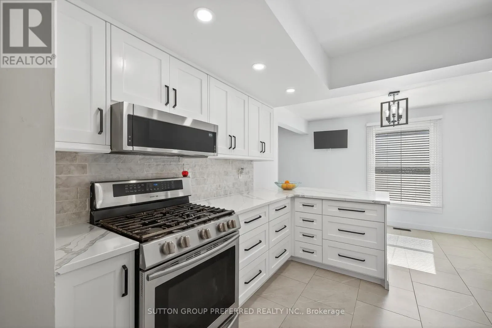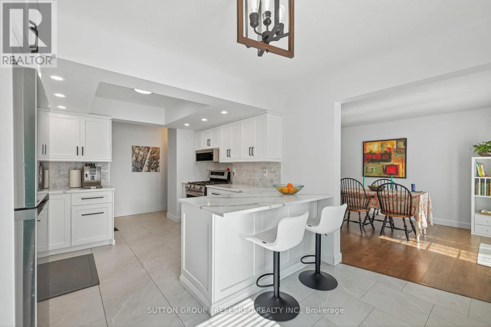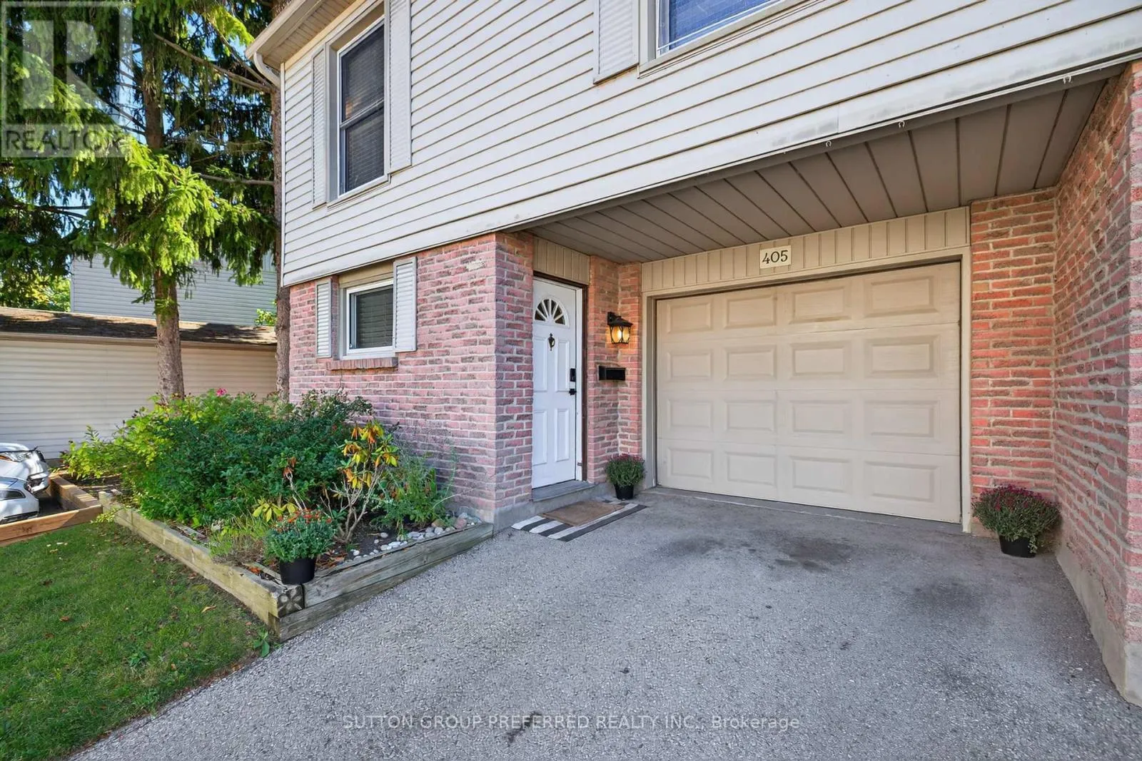 Cross Streets: Riverside & Hyde Park Rd. ** Directions: Riverside to Everglade 405 is at the back of the complex. turn left the next road past stop sign. Popular Hickory Hills End Unit. Fabulous location close to all amenities. Largest floor plan with 2316 sq. ft. New Custom Kitchen featuring Amazing Quartz Counters and sitting area. New Luxury Plank Kitchen Flooring and Modern Backsplash. Large Dining room with garden doors to private 25 x 13 balcony. Enormous Living room with plenty of natural light and a convenient 2pc washroom complete the second level. Open Staircase to the 3rd level featuring a Large Primary with cheater ensuite, walkin closet and extra storage area. 4 pce washroom with new toilet and vanity. 2 other good sized bedrooms. Freshly painted throughout with new door handles and lighting fixtures.Bright & White with lots of space and natural light. The lower level features a large entry foyer with ceramic flooring, utility/storage room, laundry room with walk out to the rear patio area. The over sized single garage with auto door opener currently houses an extra get away room, perfect for a man cave. New garage flooring for added comfort. This home is walking distance to 7 schools (including 2 French schools Immersion and Francophone and Matthews Hall), Thames Valley Golf course, pedestrian bridge to Springbank, walking and bike trails, Shopping area and nature trails and parks. Hassle free living in Oakridge Acres. Perfect location in the back of this well run and managed Condo Corporation. (id:27476)