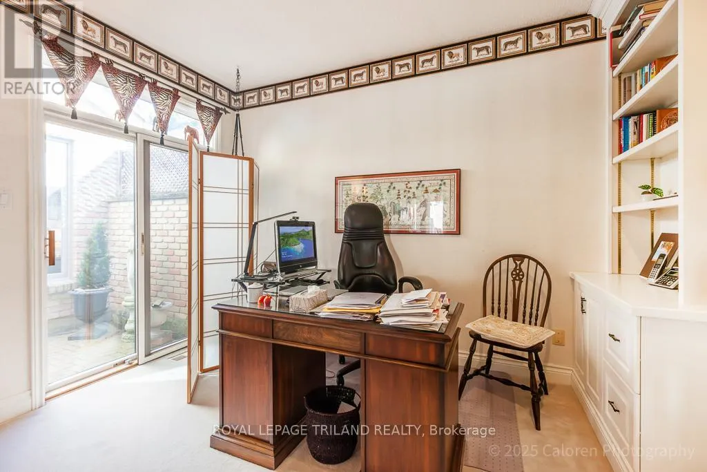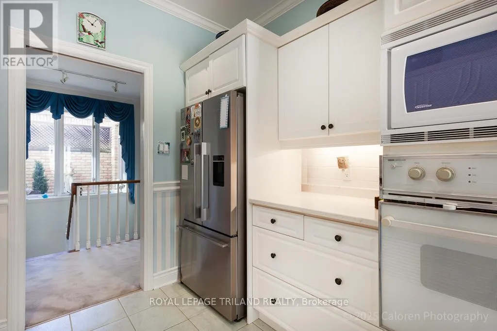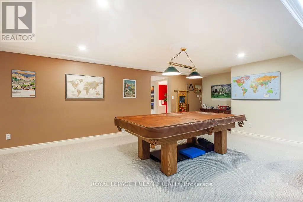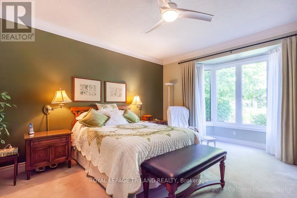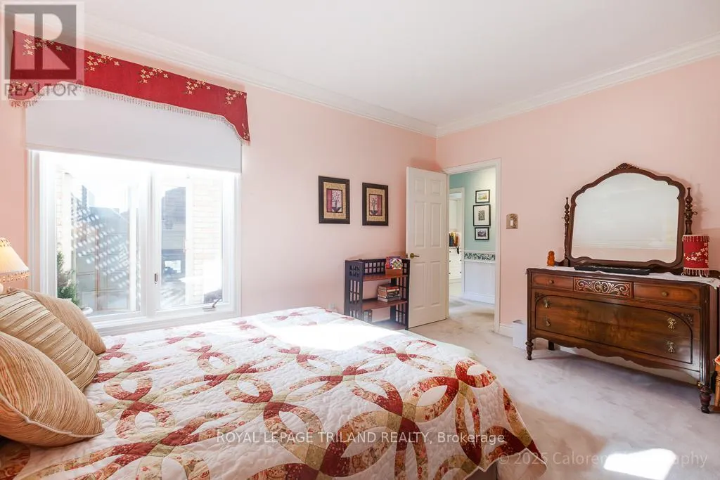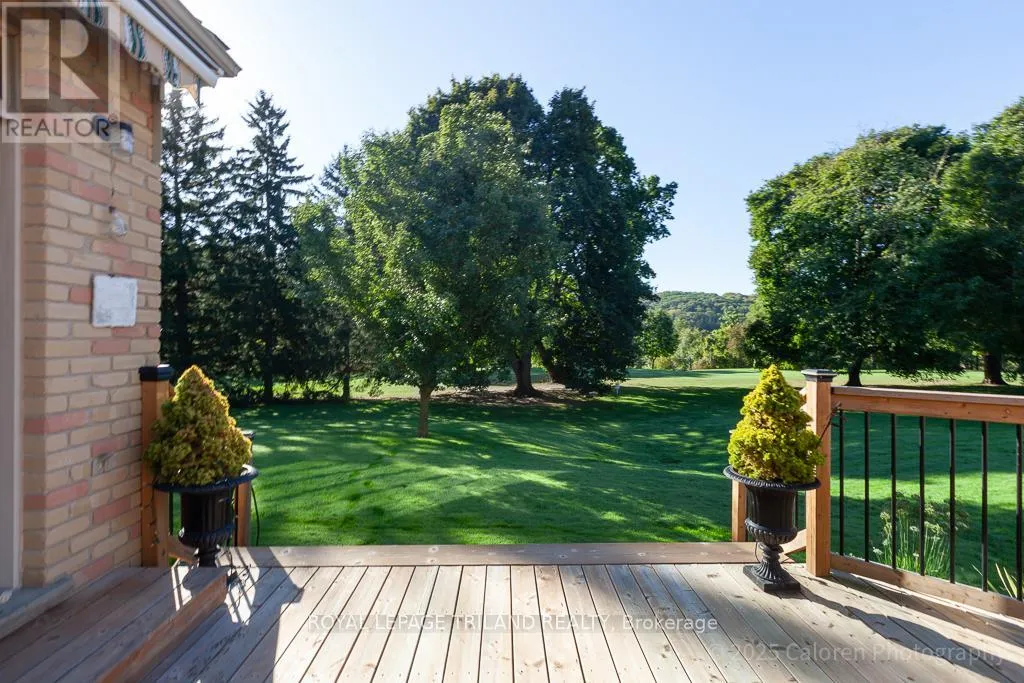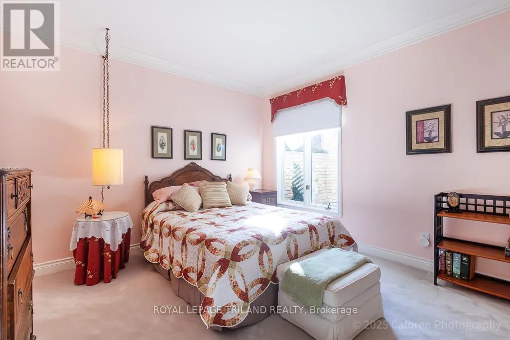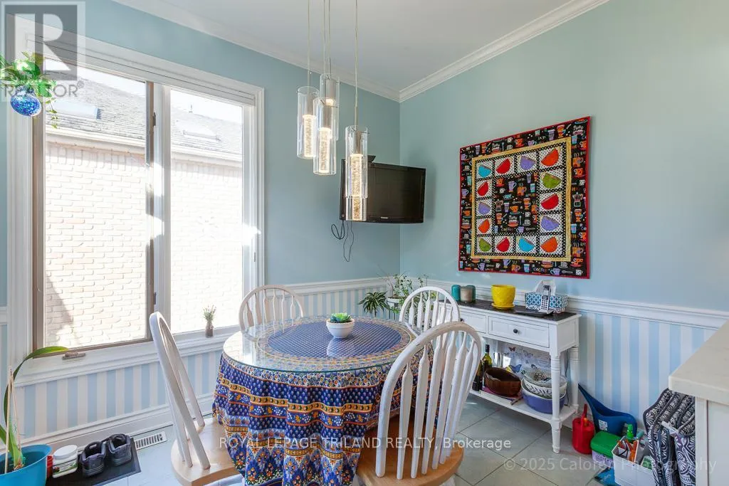 Cross Streets: HYDE PARK AND RIVERSIDE. ** Directions: WEST ON RIVERSIDE DR, COMPLEX JUST PAST THAMES VALLEY GOLF. Experience refined living in one of Londons most prestigious enclaves with this superb luxury detached condo in Hazel Lanes. This meticulously maintained home offers over 2,200 square feet of sun-filled main floor space, backing onto the scenic Thames Valley Golf Course for a tranquil and private setting perfect for both relaxation and sophisticated entertaining.Inside, discover a generous living room with a cozy gas fireplace and patio walkout to an expansive wrap-around deck equipped with retractable awnings, offering sweeping treed and golf course views. The main level features an elegant formal dining room, a spacious eat-in kitchen with abundant cabinetry and counter space, plus a bright den with direct access to a private interior courtyard.Retire to the oversized primary suite, complete with a large walk-in closet and a modern en-suite featuring a walk-in tub/shower. A second spacious bedroom, full bath, and convenient laundry area round out the main floor. The impressive 9-foot ceilings are enhanced by elegant crown moulding and a striking great room, adding to the overall sense of space and grandeur.The lower level offers a massive family room with its own fireplace, a third bathroom, and generous storage solutions ideal for extended family gatherings. A double garage with inside entry provides added convenience.Residents of Hazel Lanes enjoy access to a large heated saltwater pool, manicured green spaces, and walking and bike trails just steps away along the Thames River and Springbank Park, while Hyde Parks shopping and downtown amenities remain within easy reach. Recent updates include a newer cedar shake roof 2019, newer deck, and a high-efficiency furnace and central air installed in 2016.This exclusive, sought-after community combines elegant design with luxury amenities and an unbeatable location. Schedule your private viewing and experience the serenity and sophistication of Hazel Lanes living. (id:27476)